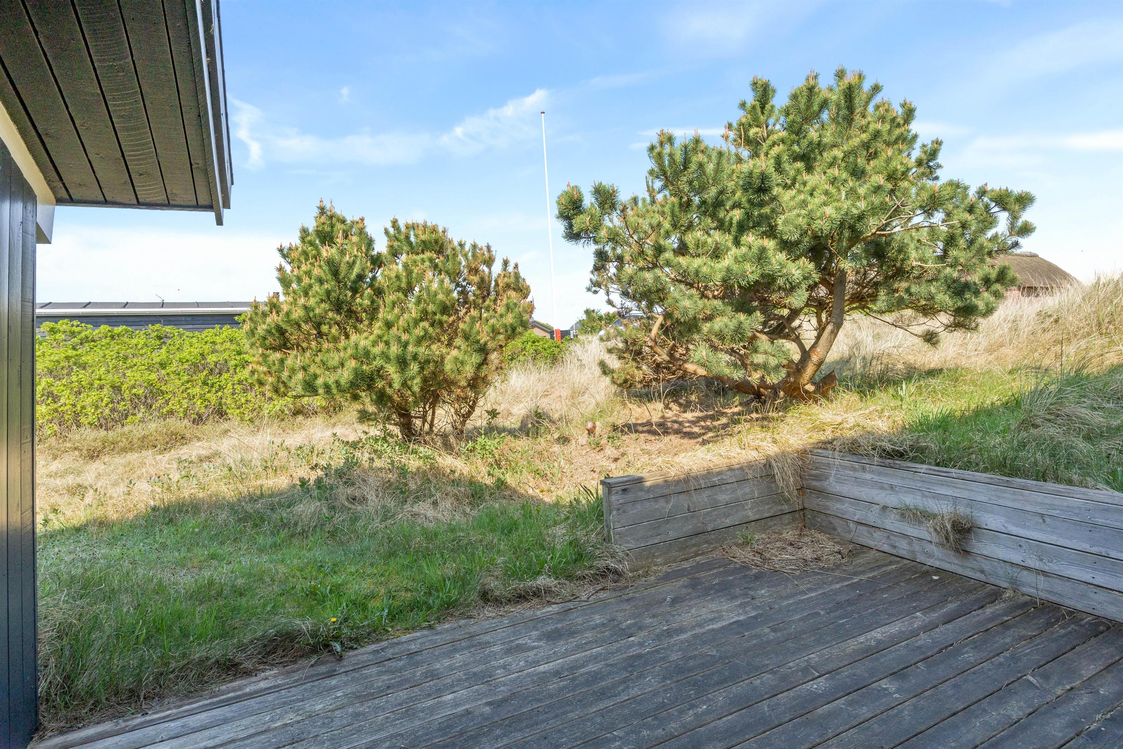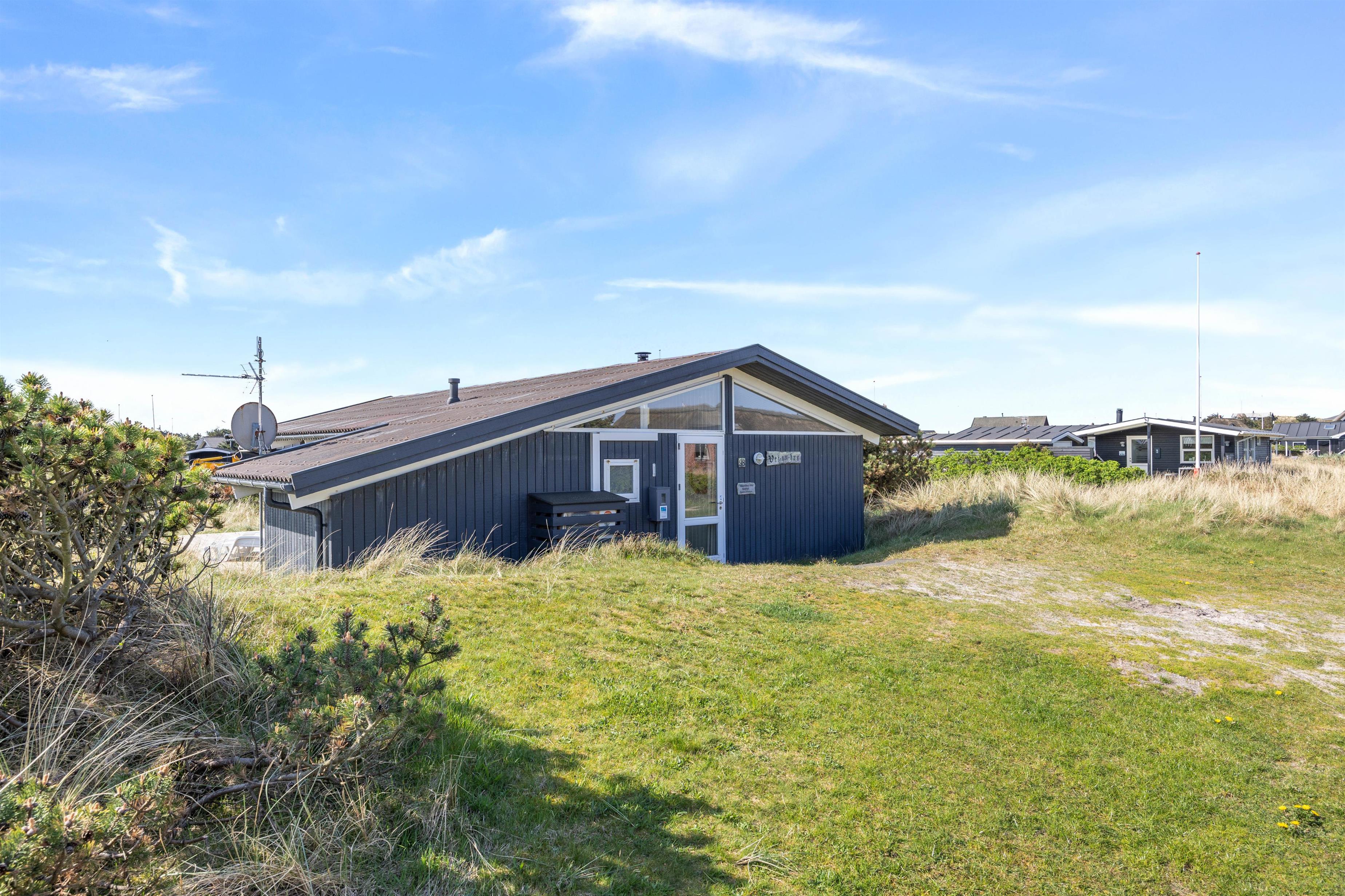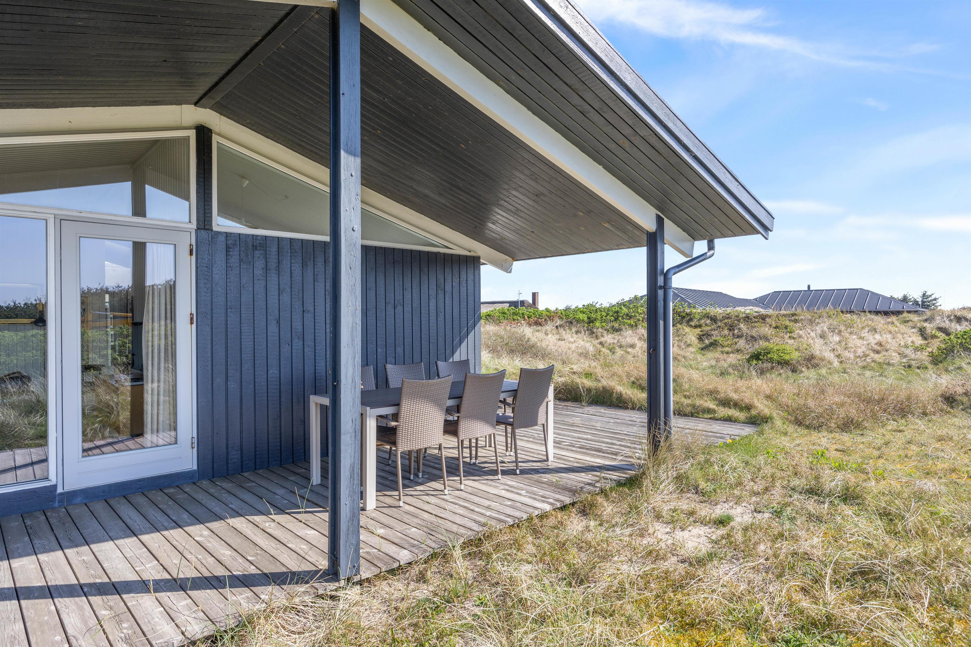 Sommerhuset ligger på en skøn naturgrund bare 300 meter fra det brusende og kraftfulde Vesterhav. En sti fra sommerhuset fører jer direkte ned til klitterne og den brede sandstrand med Vesterhavet i baggrunden. Den brede sandstrand inviterer til mange timers leg, hygge, lange gåture og samvær uanset vejret. I kan desuden nyde de smukke og betagende solnedgange over vandet.