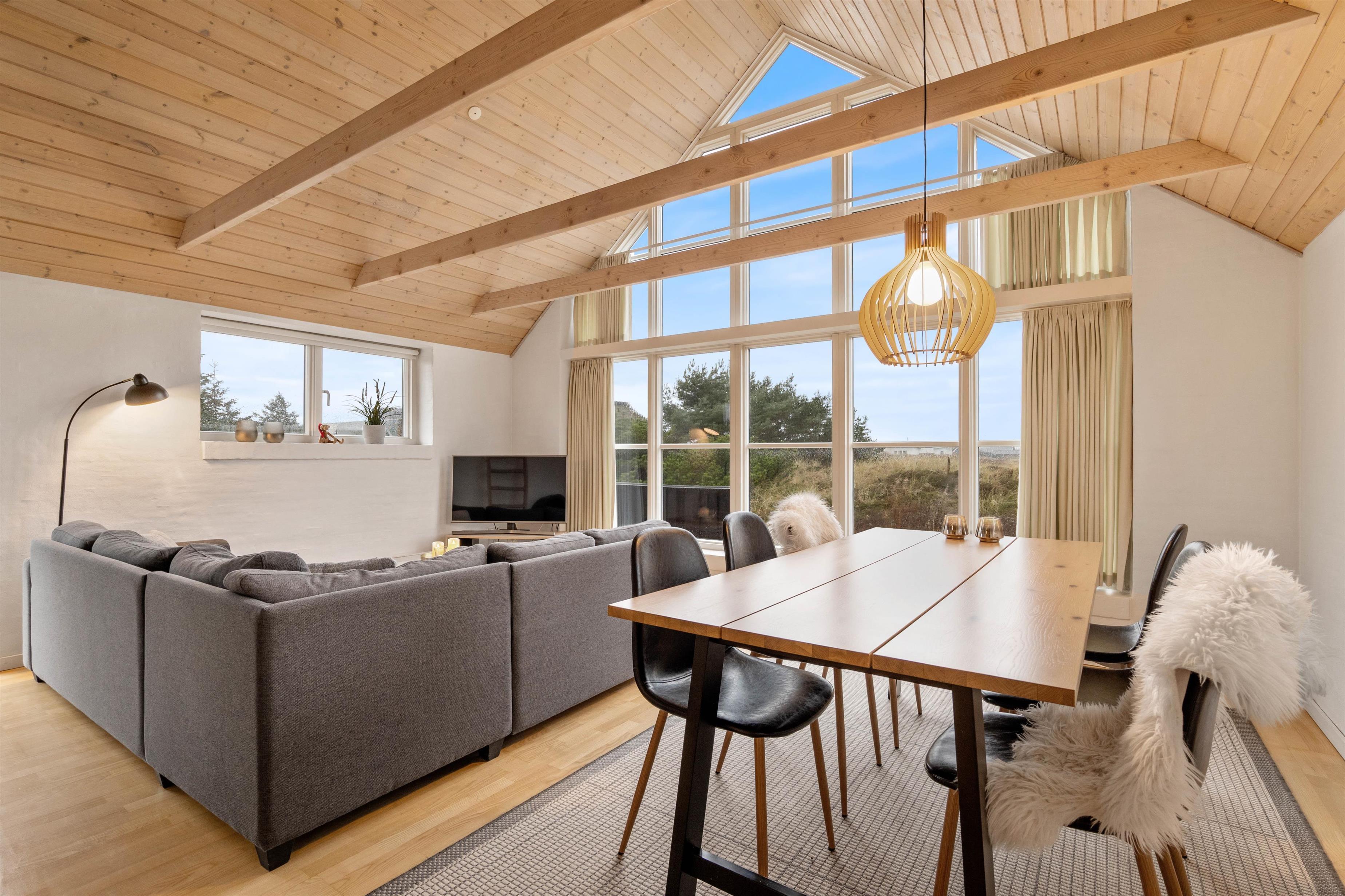 Stuen har et behageligt sofamiljø, med fantastisk lysindfald fra de store vinduer, hvilket skaber en lys og luftig atmosfære. En af de bedste ting ved dette sommerhus er brændeovnen, som er placeret i stuen. Dette er det perfekte sted, at samles til aftenen, når temperaturen falder, varme sig og hygge sig med en god bog eller en film. Men det bedste ved dette sommerhus er det lækre ’wellness’- badeværelse. Det er udstyret med et spabad og sauna, så du kan slappe helt af og nyde den ultimative spa-oplevelse og komme helt ned i tempo og slippe hverdagen stress og jag