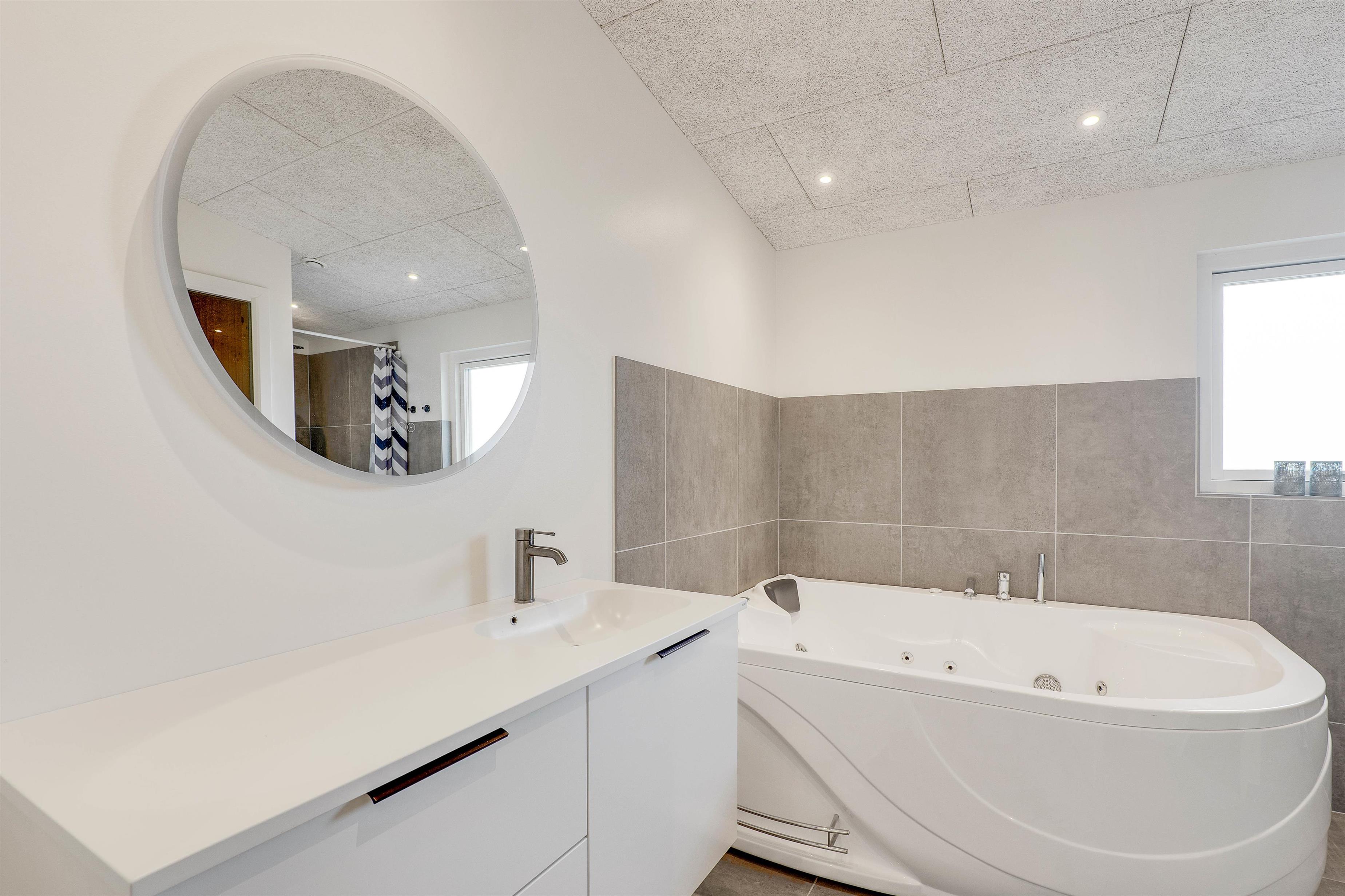 Hvis I er mere til afslapning og wellness end sved på panden over et spil bordfodbold, er I også heldigt stillet på Nordsøvej. I det største af husets 2 flotte badeværelser har I adgang til jeres egen lille wellness-oase med spabad og sauna, hvor I rigtig kan slappe af og sætte pris på ferietiden med ekstra selvforkælelse.
