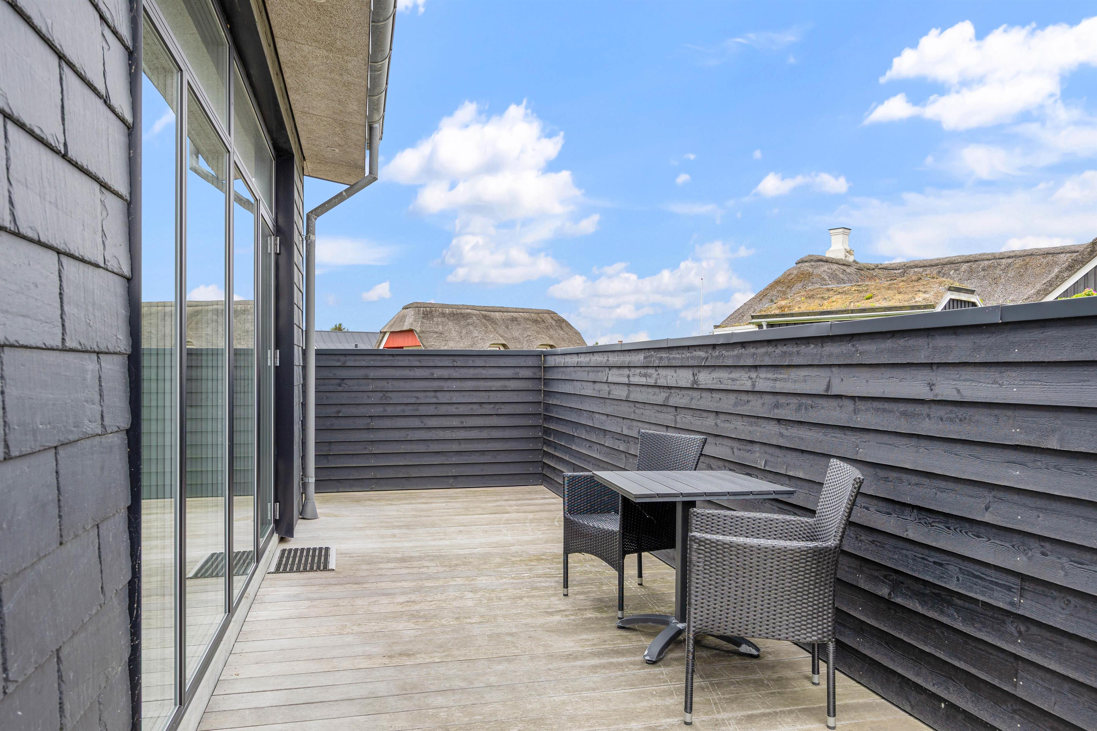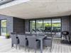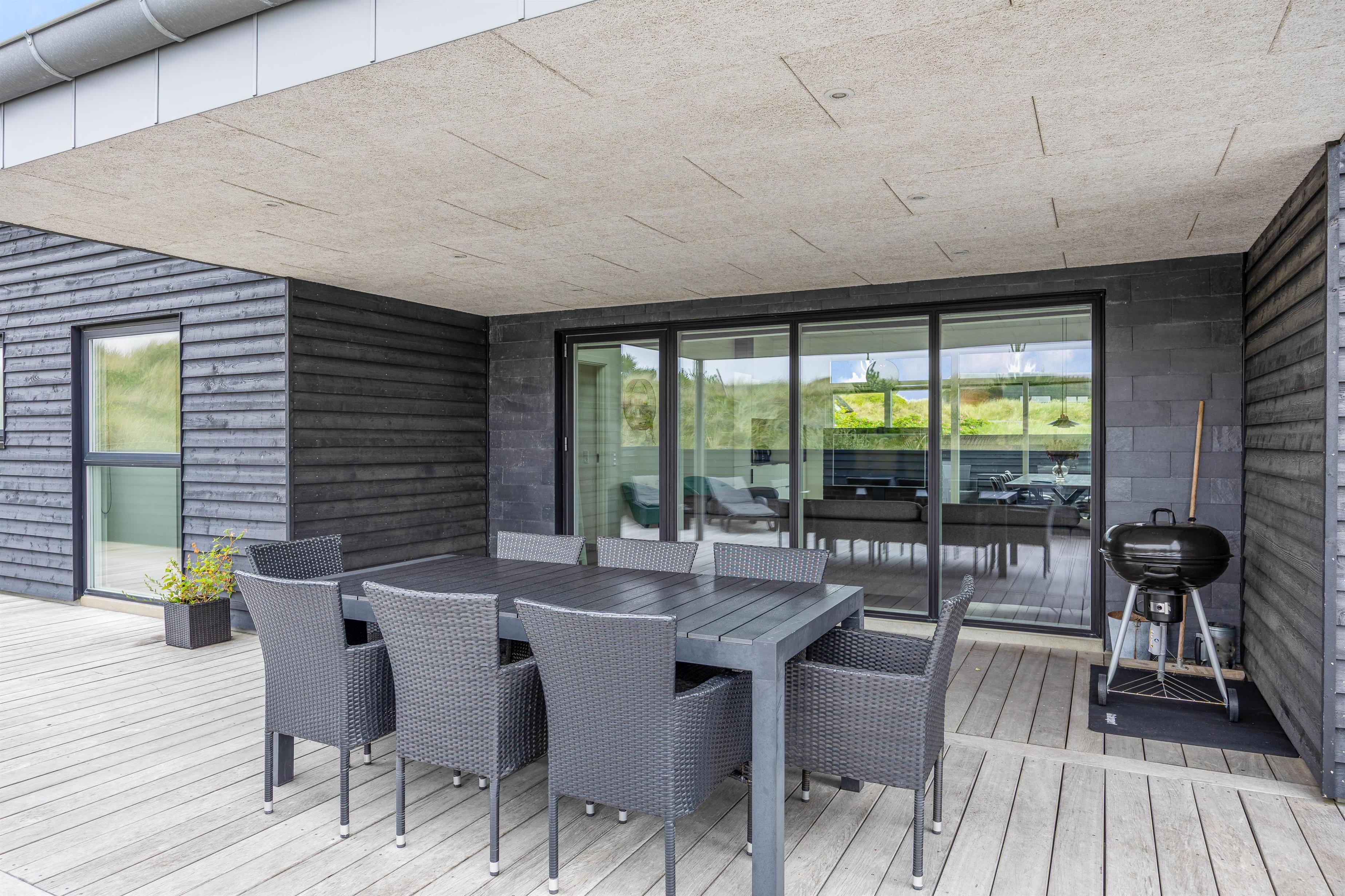 Trænger I til en fredelig og rolig stund i solen, kan det også lade sig gøre. Sommerhuset råder over en stor syd-vestvendt terrasse, der er perfekt til afslapning og solbadning. Eftersom terrassen omgiver hele huset, er den garant for flere gode kroge, I kan slå jer ned i. Liggestole og havemøbler er der selvfølgelig sørget for, og om aftenen kan I tænde op i grillen og få dagens sidste solstråler med, mens I steger bøffer på grillen.