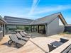 Der er en skøn, delvist overdækket lukket terrasse med udebruser. Her kan I forfriske jer efter en dag i solen eller skylle sandet af fødderne efter en lang gåtur på stranden. Udebruseren kan I benytte fra april til november. På terrassen står også havemøbler, terrassevarmer og gasgrill til fri afbenyttelse. Her kan I tilberede jer en lækker middag. For børnene er der både sandkasse og en gynge.