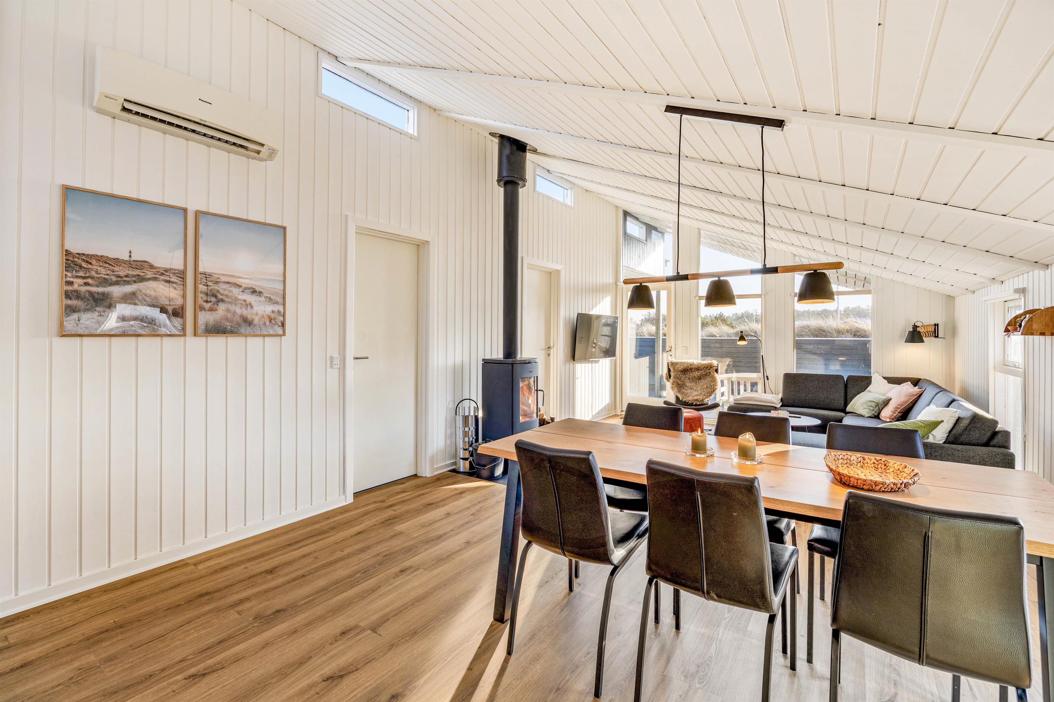 Det åbne køkkenalrum lægger det op til, at I under ferien kan tilbringe en masse kvalitetstid sammen. Den hyggelige brændeovn i stuen sørger for behagelig varme og indbyder til hyggelige aftener. I det veludstyrede køkken, som blev indsat i 2026, kan I afprøve nye opskrifter, og derefter overlade den langtrukne opvask til opvaskemaskinen. I skuret er der et ekstra køleskab, så I har tilstrækkelig med køleplads.