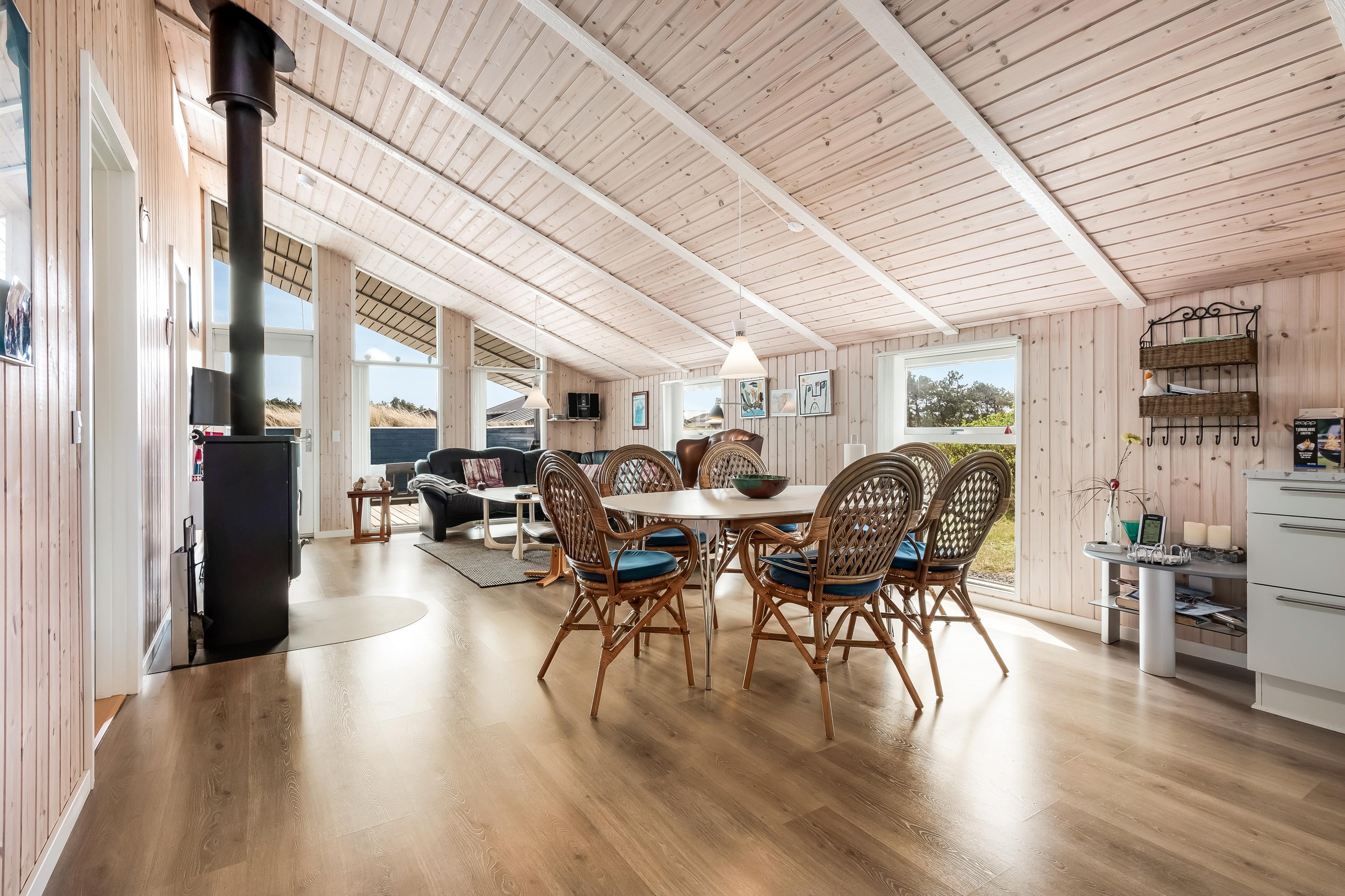 Det åbne køkken-alrum lægger op til, at I under ferien kan tilbringe en masse kvalitetstid sammen. Den hyggelige brændeovn i stuen sørger for behagelig varme og indbyder til hyggelige aftener. I det veludstyrede køkken kan I afprøve nye opskrifter og derefter overlade den kedelige opvask til opvaskemaskinen.