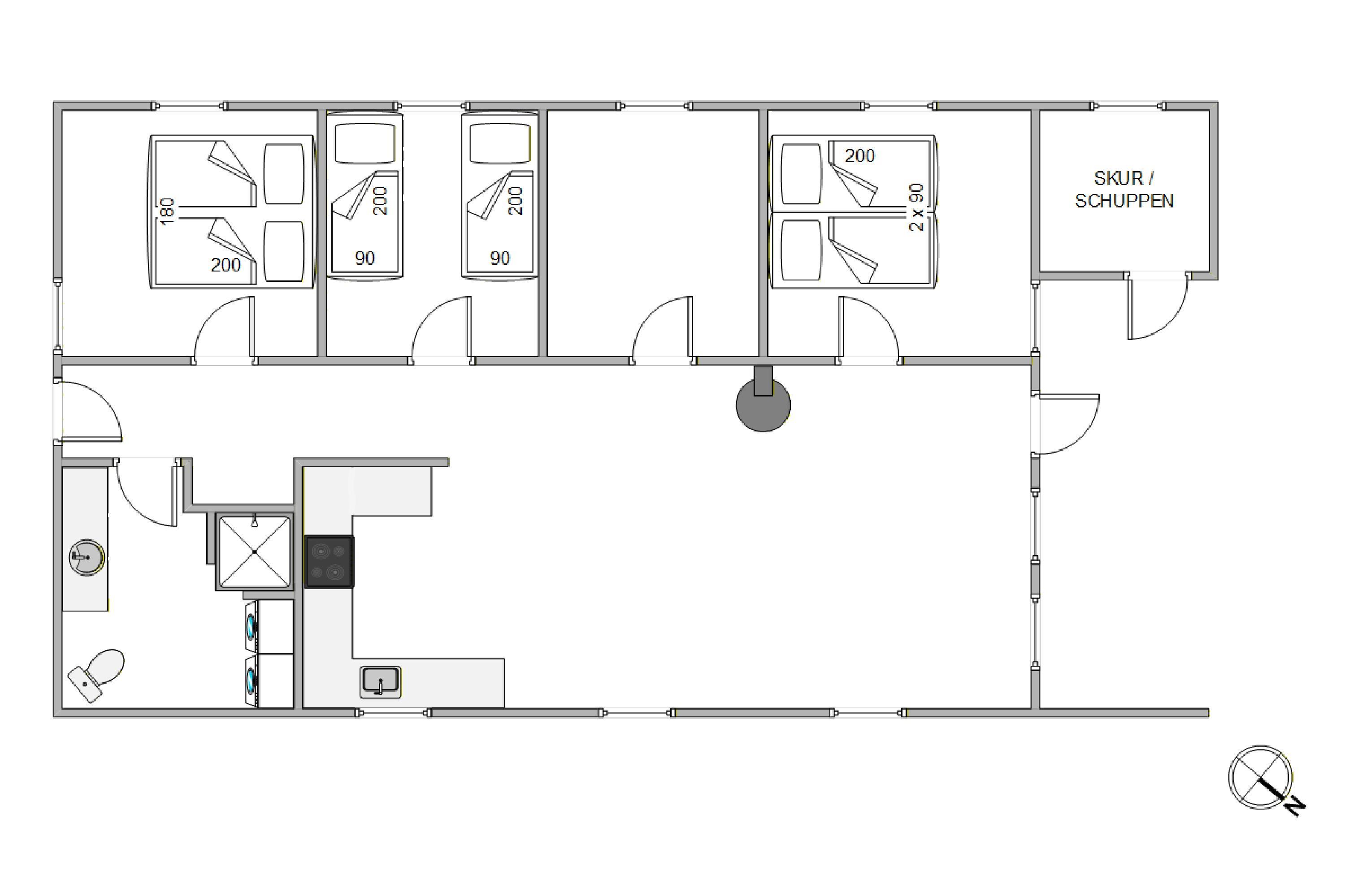 Takket være den integrerede og energivenlige luft-til-luft varmepumpe i køkkenalrummet, kan I nyde en behagelig stuetemperatur året rundt, mens I slapper af efter dagens aktiviteter. I sommerhuset kan I nemt slappe af og tanke ny energi i en af de 3 soveværelser. En af værelserne er et rigtig hygge-værelse, hvor I finder sovesofa, fjernsyn og en Plastation 4, som I frit kan benytte.