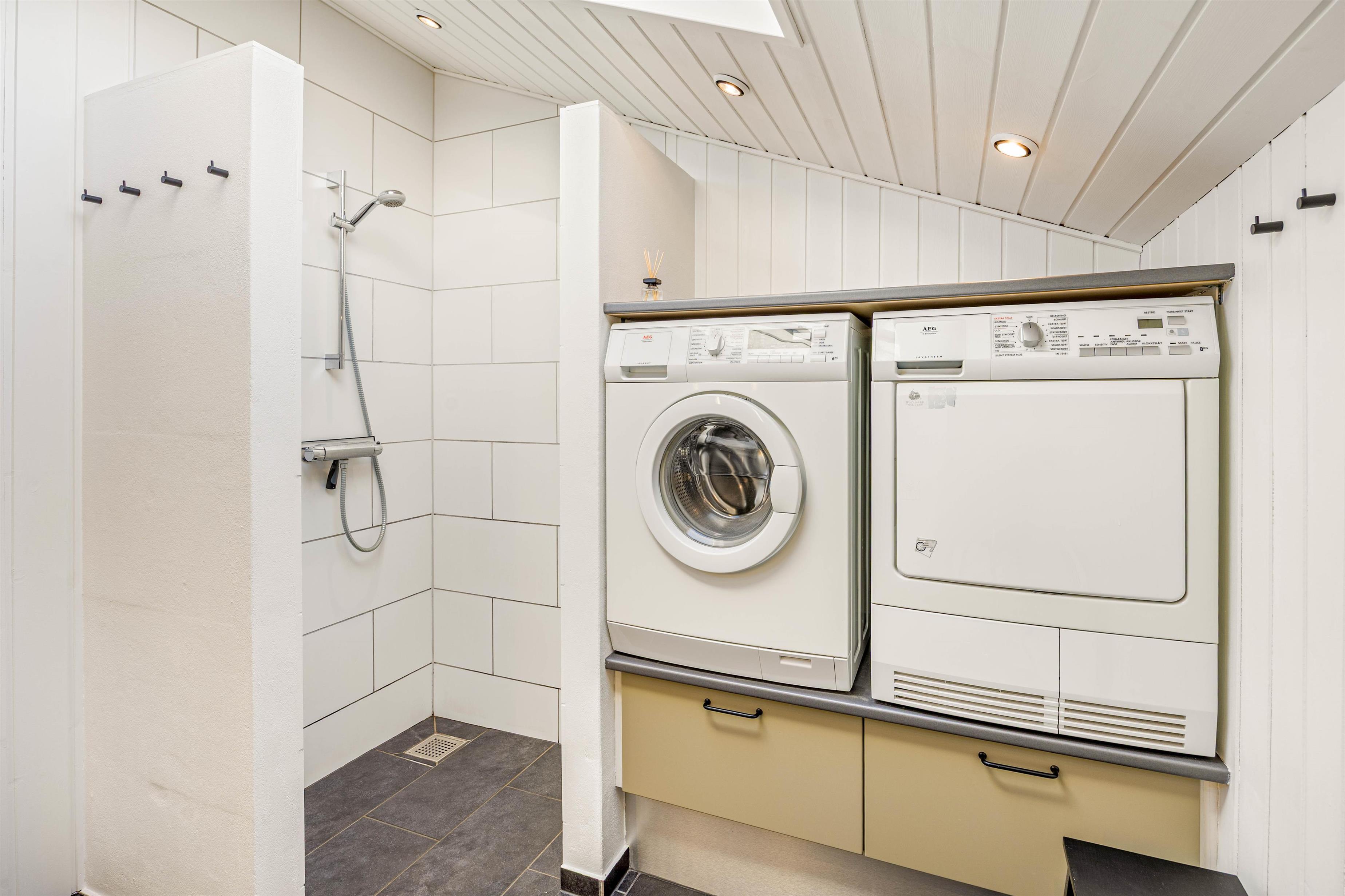 Badeværelset er udstyret med gulvvarme, så I kan starte dagen med varme fødder. De praktiske hjælpere i hverdagen – vaskemaskinen og tørretumbleren – står også klar til brug. Det gør det nemt for jer at pakke inden ankomsten, da I kun behøver at tage jeres yndlingstøj med.