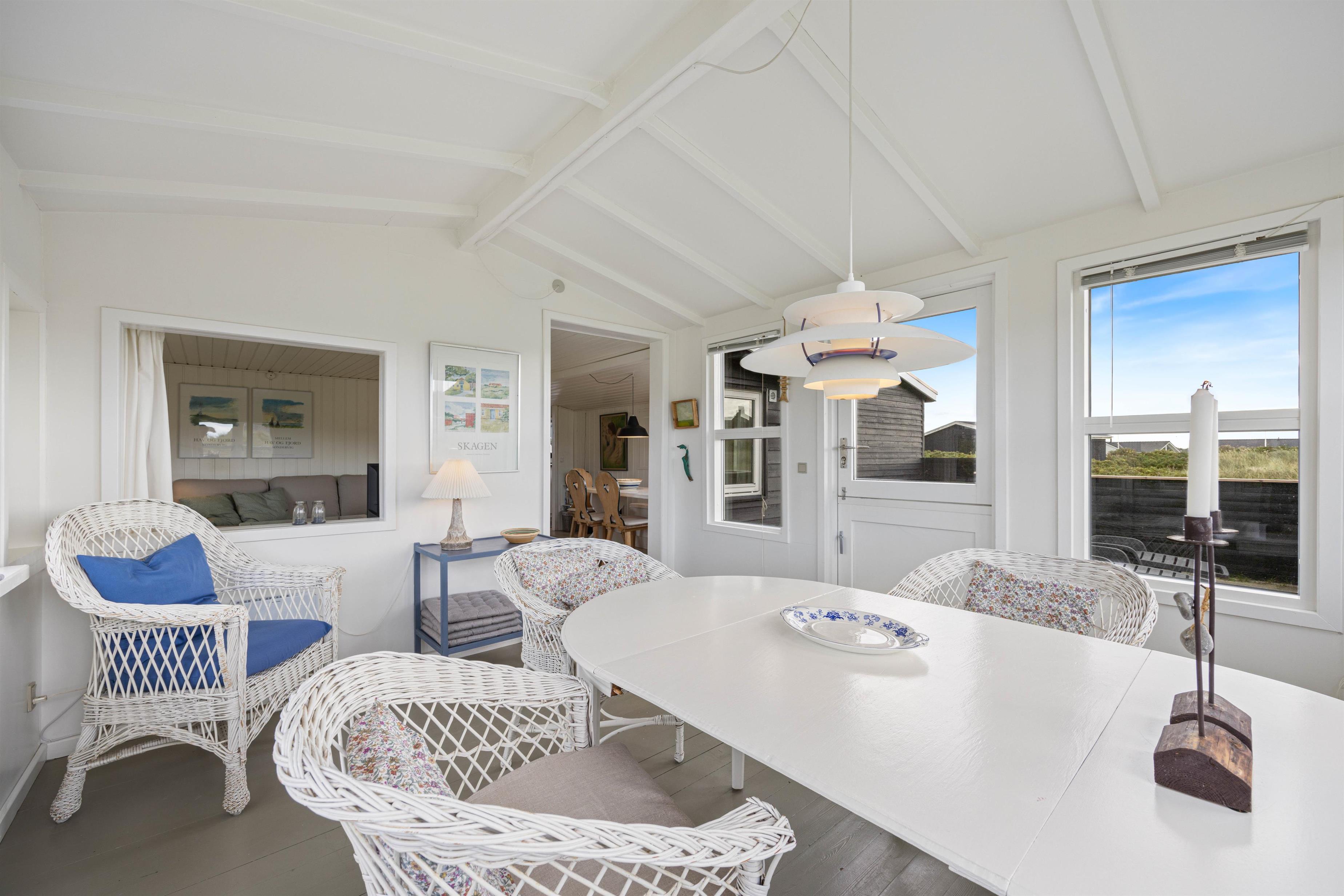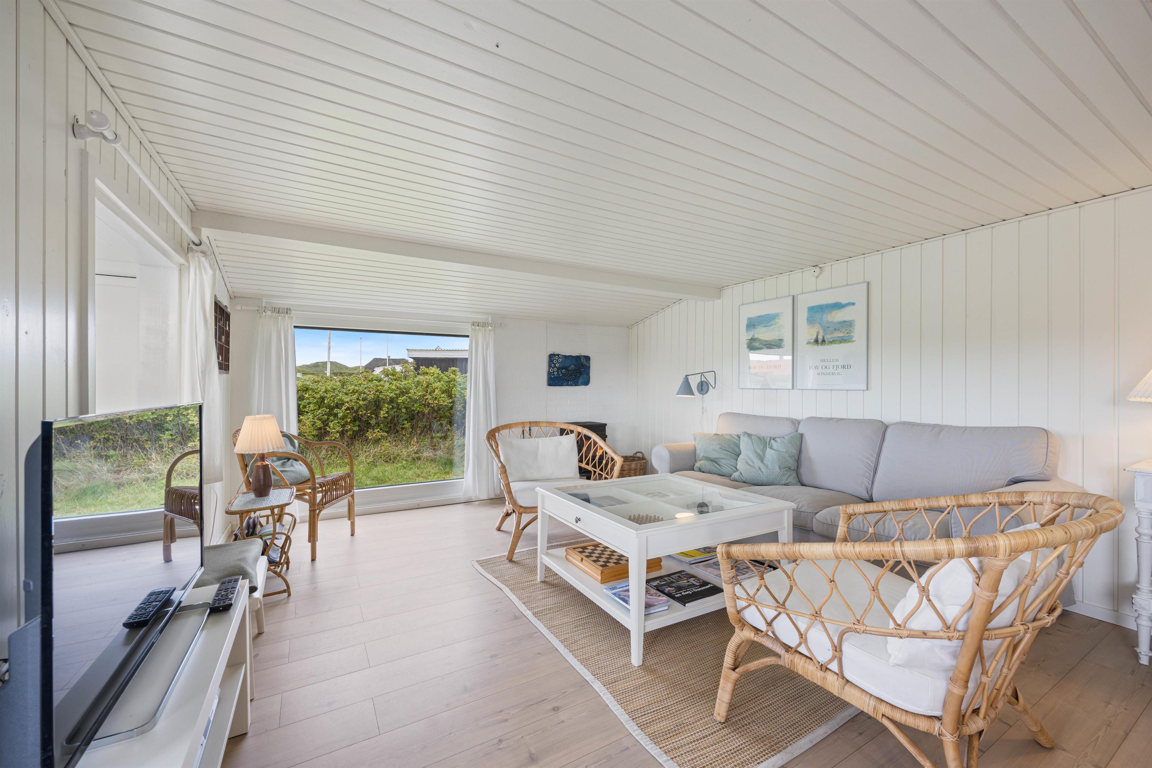 Dette Sommerhus i Søndervig tilbyder ikke bare indendørs komfort, men også udendørs fornøjelser. I kan nyde den skønne naturgrund fra sommerhusets udestue, eller grille under åben himmel på terrassen, som er udstyret med både afskærmede og lukkede områder. For underholdning har I adgang til parabol og Chromecast - perfekt til hyggelige aftener med film og serier.