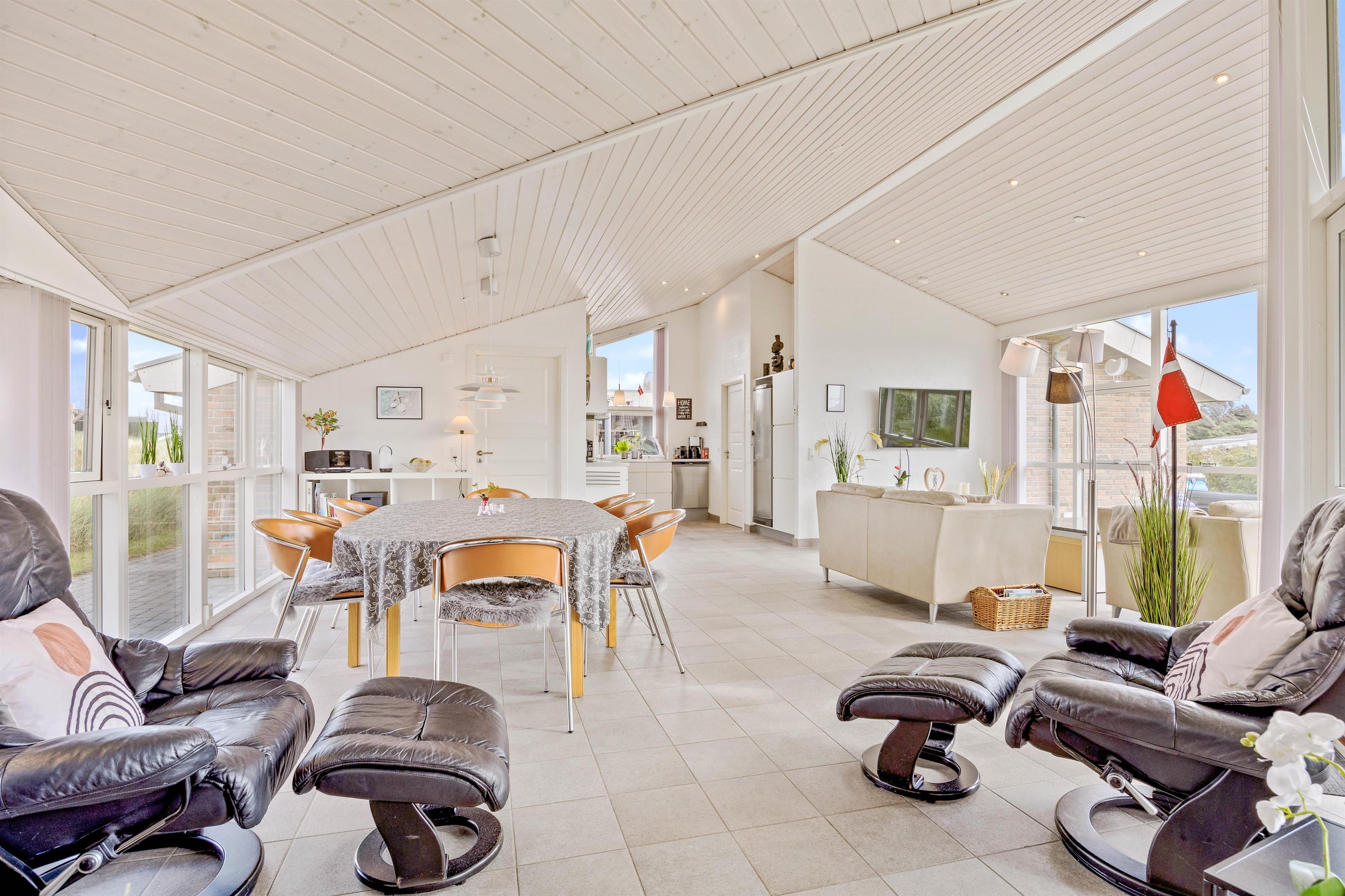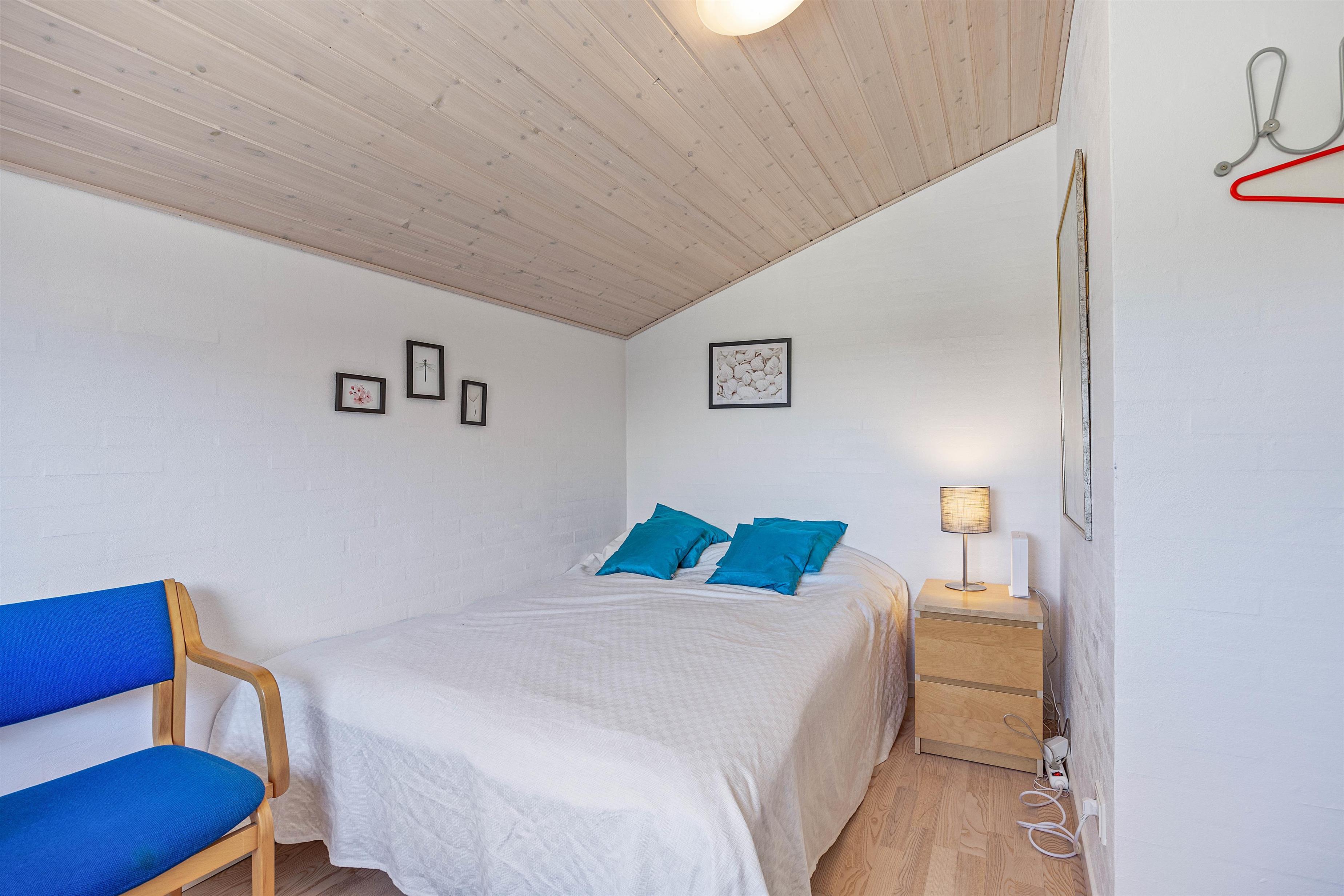 Indenfor mødes I af en stor opholdsstue som er i dirkete forbindelse med spisekøkken og stuen. I kan nemt samles her allesammen og hygge jer med fælles madlavning, spil eller planlægning af feriens aktiviteter. Køkkenent har også opvaskemaskine, så oprydningen hurtigt overstås. Derudover har sommerhuset fire rummelige og komfortable soveværelser, som giver masser af plads til 8 personer. Der er ligeledes også børneseng i huset til de mindste.