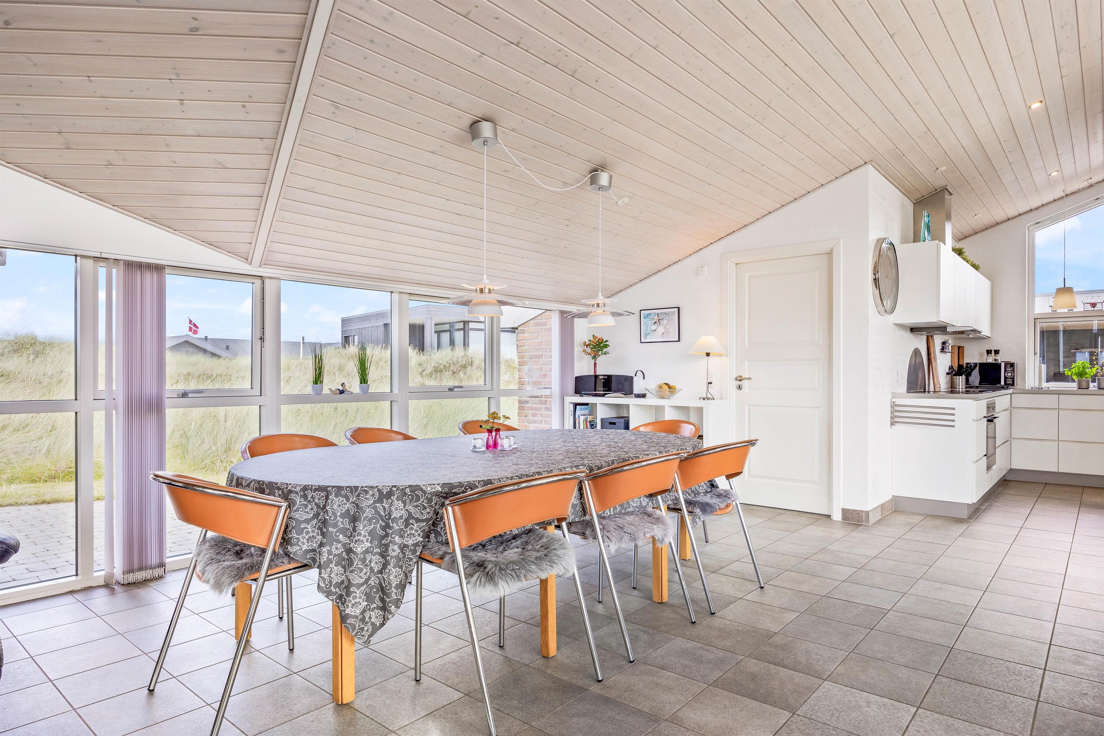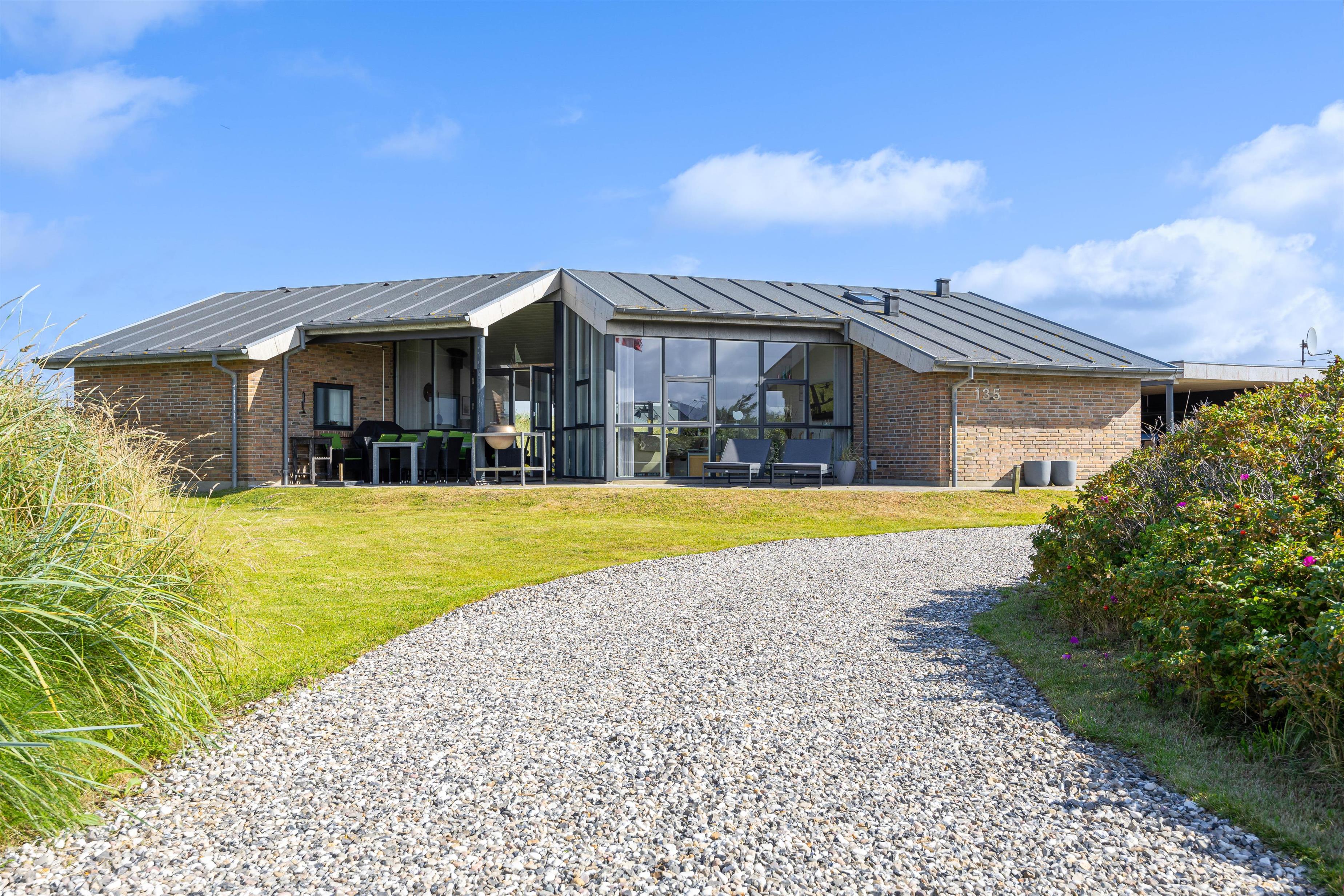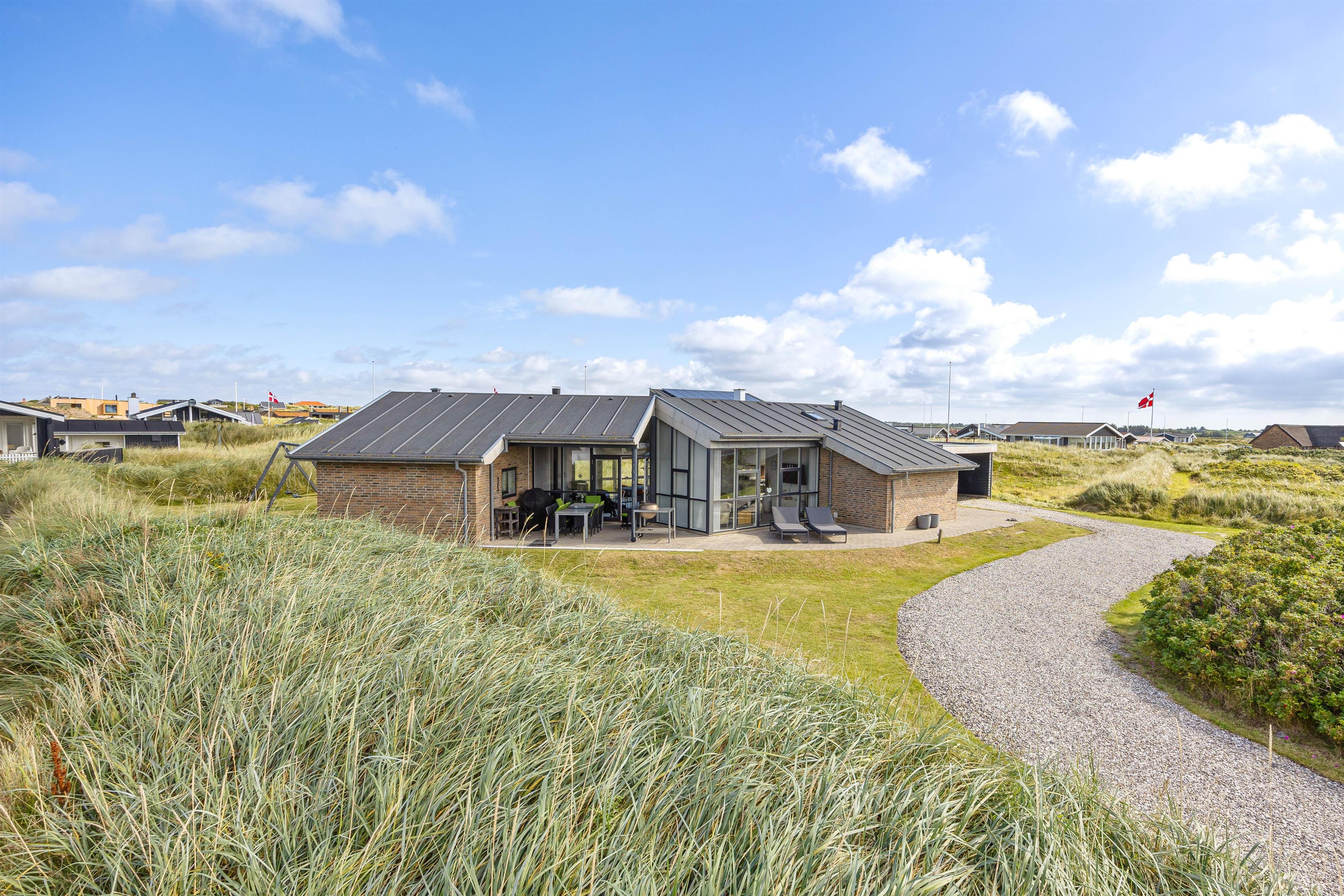 Udenfor huset finder I en dejlig og solrig terrasse, hvor I kan nyde solen og det smukke landskab omkring huset. Der er også havemøbler og en grill til rådighed, så I kan lave et lækkert måltid på grillen, og nyde det udenfor i det fri. Udenfor har i direkte adgang til en dejlig udesauna, hvor i kan nyde varmen, og på sammetid nyde udsigten ud over det betagende klitlandskab.Terrassen er delvis overdækket og med en terrassevarmer, hvilket der indbyder i stor grad til hygge. Her kan I læne jer tilbage i havestolene og bare nyde livet. Eller solbade på solsengene når vejret er godt.