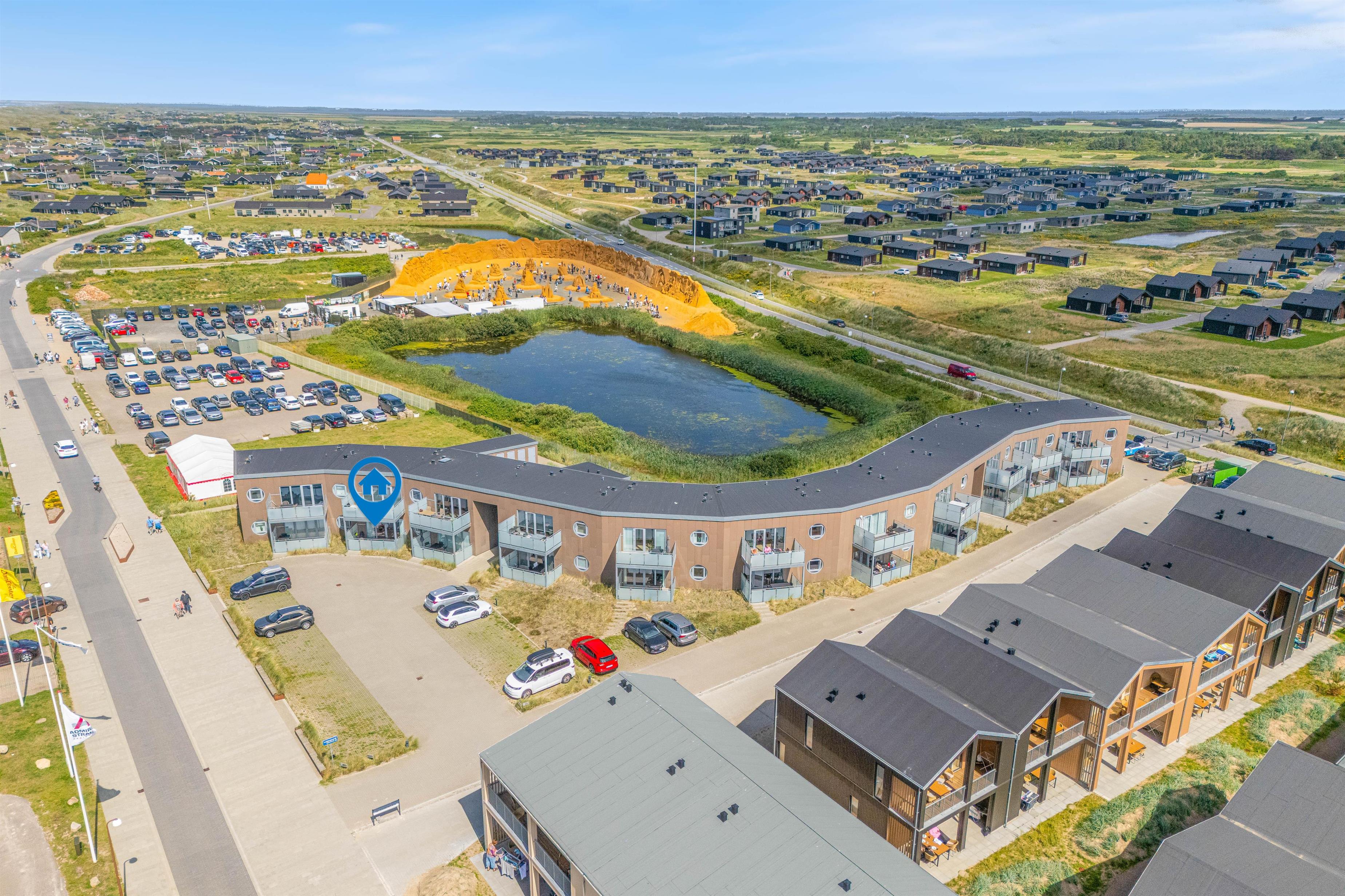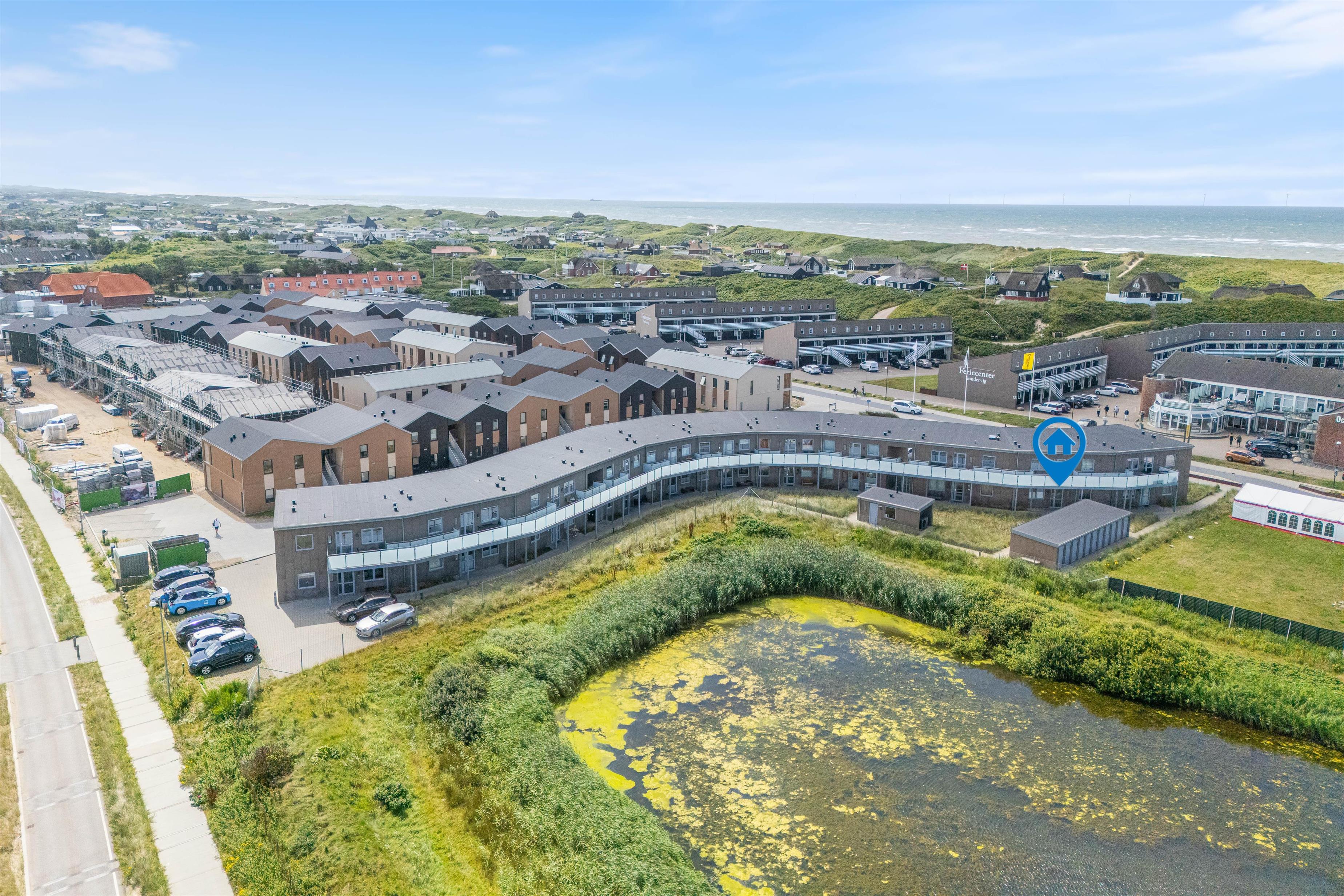 Lejlighedens placering midt i Søndervig gør, at der kun er få hundrede meter til de mange butikker, bageren og supermarkedet. Efter dejlig lille morgengåtur kan I nyde rundstykkerne og morgenbrødet på jeres egen altan. Er vejret ekstra godt i dag? Så er der kun 300 meter til Vesterhavet og den brede, kilometerlange sandstrand. Med jeres kæledyr er der plads til mange spontane gåture på jeres ferie i det vestjyske.