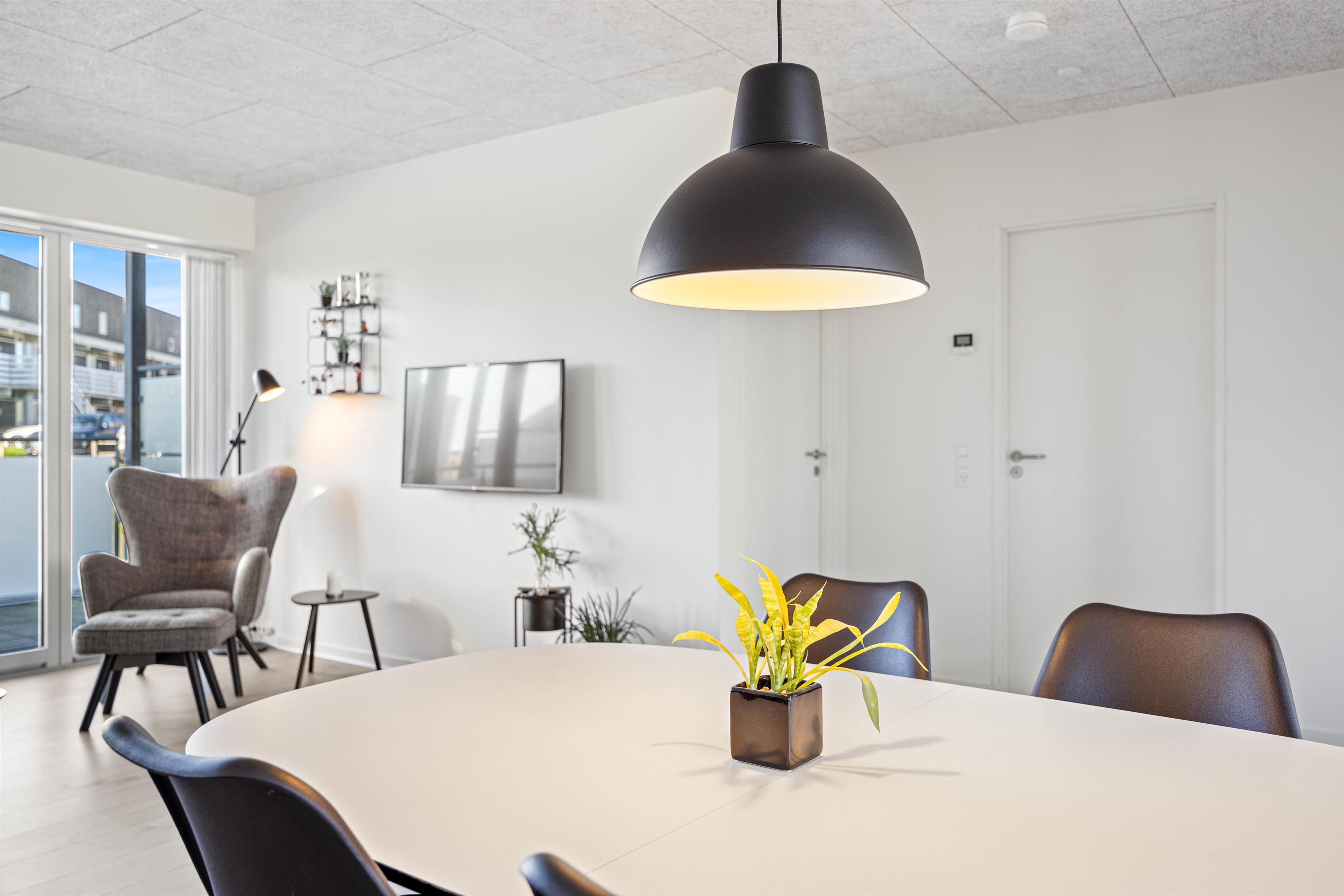 Er der alligevel noget arbejde, der ikke kan vente til du kommer hjem igen, er lejligheden også indrettet efter det. Den er nemlig udstyret med hurtig fibernet forbindelse og et skrivebord, så du har et fast arbejdshjørne og hurtigt kan komme tilbage til feriehyggen igen.