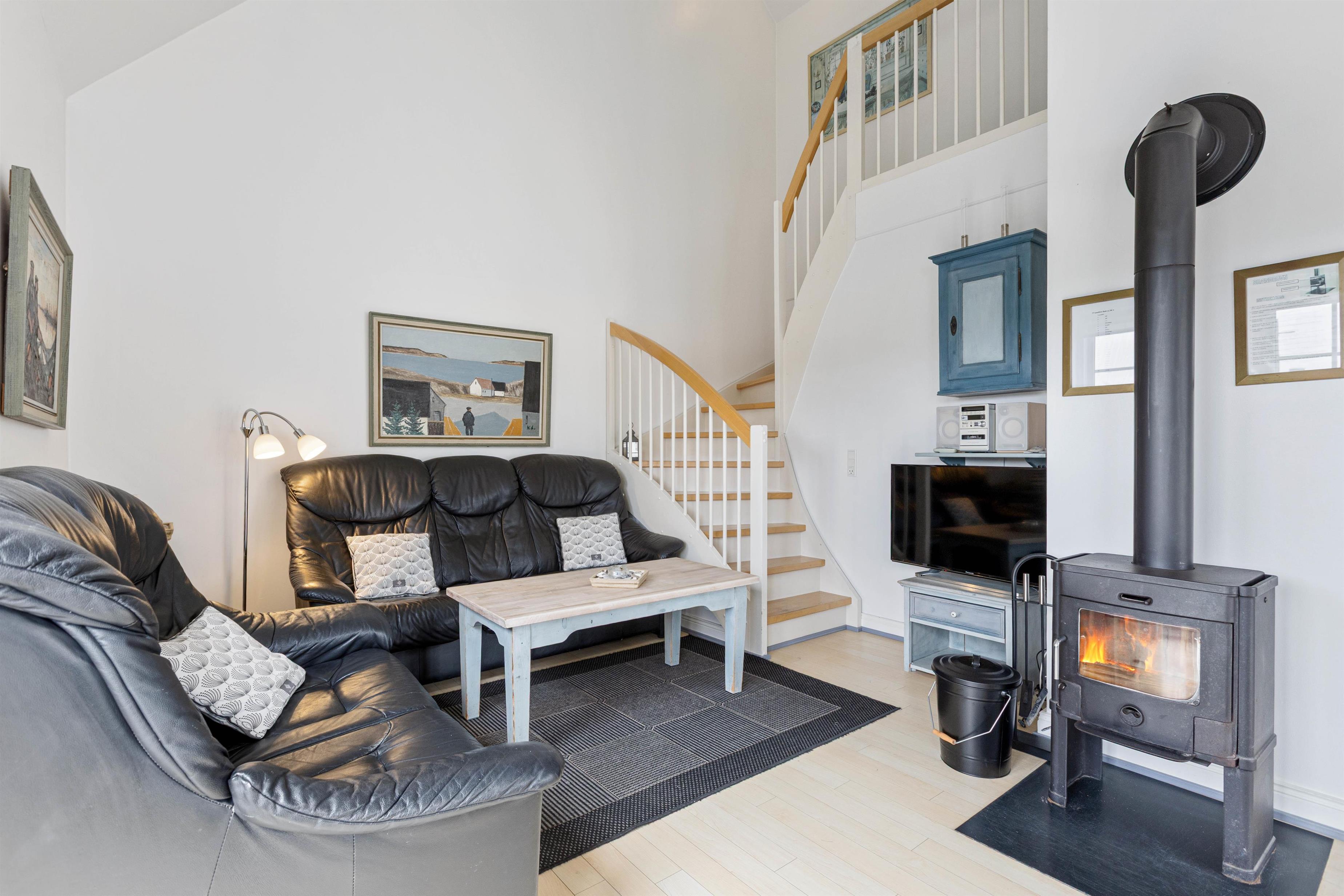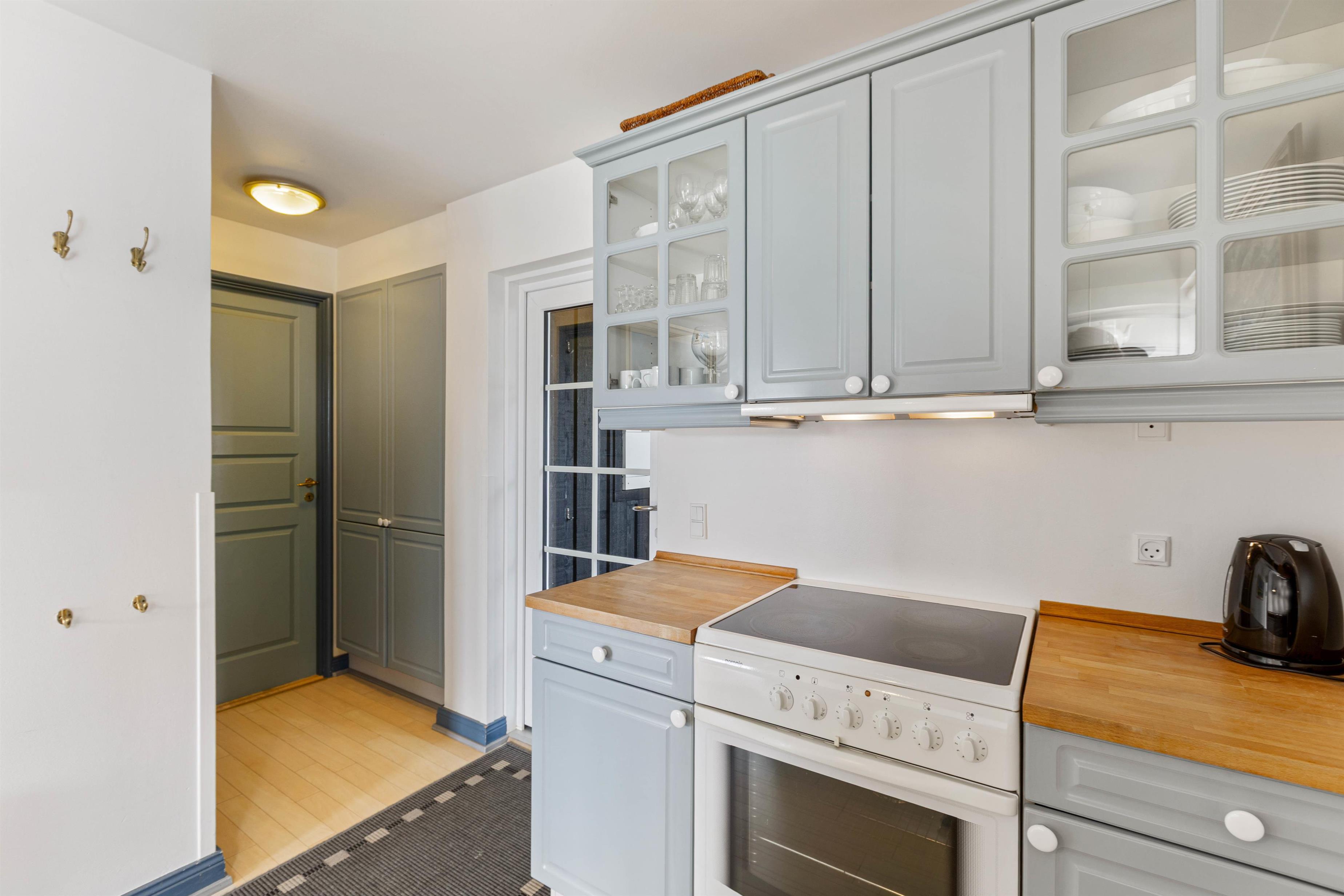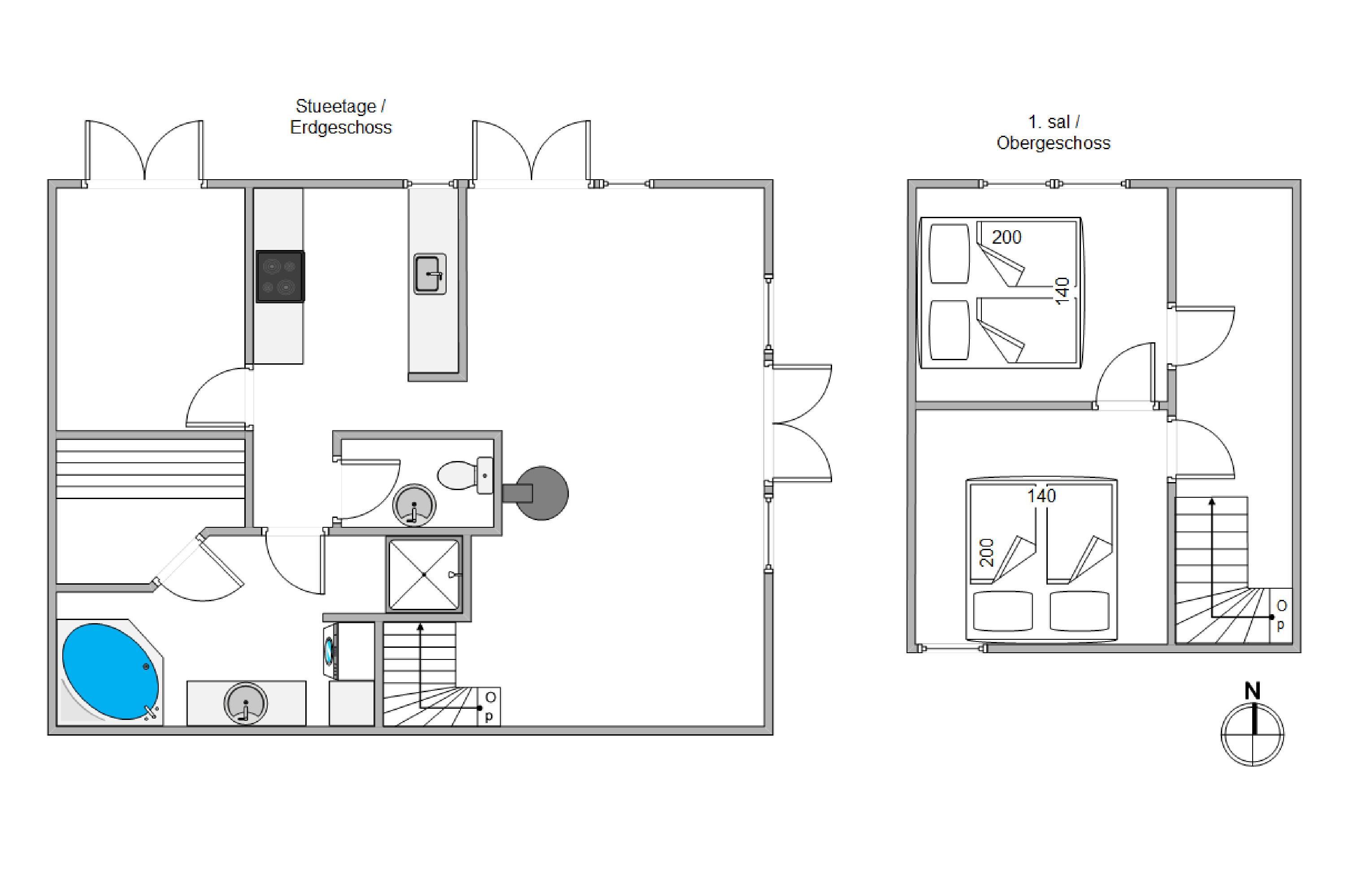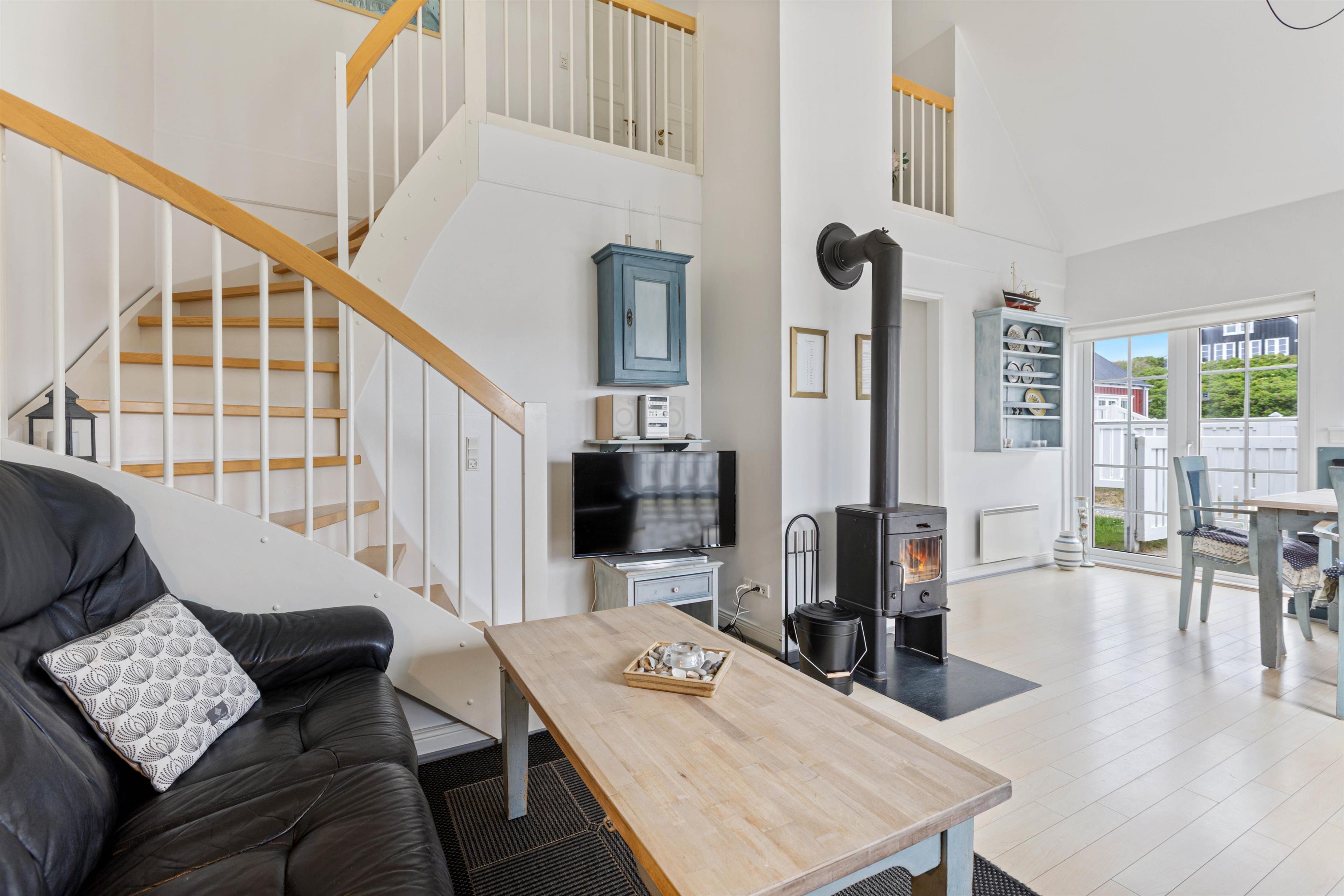 Ferielejligheden er en del af et flerfamiliehus med i alt 4 ferielejligheder. Hver har 2 etager og sin egen indgang samt en lukket terrasse. I stueetagen er der et køkken med opvaskemaskine, et badeværelse med tømmespa og en stue med både brændeovn, samt et spise- og TV-hjørne, hvor I kan hygge jer med brætspil og jeres yndlingsserie. De 2 soveværelser med hver deres dobbeltseng er på 1. sal.