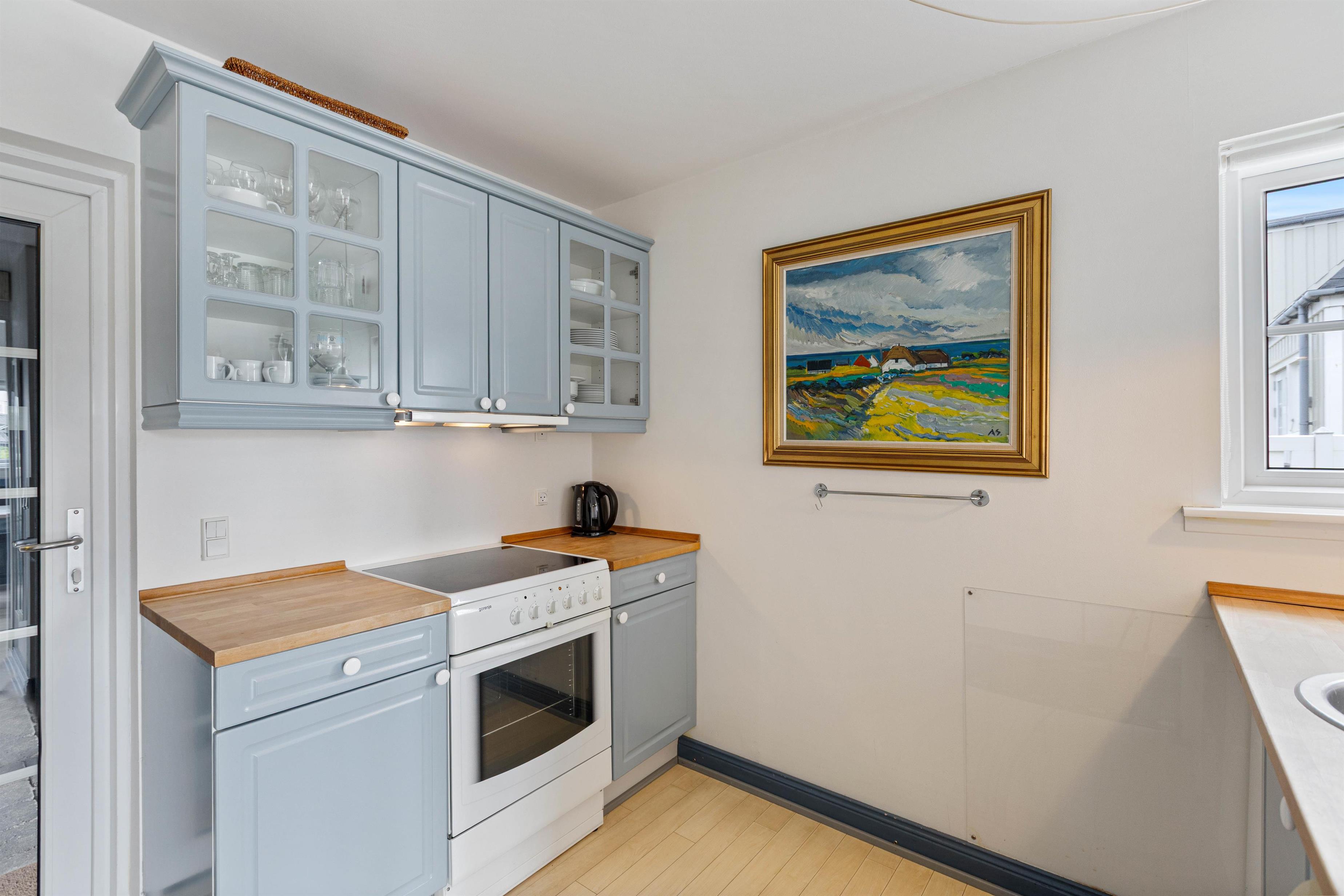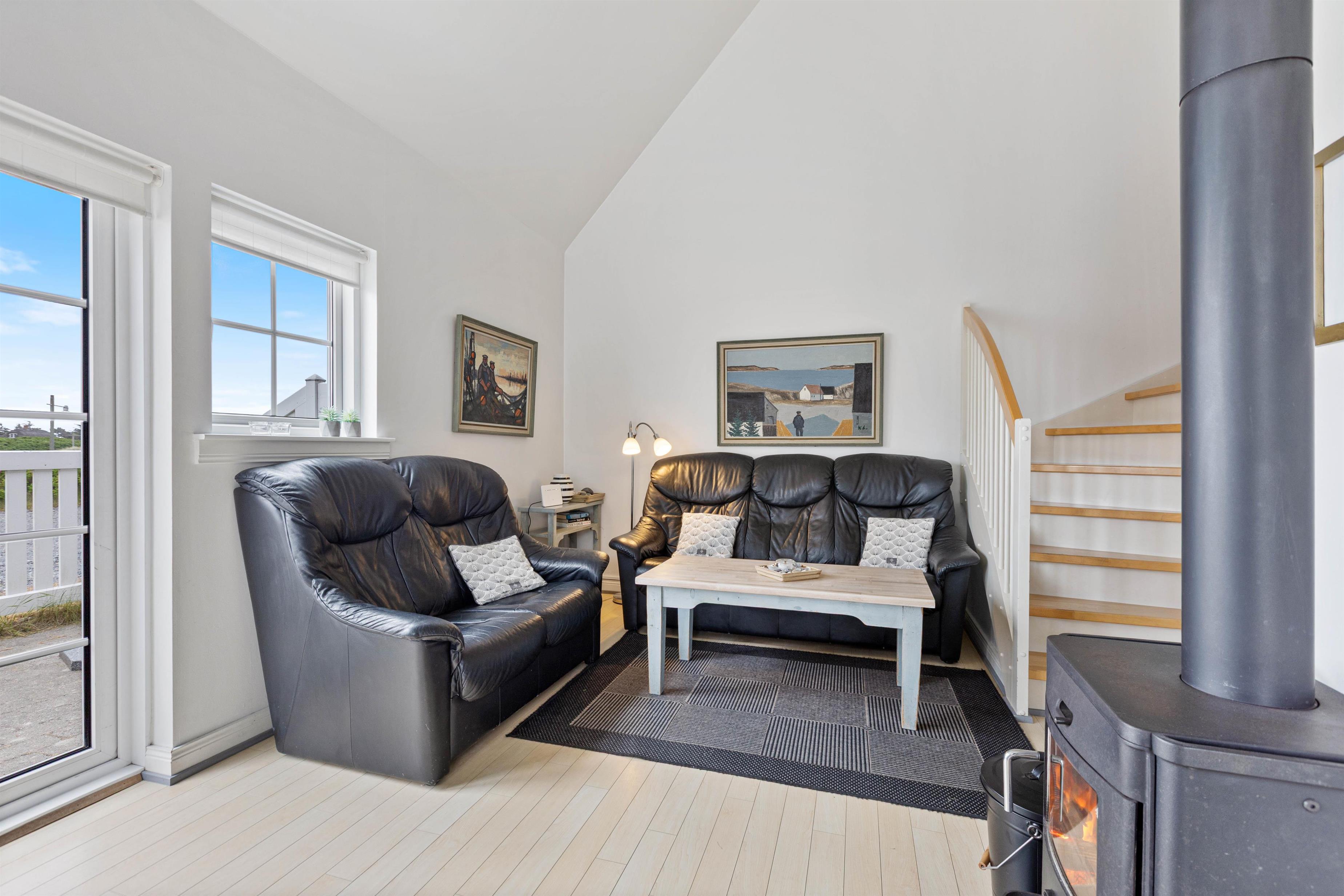 Denne charmerende ferielejlighed på Badevej 20 C4 egner sig godt til et fælles ferieophold for en mindre familie eller et par. Spabadet er et hit både for store og små. Og på de koldere dage kan der tændes op i brændeovnen, hvor jeres firbenede ven, hunden, kan varme sig. Ferielejligheden rummer med sine 90 m2 fin plads til 4 personer og 1 hund. Der er kun 250 meter ned til det brusende Vesterhav. Hvis I ankommer i elbil, kan I finde 4 ladestandere på den fælles parkeringsplads, som I kan benytte, hvis I selv medbringer et kabel.