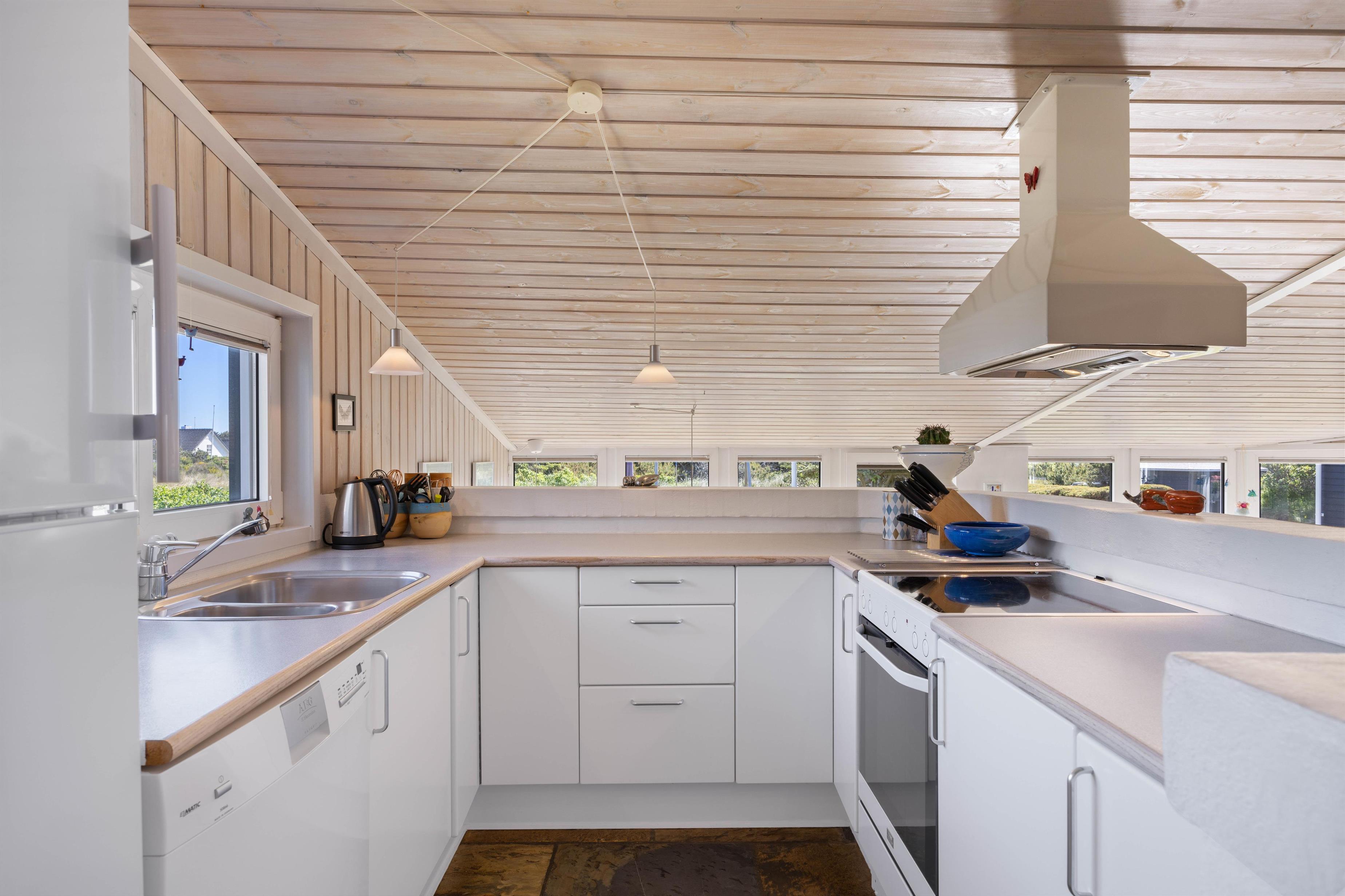 Dette sommerhus er beliggende lige efter første klitrække og har derfor en helt unik placering blot 200 meter fra stranden. Sommerhuset har plads til fire personer og én hund, og er således perfekt til den lille familie, som ønsker en dejlig ferie i Søndervig. Derudover er sommerhuset placeret i rolige og børnevenlige omgivelser med en dejlig stor have, hvor børnene frit kan lege. Yderligere har sommerhuset både en skøn overdækket terrasse, hvor I er sikret mod vinden, samt en forhøjet træterrasse med en helt fantastisk udsigt.