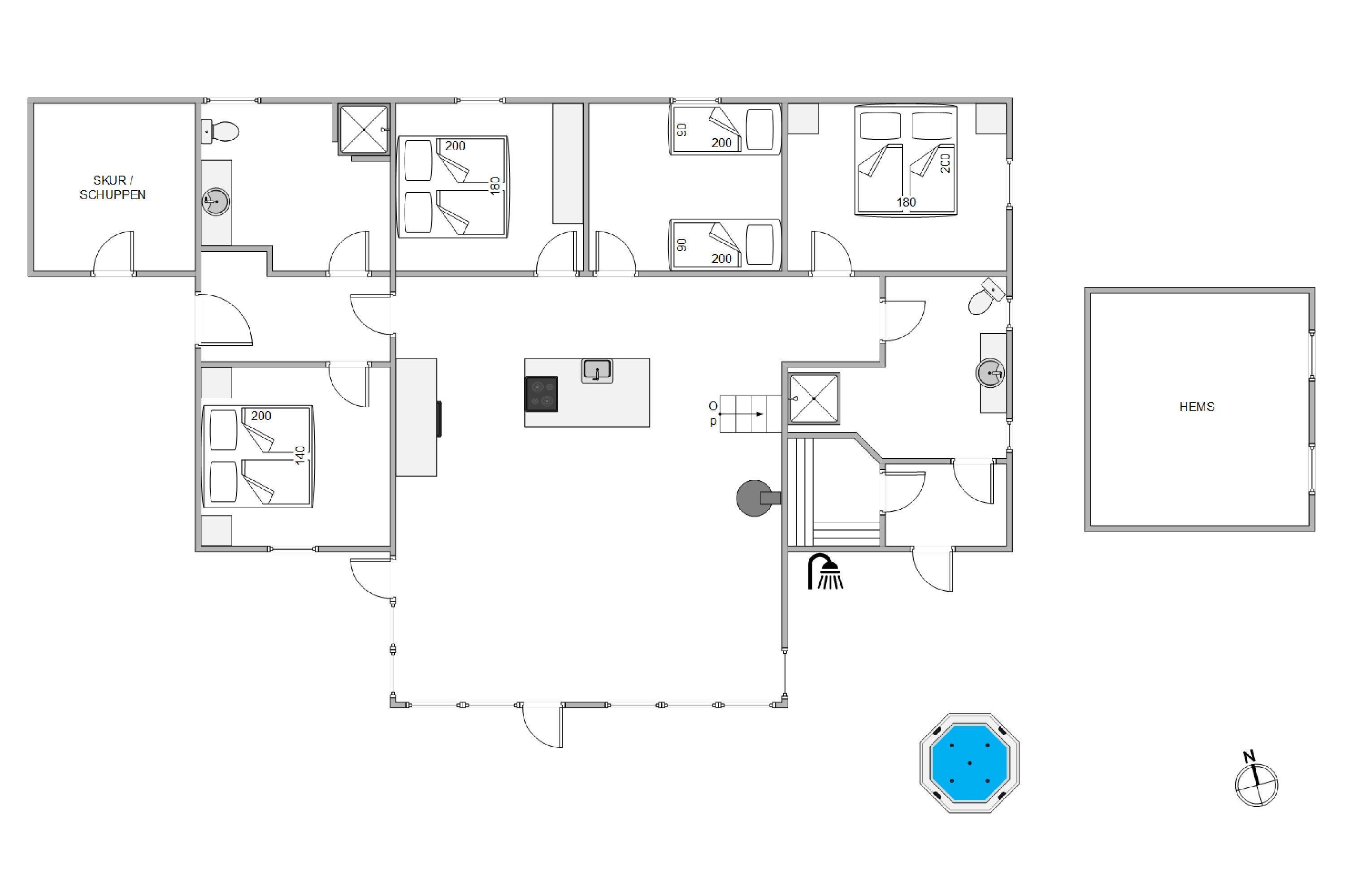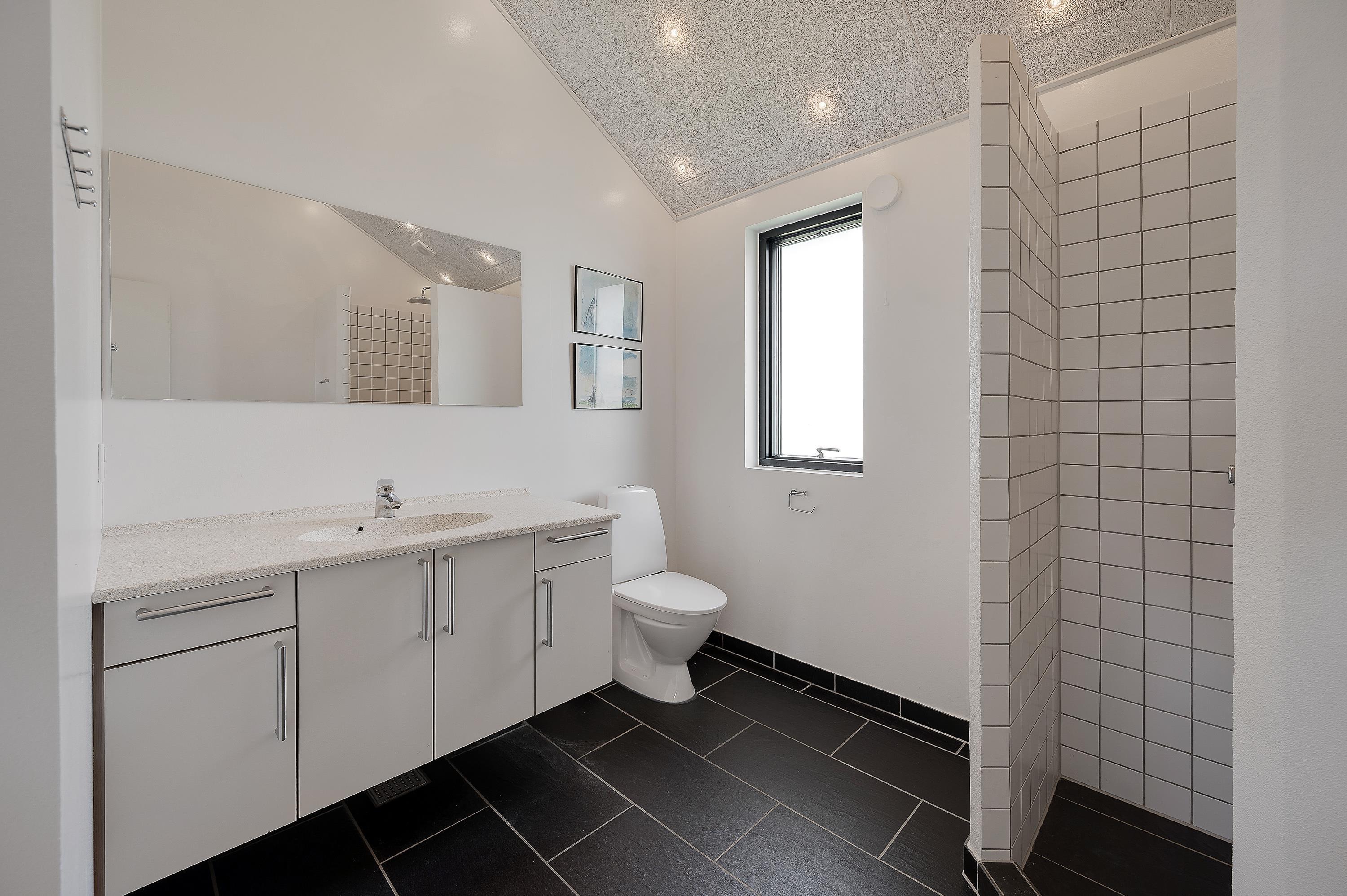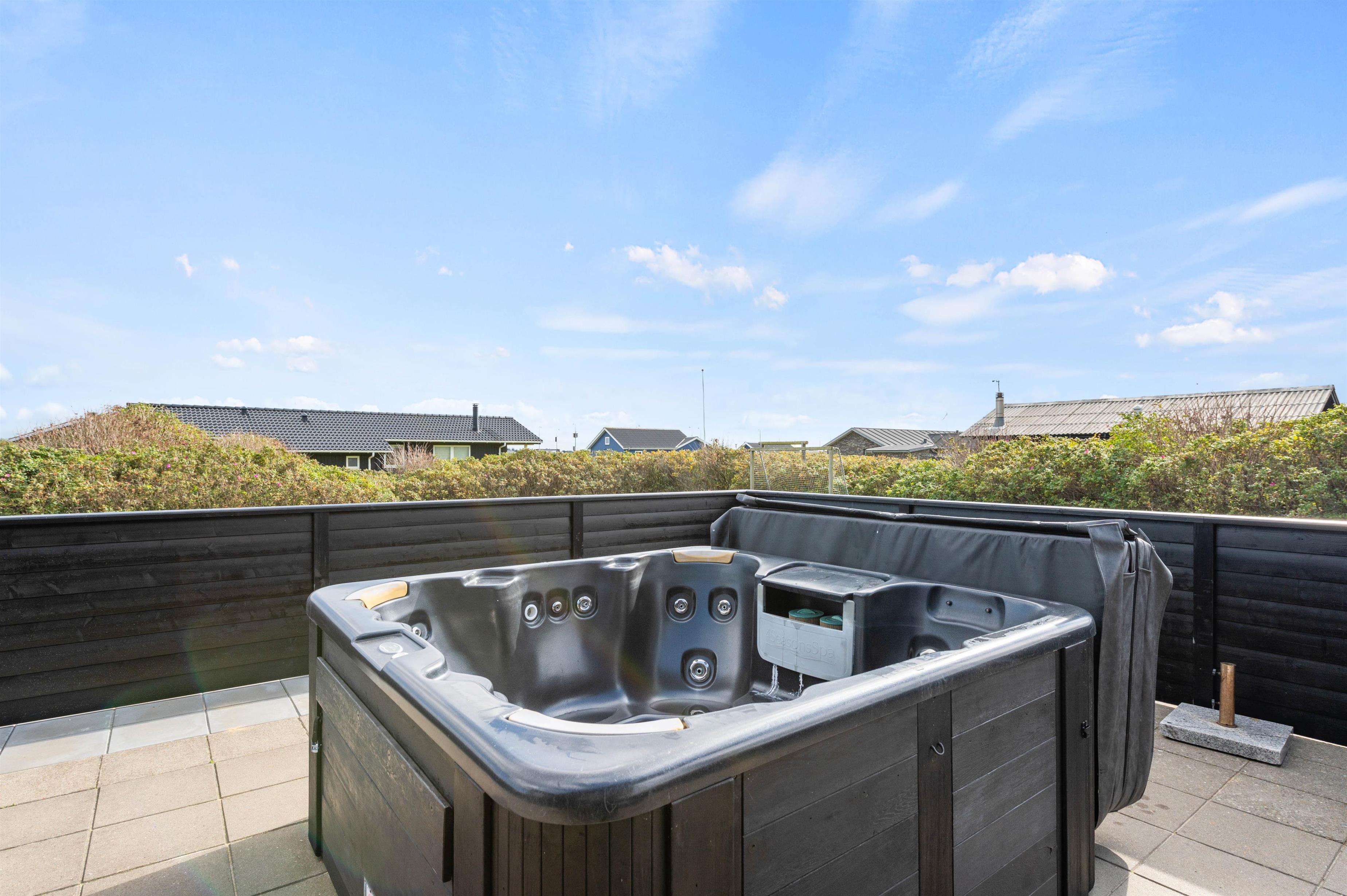 I sommerhuset finder I to store badeværelser, der ligesom resten af sommerhuset har gulvvarme, så I ikke behøver at bekymre jer om kolde fusser om morgenener. For jeres velvære og så I kan nyde jeres ferie endnu mere, er huset udstyret med flere forskellige wellness muligheder. Der er en flot og stor udespa placeret på den sydøstlige terrasse, her er der rigelig plads til fire personer. Den er brugbar hele året rundt og en sådan terrasse finder man ikke ved mange huse. Der er også en lækker sauna, der sikrer at I for alvor kan blive varmet igennem og nyde noget afslapning.