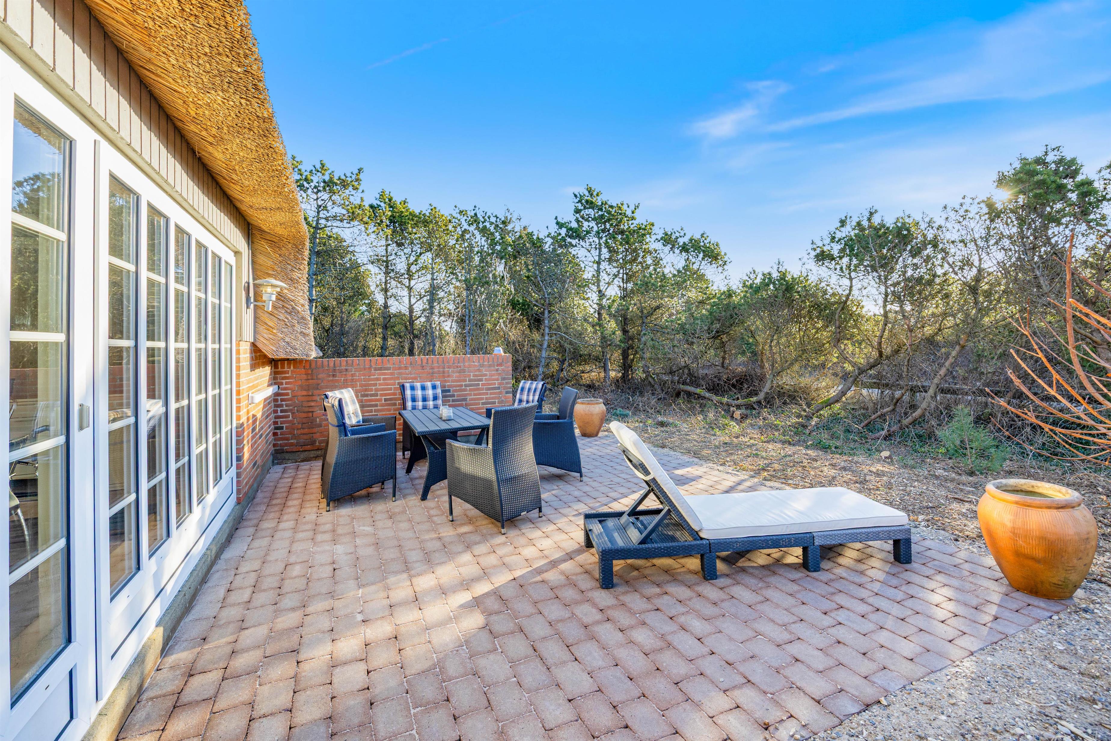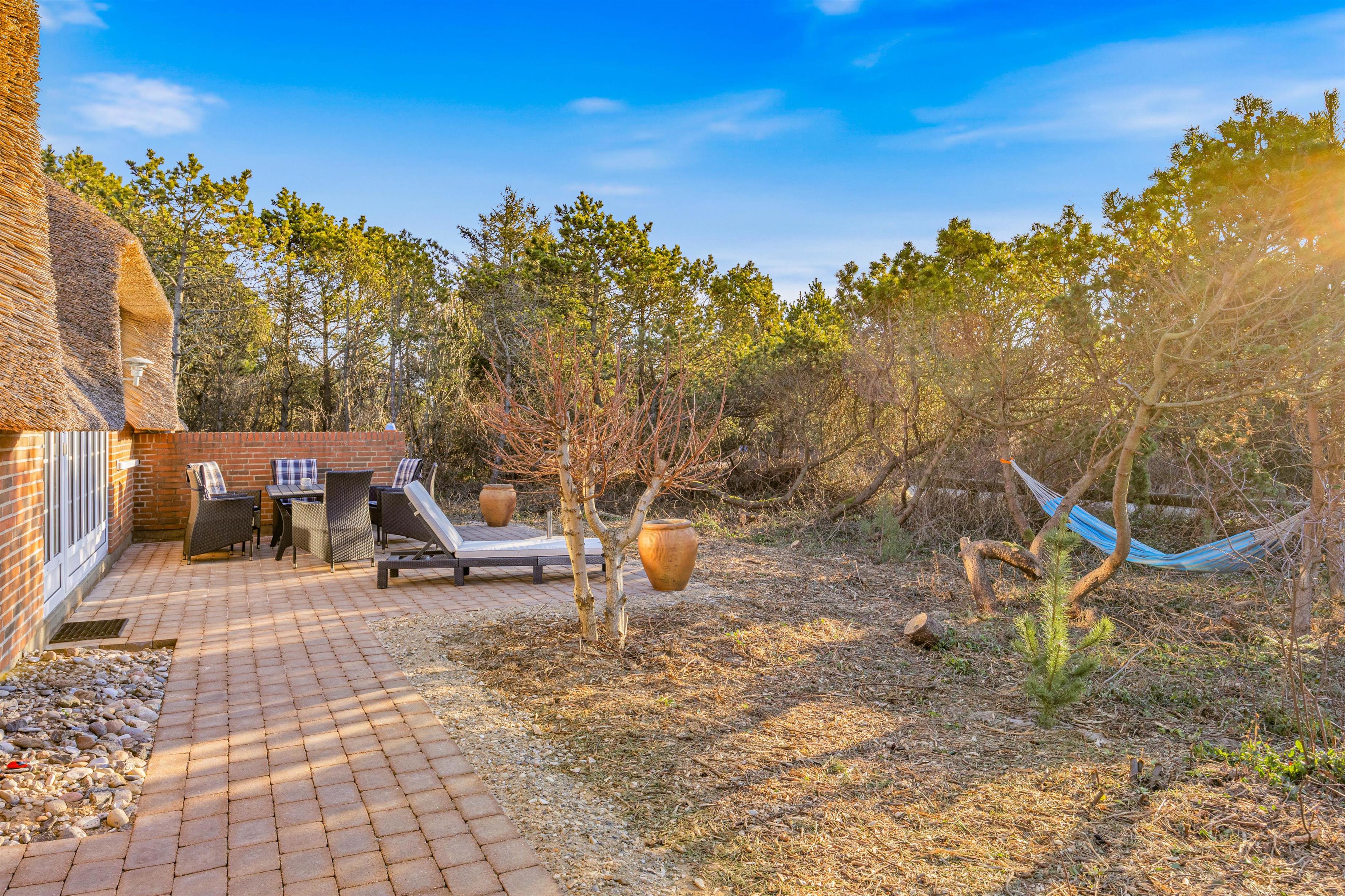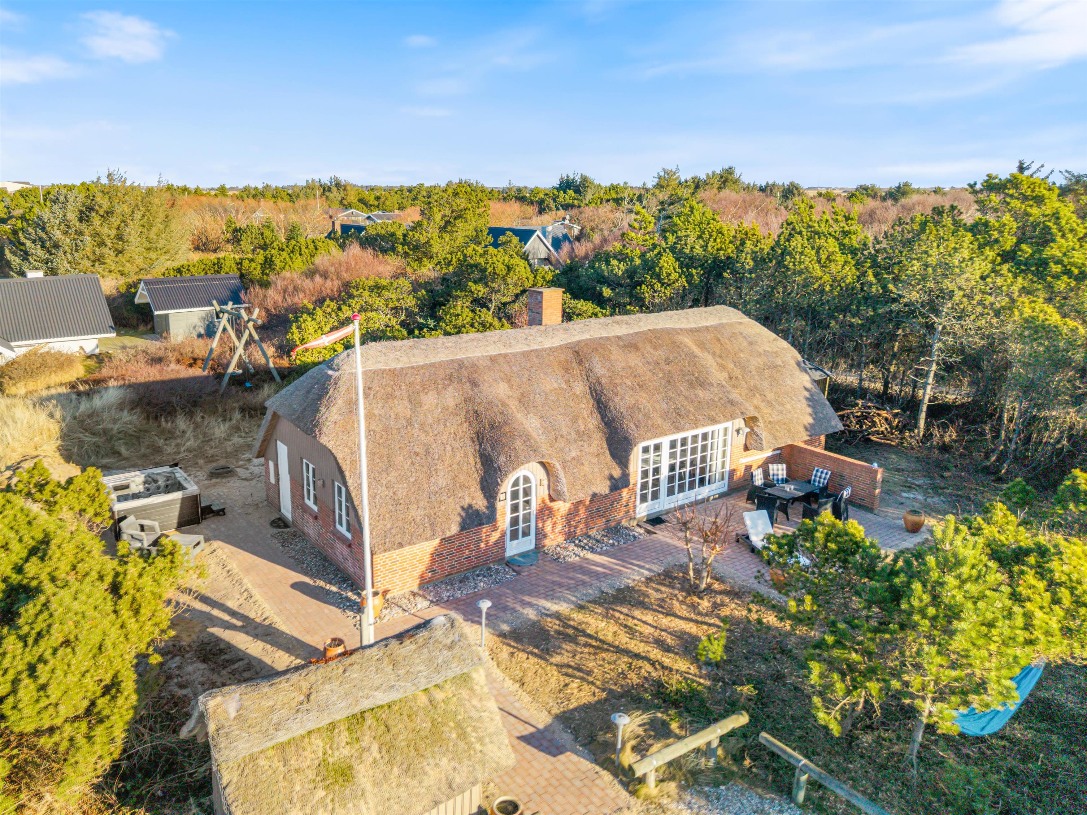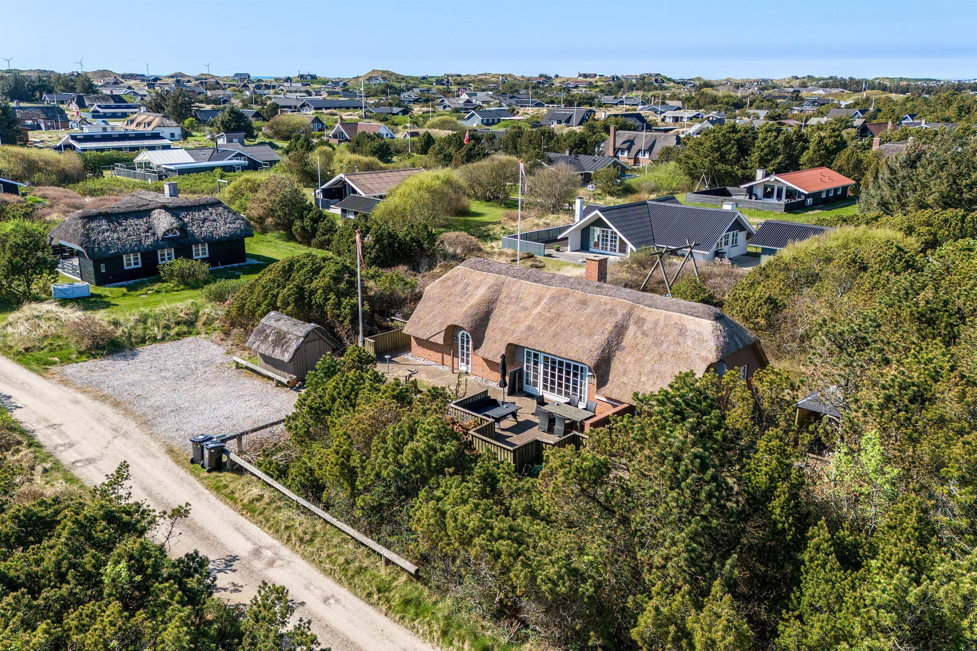 Sommerhuset ligger blot 1000 meter fra det brusende Vesterhav, hvor lange gåture i den vestjyske natur venter jer. Indkøbsmulighederne i Søndervig ligger kun 1400 meter væk, så det er nemt at handle ind uden besvær. I feriebyen Søndervig finder I desuden flere hyggelige caféer, spisesteder og butikker, der indbyder til en afslappende udflugt.