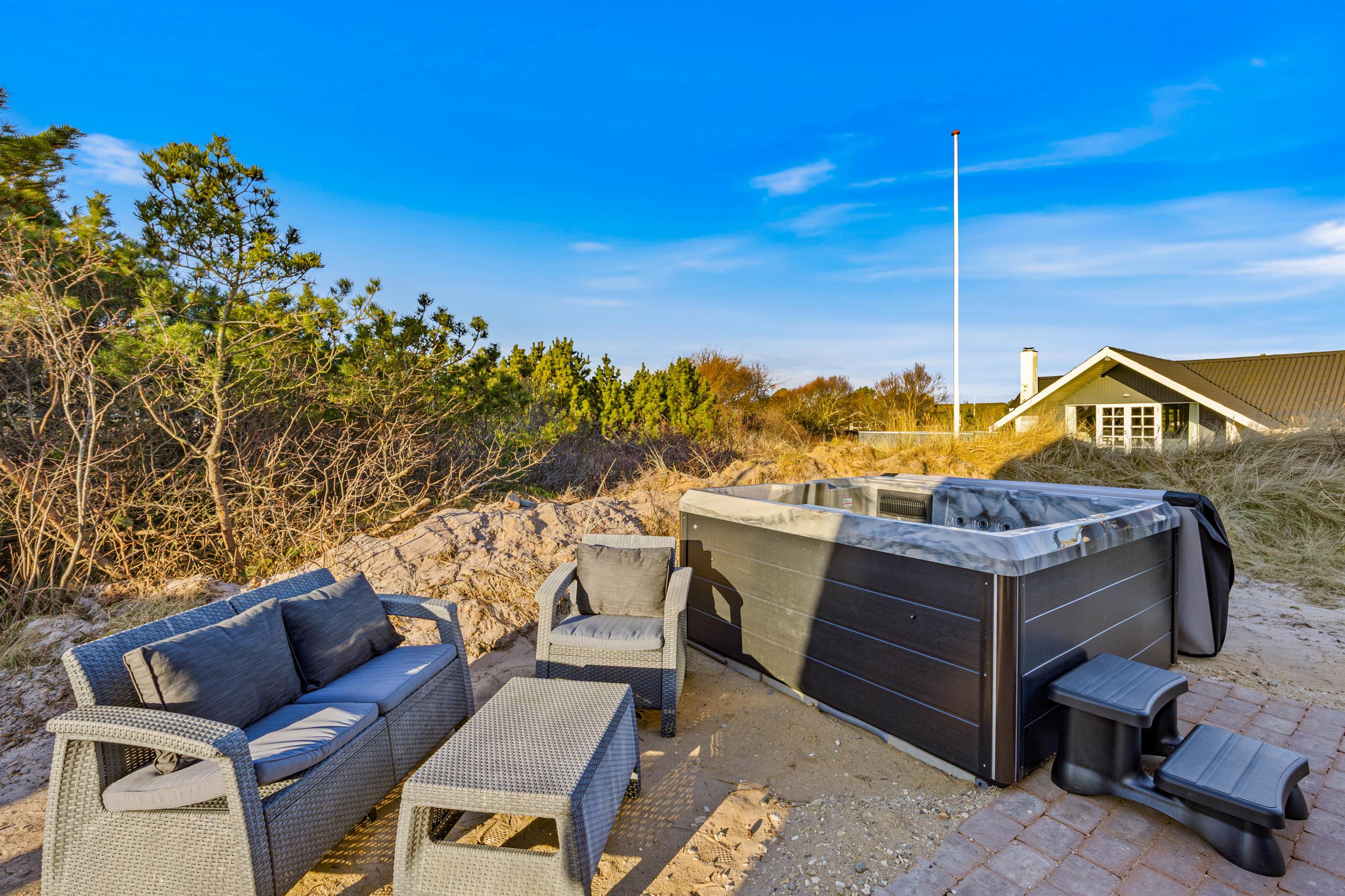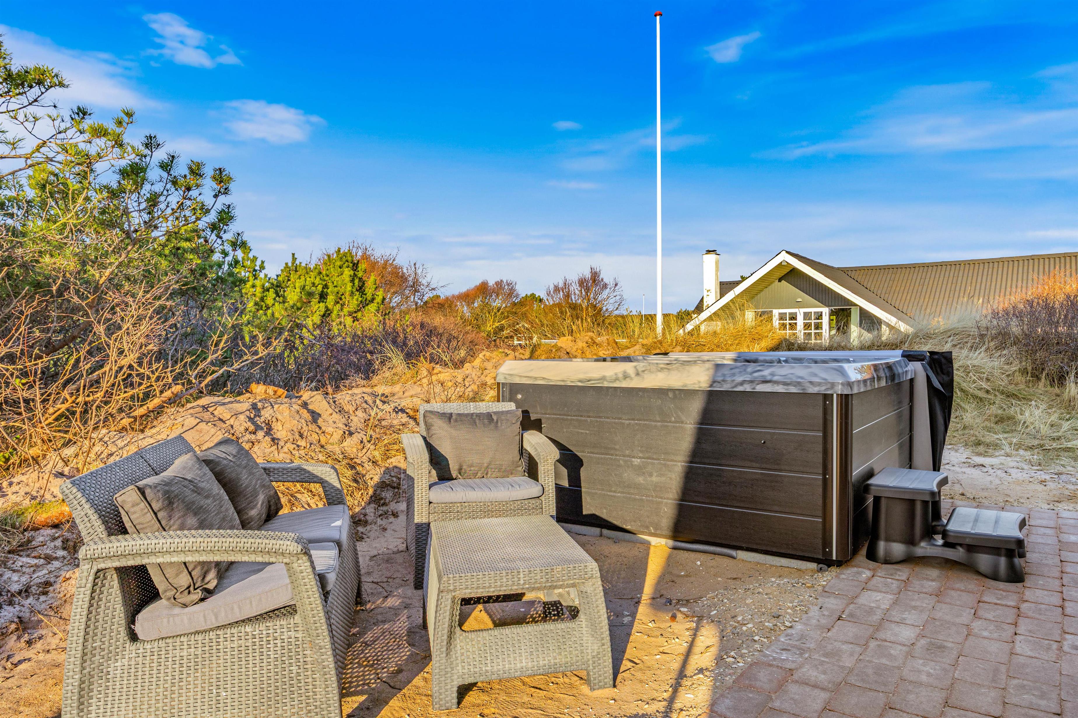 Sommerhuset byder på en privat wellnessafdeling med indendørs spabad og sauna – det ideelle sted at koble af efter en dag fuld af oplevelser. Som prikken over i’et kan I også synke ned i udespaen og nyde den danske aftenhimmel, mens roen sænker sig.
