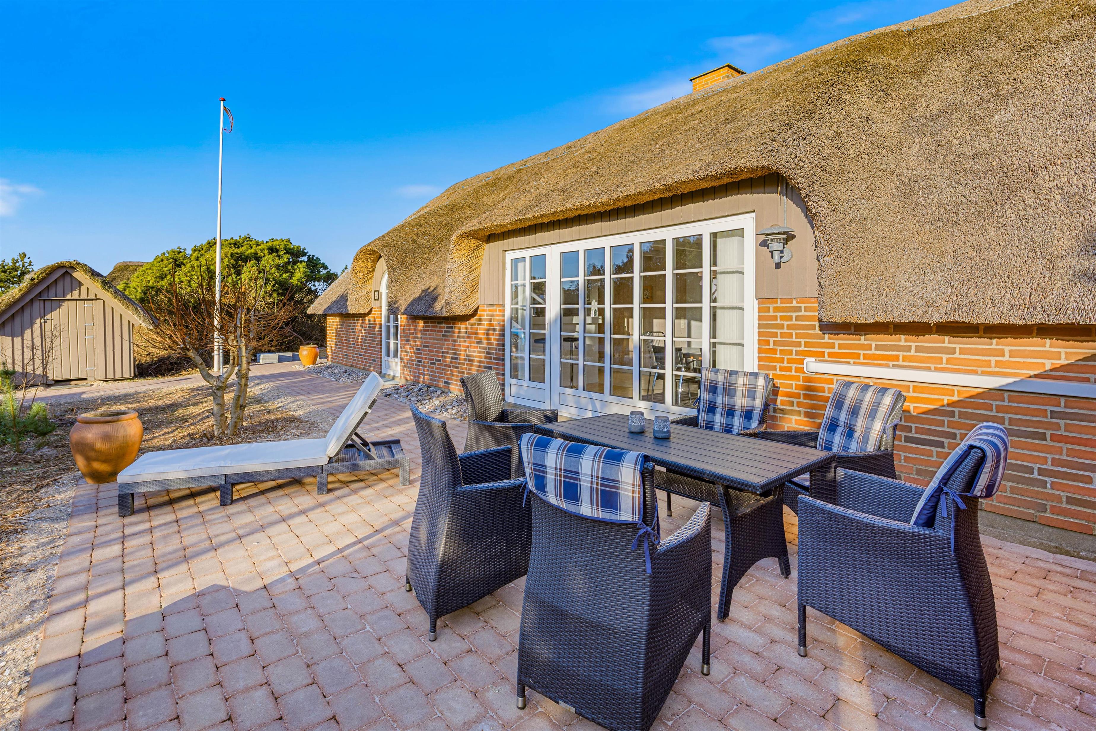 Leder I efter et lyst og hyggeligt stråtækt hus, hvor hele familien kan samles til ægte hygge, er Hjelmevej 65 et oplagt valg. Sommerhuset, der er opført i 1991, fordeler sig over 101 kvadratmeter og ligger på en stor naturgrund i Søndervig. Sommerhuset har plads til 6 og 1 hund, så hele familien kan holde ferie sammen.