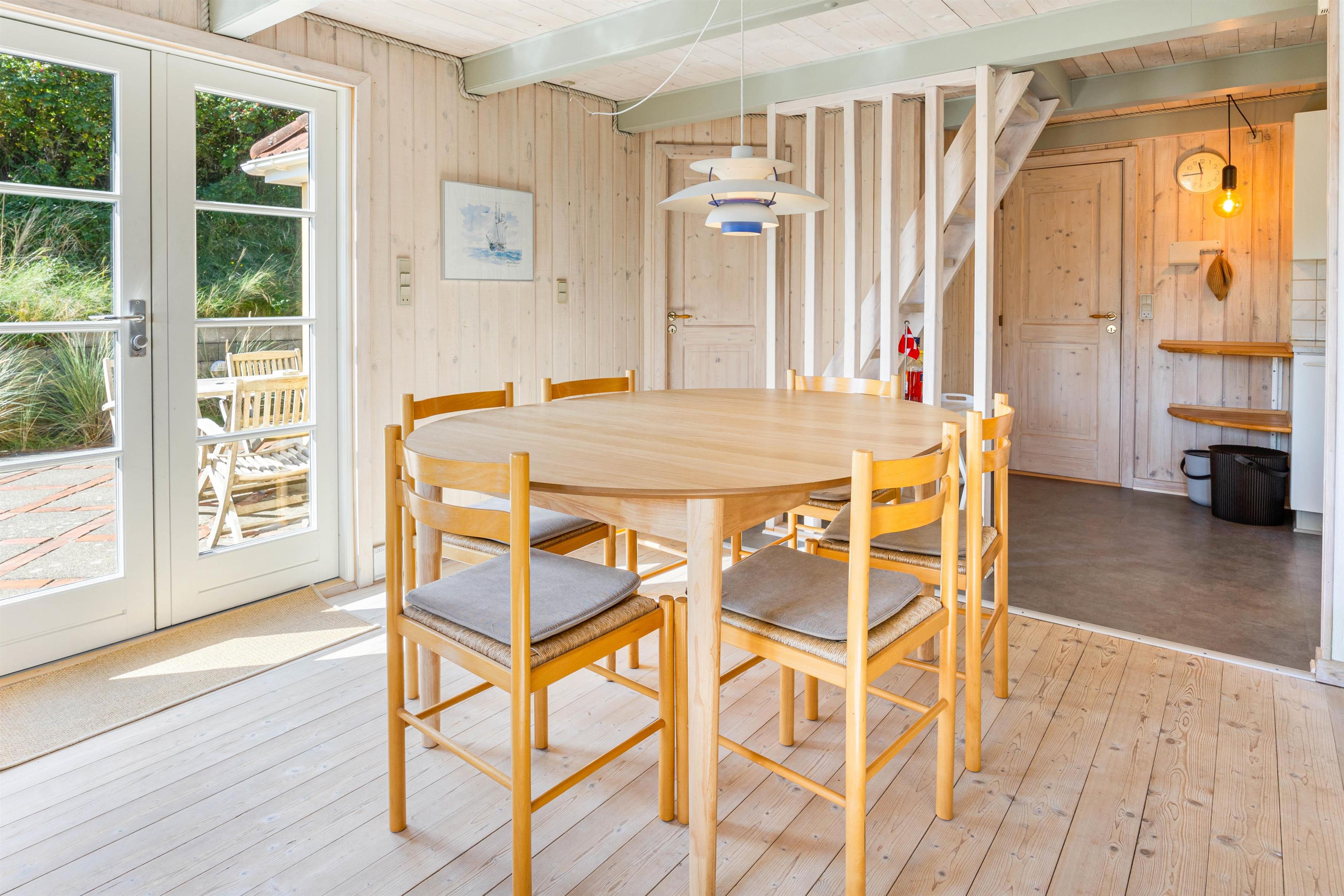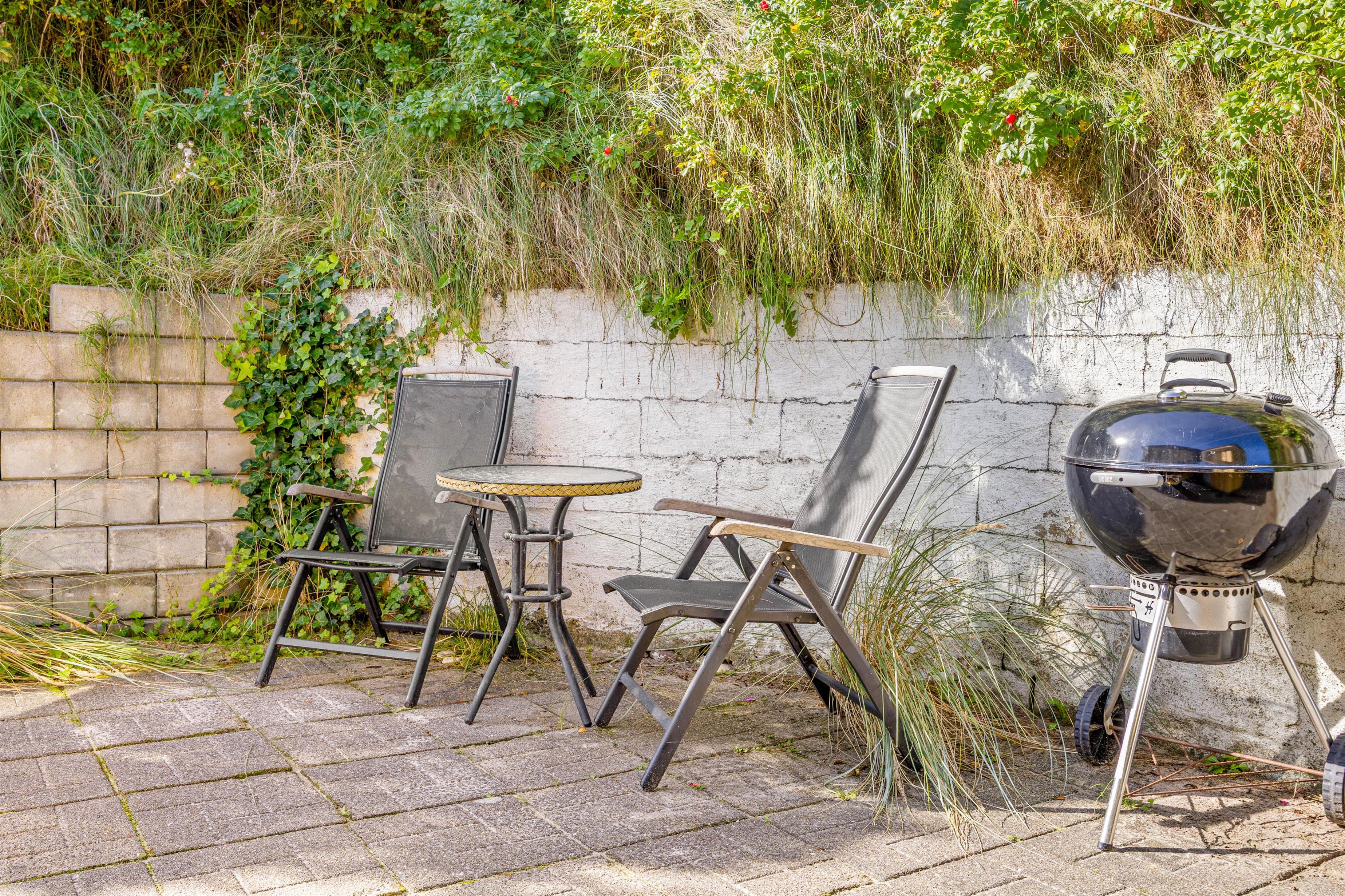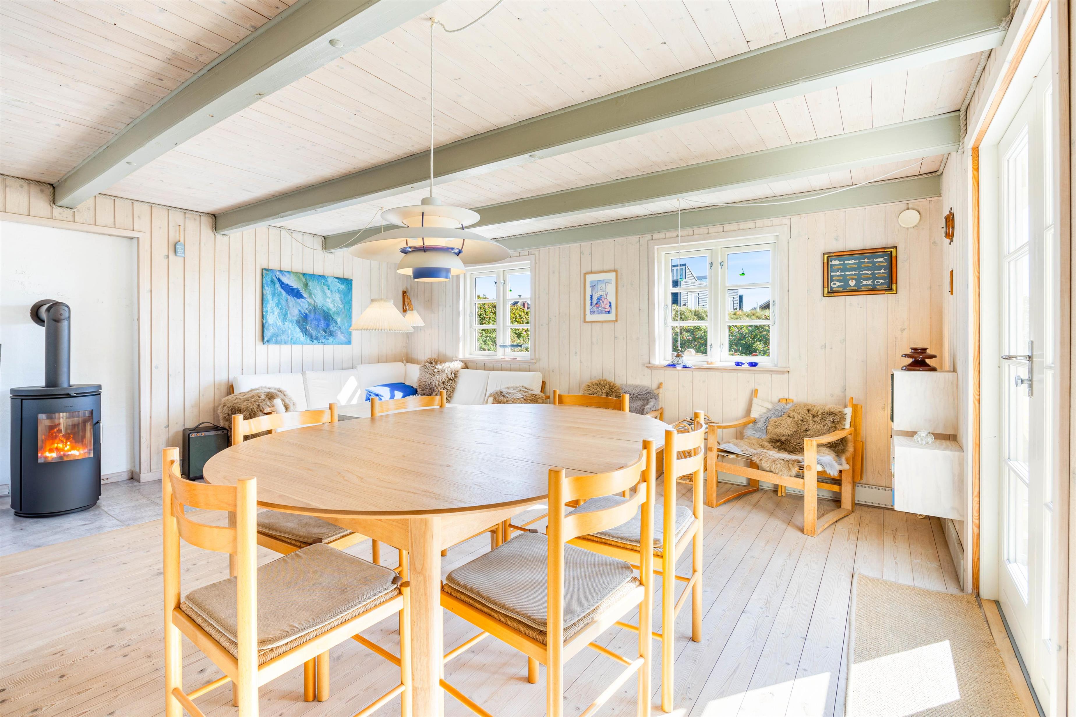 Sommerhuset er næsten integreret i klitten og giver en følelse af ro og nærhed til naturen. Grunden byder på flere hyggelige kroge, hvor I kan nyde solen eller slappe af i fred og ro. Bag huset finder I en afskærmet terrasse, som både giver privatliv og læ for vinden – ideel til grillaftener med familie og venner. Havemøbler og grill står til rådighed, så I kan nyde det danske sommervejr fuldt ud.