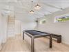 Moderne indretning, brændeovn og billard