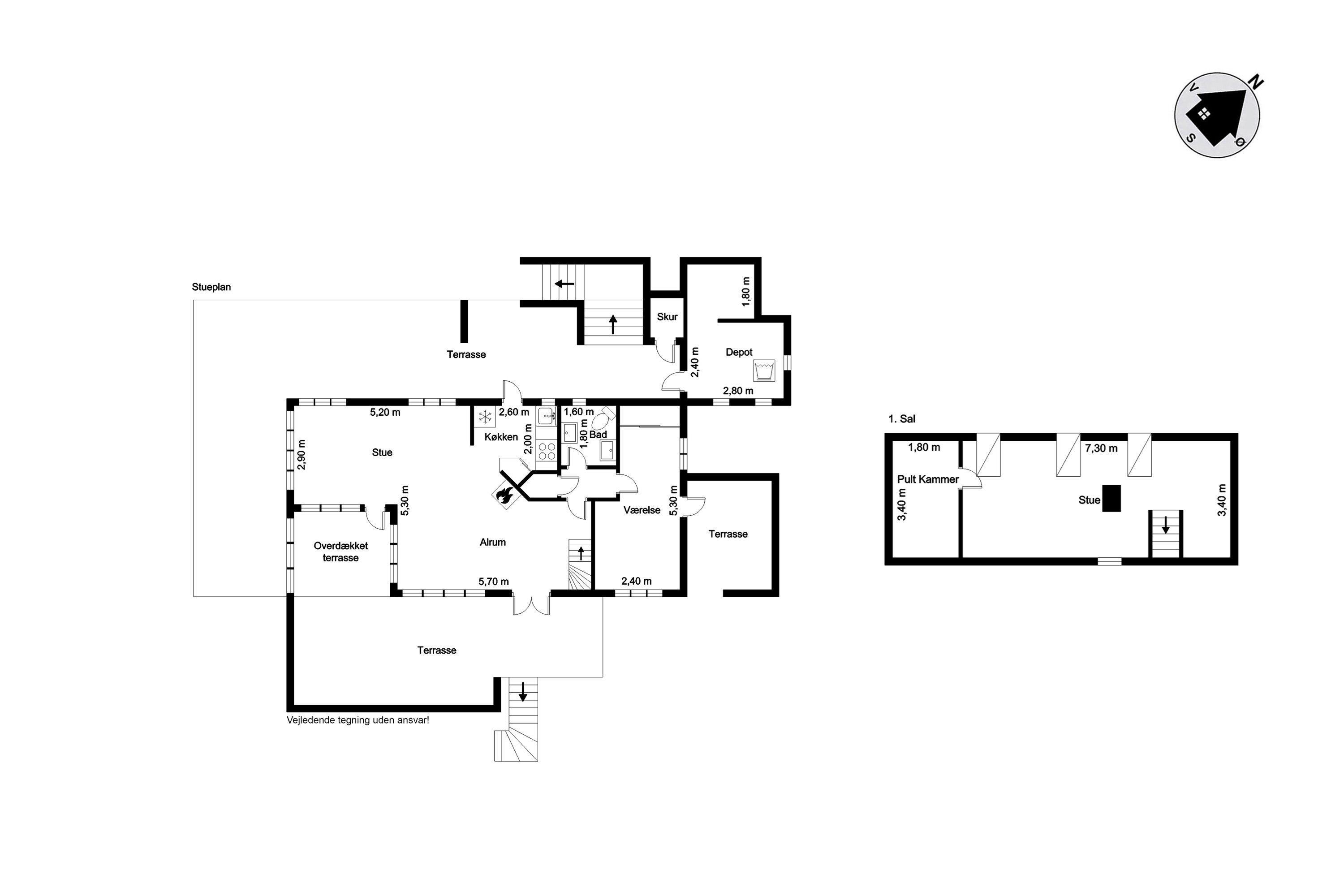 Saml familien eller vennerne omkring spisebordet for at planlægge feriens aktiviteter, eller hold en sjov spilaften, mens den knitrende brændeovn skaber ægte sommerhusstemning. Sommerhuset er desuden udstyret med en energibesparende luft-til-luft varmepumpe, som sikrer et behageligt indeklima året rundt.