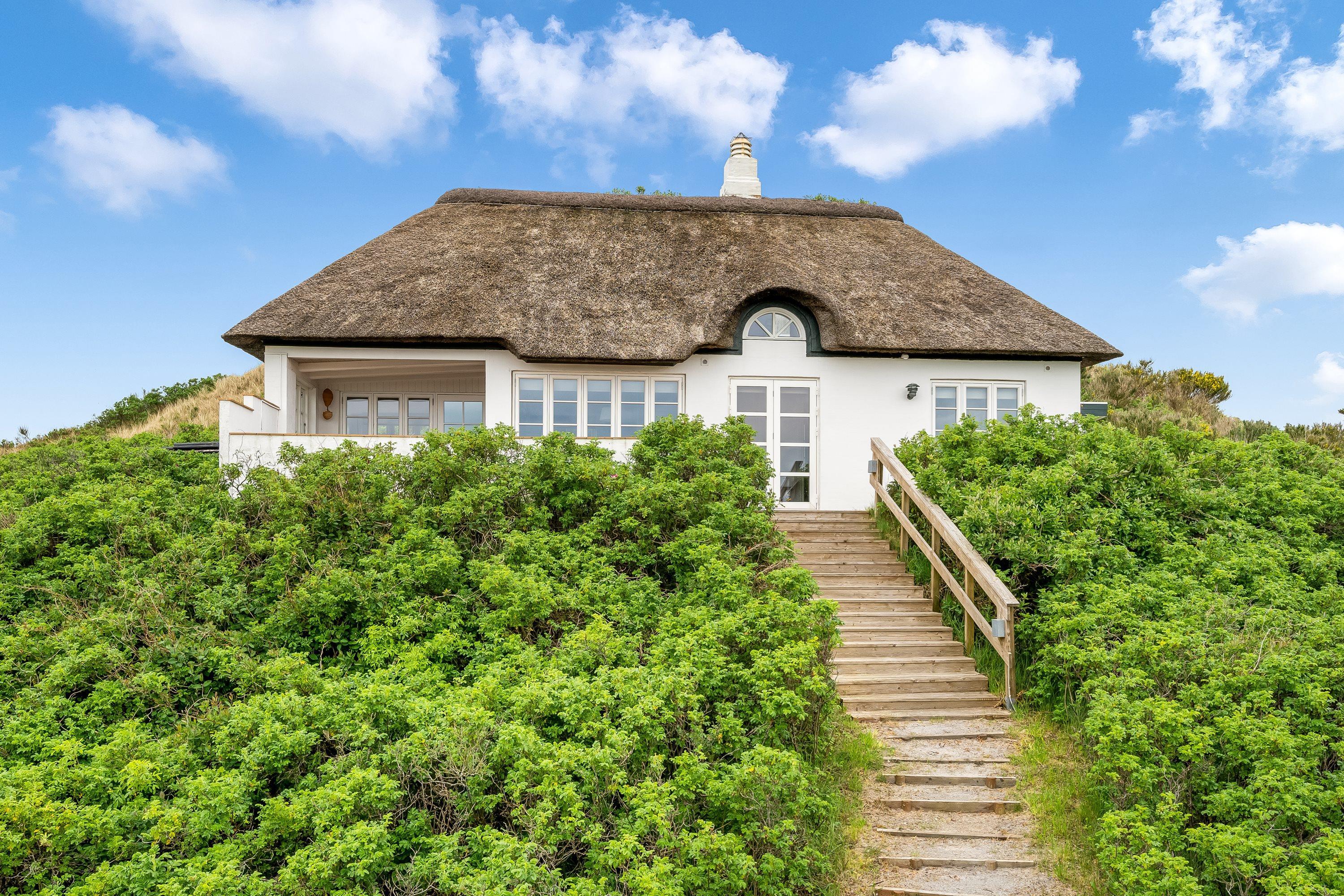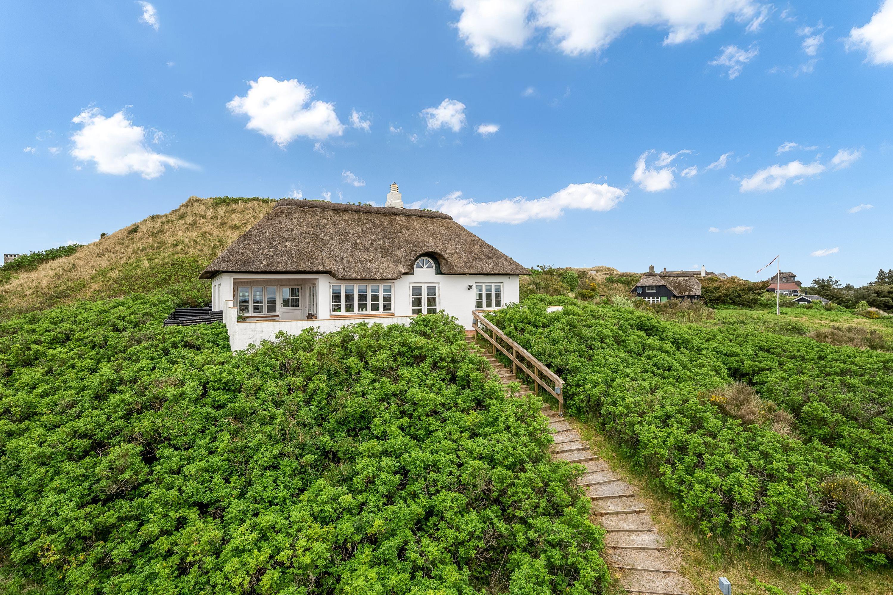 Sommerhuset ligger på en 1.914 kvadratmeter stor klit- og naturgrund, hvor I kan nyde udendørslivet til fulde. Huset har både en åben og en afskærmet terrasse samt en overdækket terrasse, som giver mulighed for at nyde naturen uanset vejret. Fra terrassen kan I samtidig nyde den smukke panoramaudsigt over Ringkøbing Fjord.