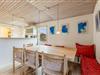 Husets hjerte er det indbydende køkken-alrum, hvor familien samles til hyggelige stunder. Nogle kan stå få madlavningen i det moderne og veludstyrede køkken, mens andre slapper af i sofaen med en god film eller en kop kakao. Brændeovnen spreder en behagelig varme og skaber den helt rigtige feriestemning med ro, nærvær og hygge. De store vinduespartier lukker masser af dagslys ind og giver en smuk udsigt til den omkringliggende natur – perfekt til afslapning året rundt.