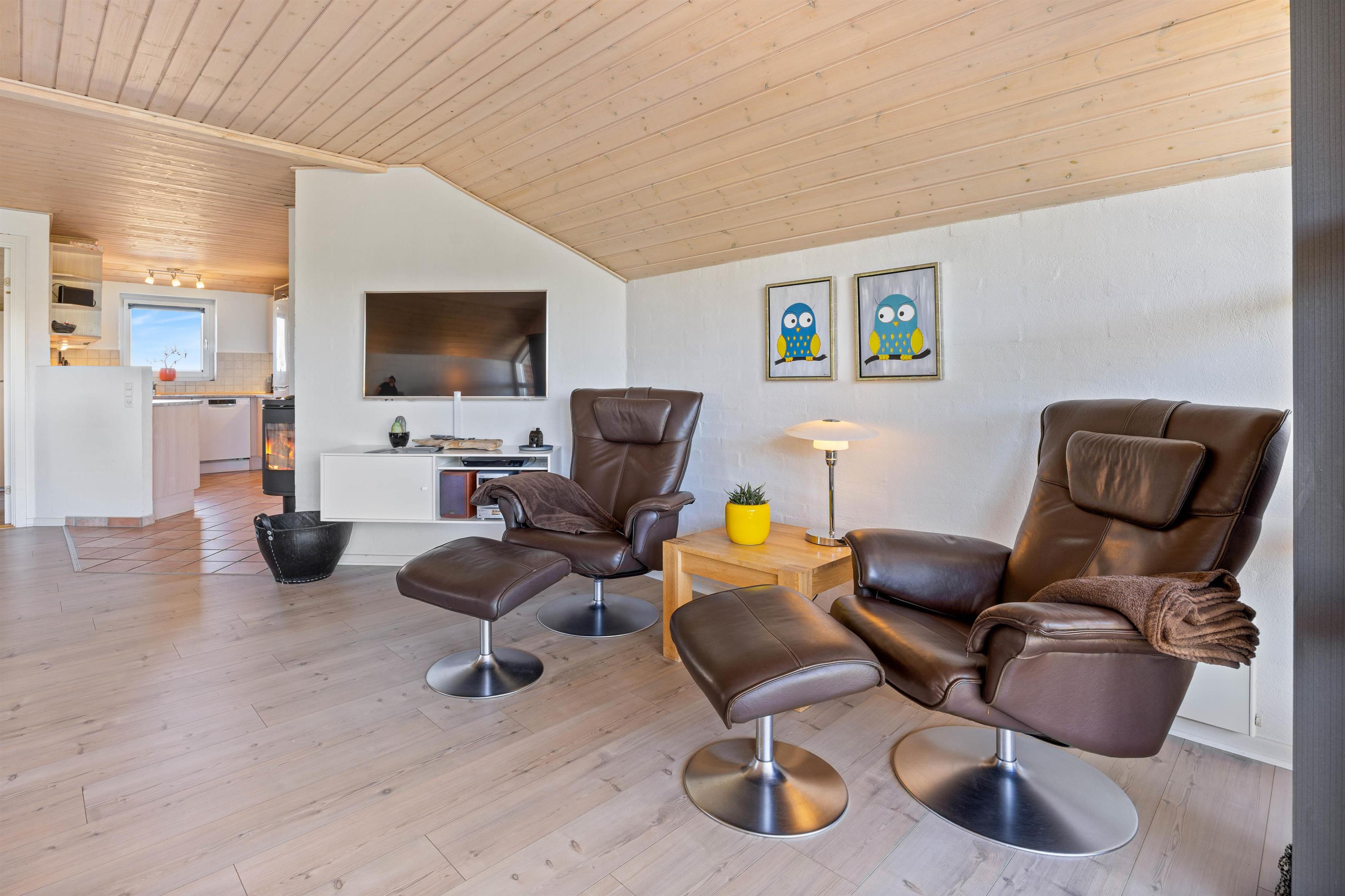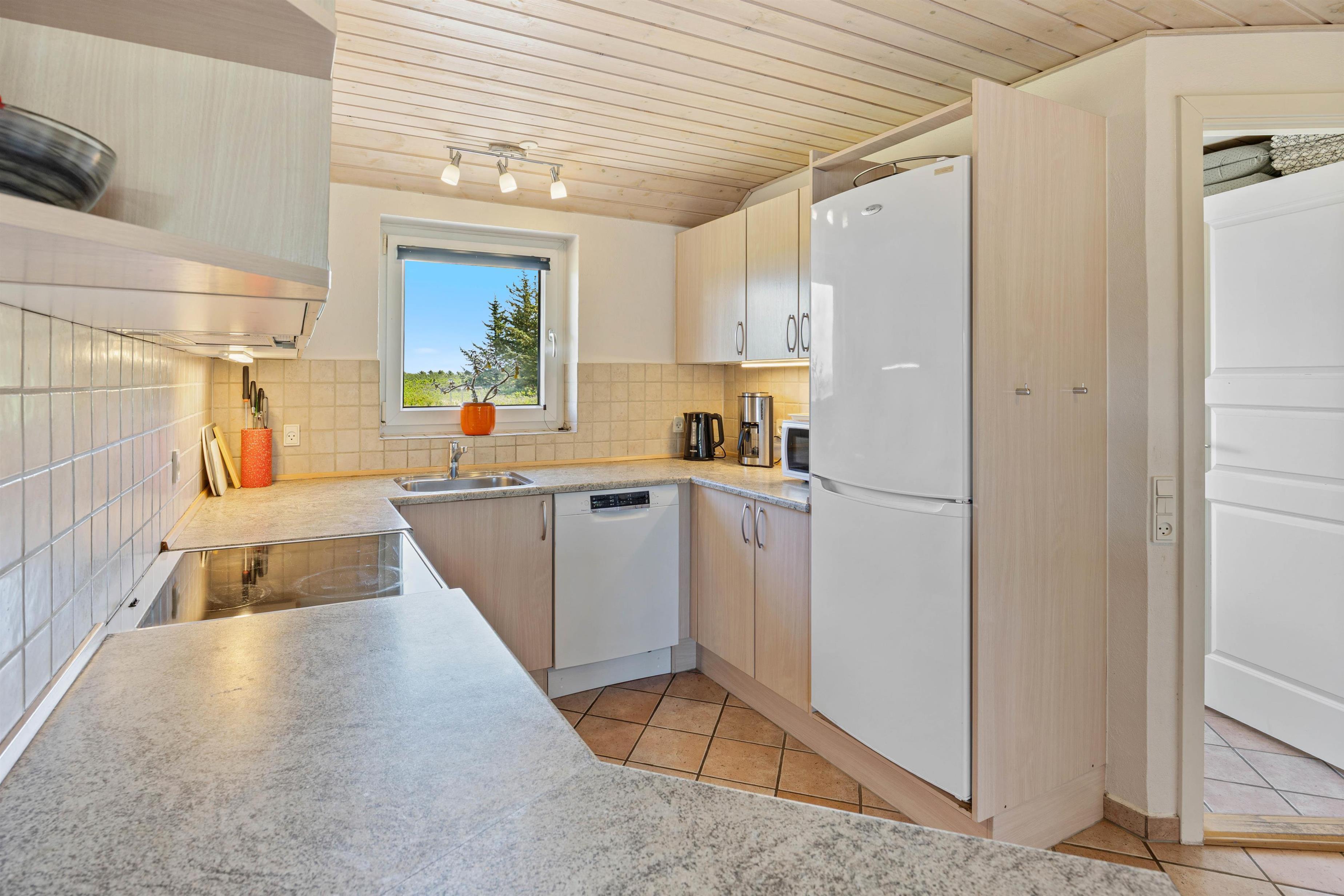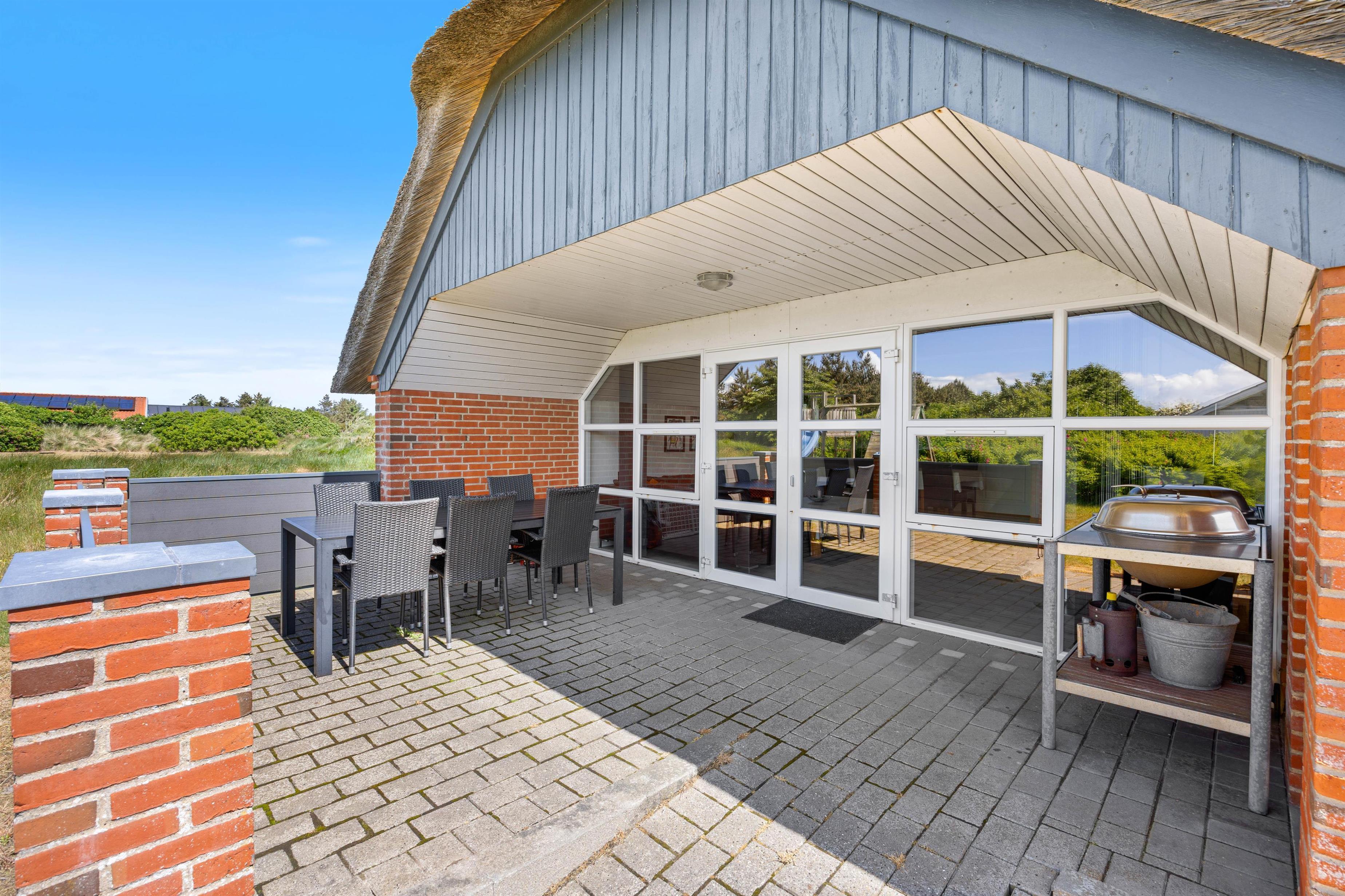 Mod øst er der en hyggelige terrasse, hvor du lige kan skimte Ringkøbing Fjord – perfekt, når du gerne vil nyde morgenkaffen i det fri. Mod vest er der en god terrasse, som også er delvis overdækket og dermed helt ideel til de hyggelige grillaftener.
