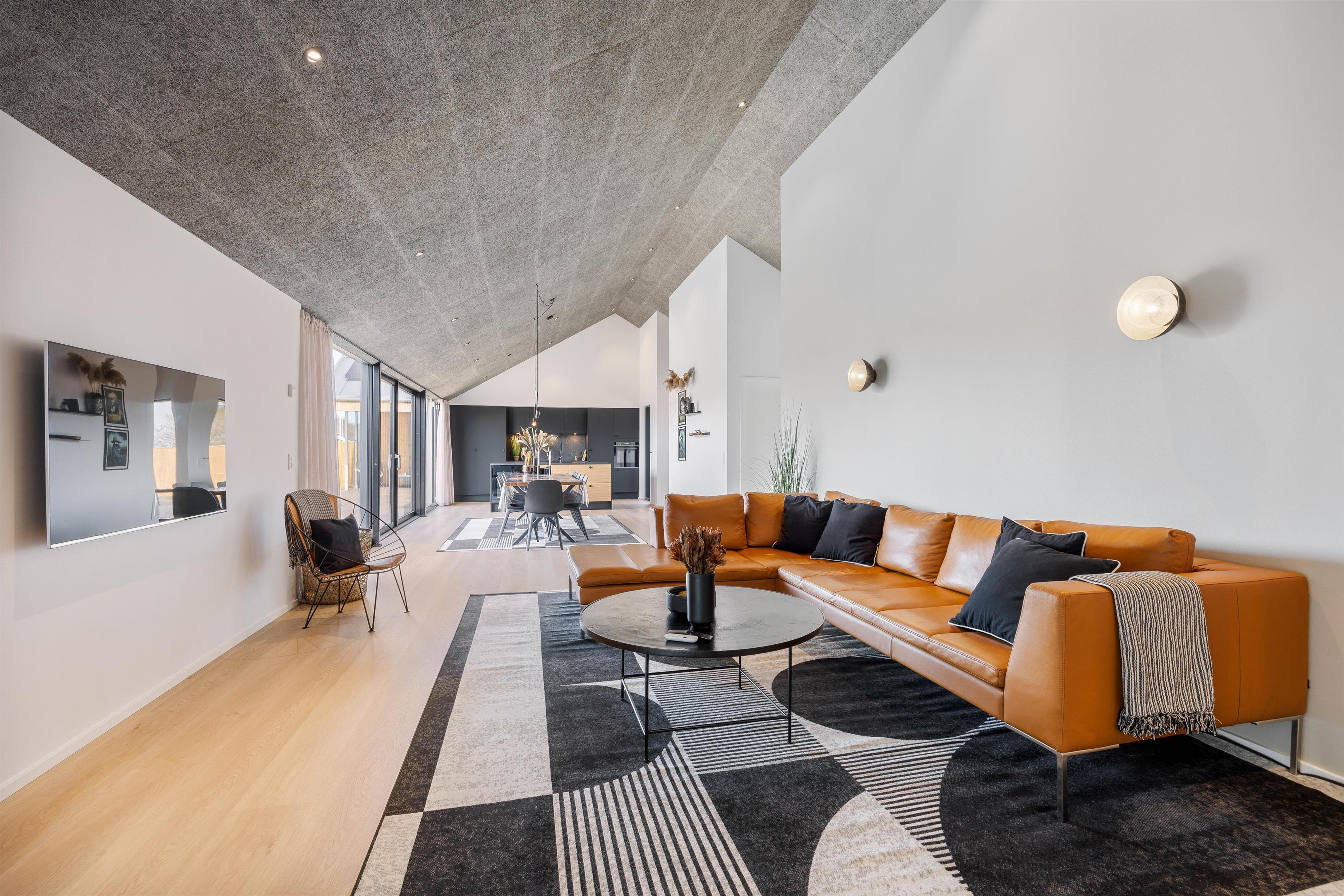 Det naturlige samlingssted er klart opholdsrummet, der er åbent i forbindelse med det veludstyrede, flotte og indbydende køkken. Her kan I mødes om madlavningen, hvor andre kan samles om en god film, imens varmen og de knitrende lyde fra pejsen nydes i baggrunden. Via chromecast kan I streame jeres yndlingsfilm eller -serie.