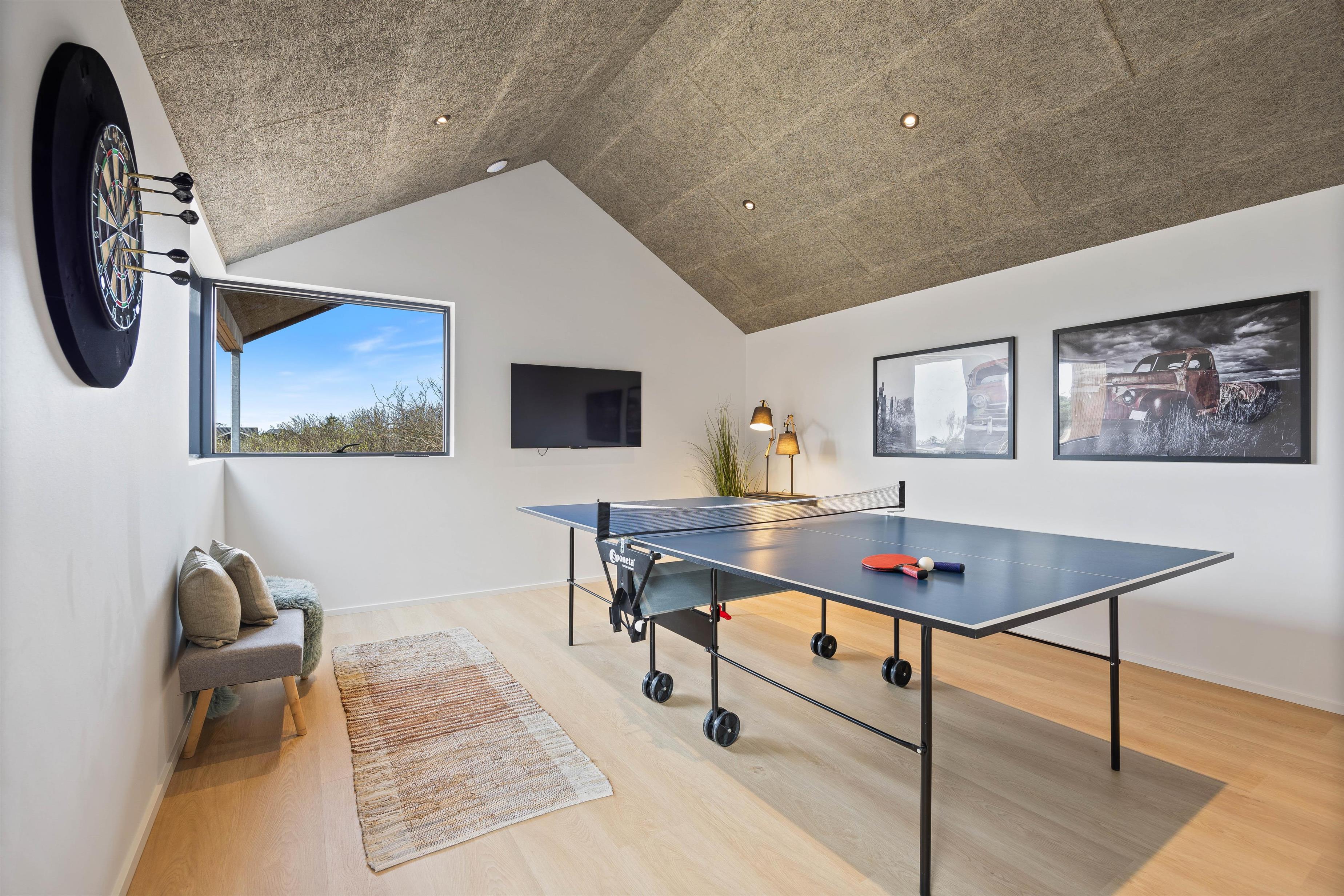 Aktiviteter er der nok af i feriehuset på Hvidbjergvej 15. Her kan både børn og barnlige sjæle få brændt krudt af i den lækre swimmingpool, der desuden er udstyret med en svømmetræner. Yderligere er der også et lækkert aktivitetsrum med både bordtennisbord og dartskive.