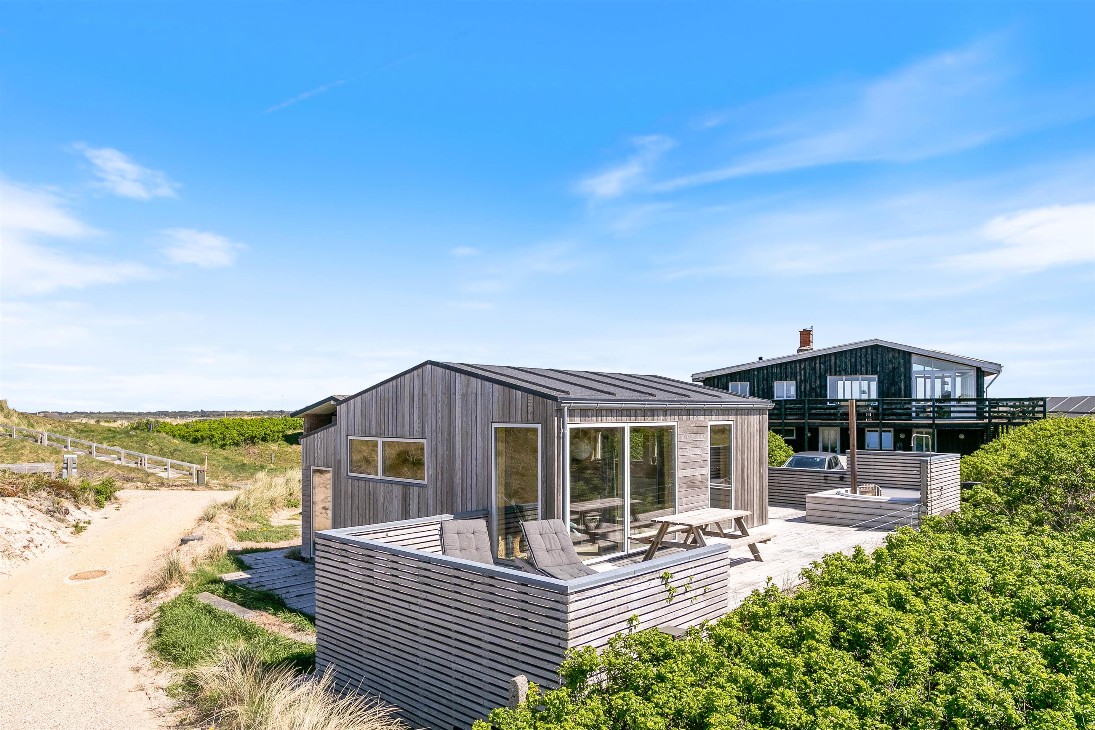Kun et stenkast fra den hvide sandstrand og få minutters gang fra Søndervigs hyggelige bymidte ligger dette moderne feriehus til 5 personer. Huset er opført i 2018 og er rigtig velindrettet med stilfuldt interiør og gode faciliteter som sauna, vildmarksbad, opvaskemaskine og vaskemaskine. På den afskærmede terrasse kan I nyde de dejlige solskinsdage i fulde drag.