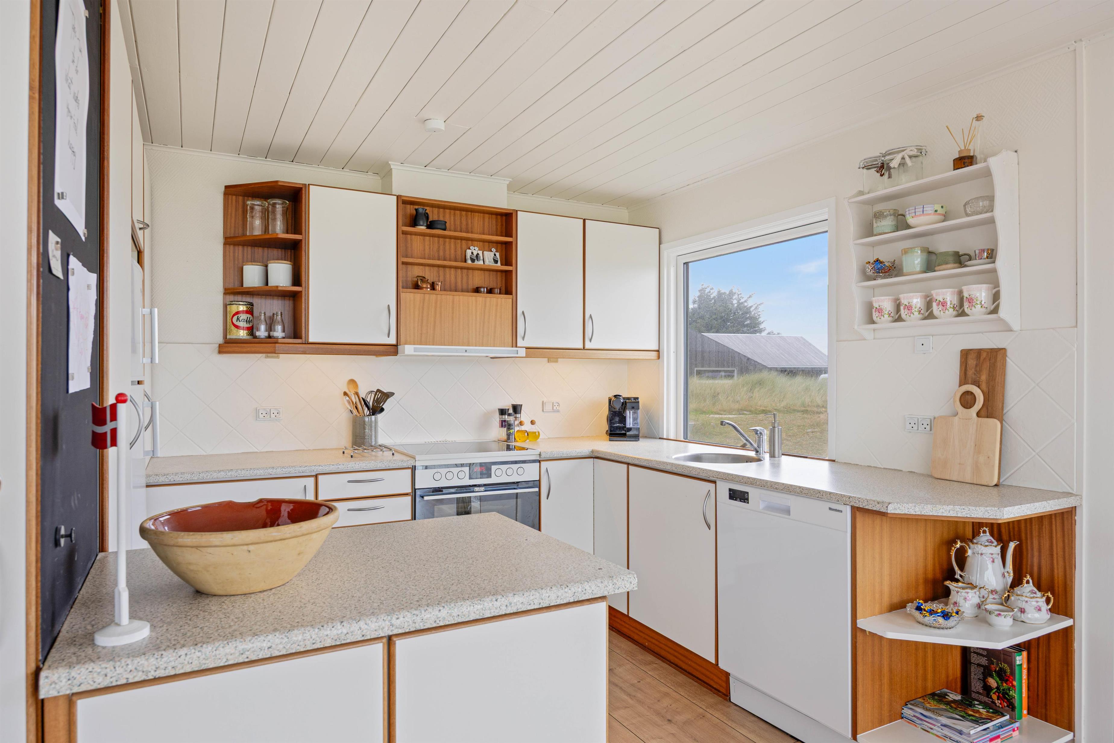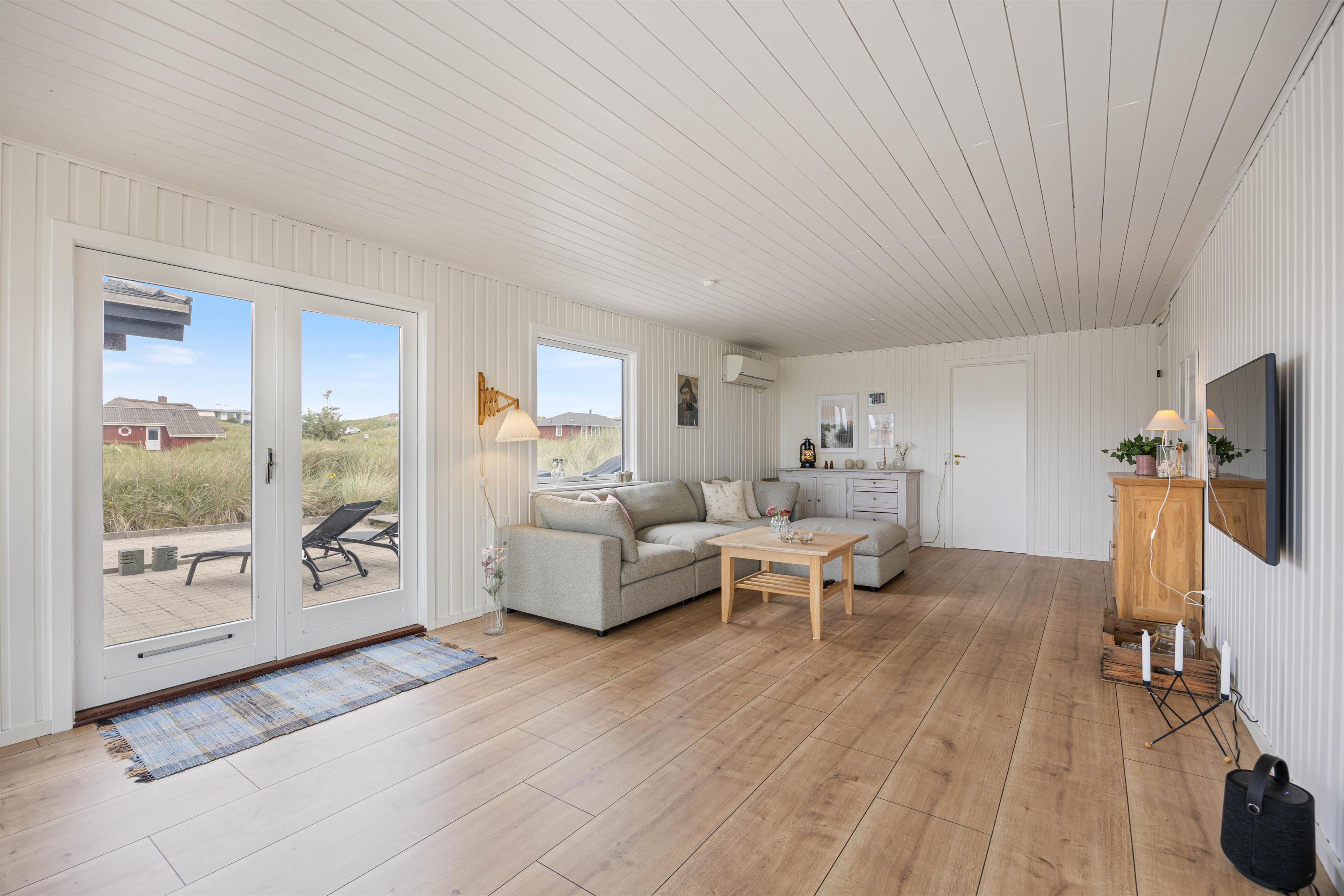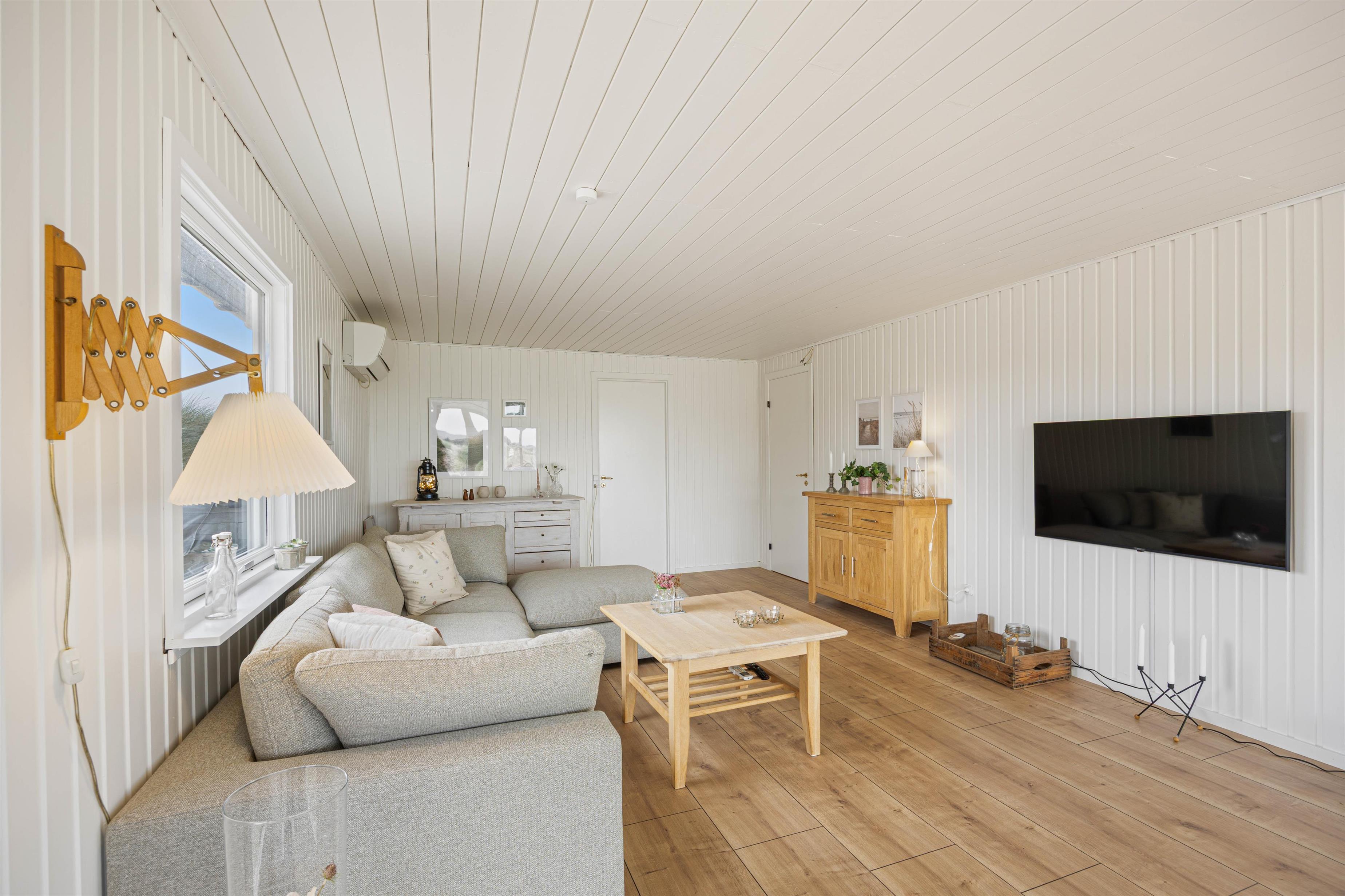 Den indbydende stue er, hvor I finder brændeovnen, hvilket gør det til et ideelt sted at slappe af efter en lang dag på stranden. Takket være den integrerede varmepumpe kan I også på køligere dage sørge for en behagelig varme i opholdsstuen – og samtidig skåne jeres pengepung. Her kan I gøre det hyggeligt, mens vinden blæser udenfor.