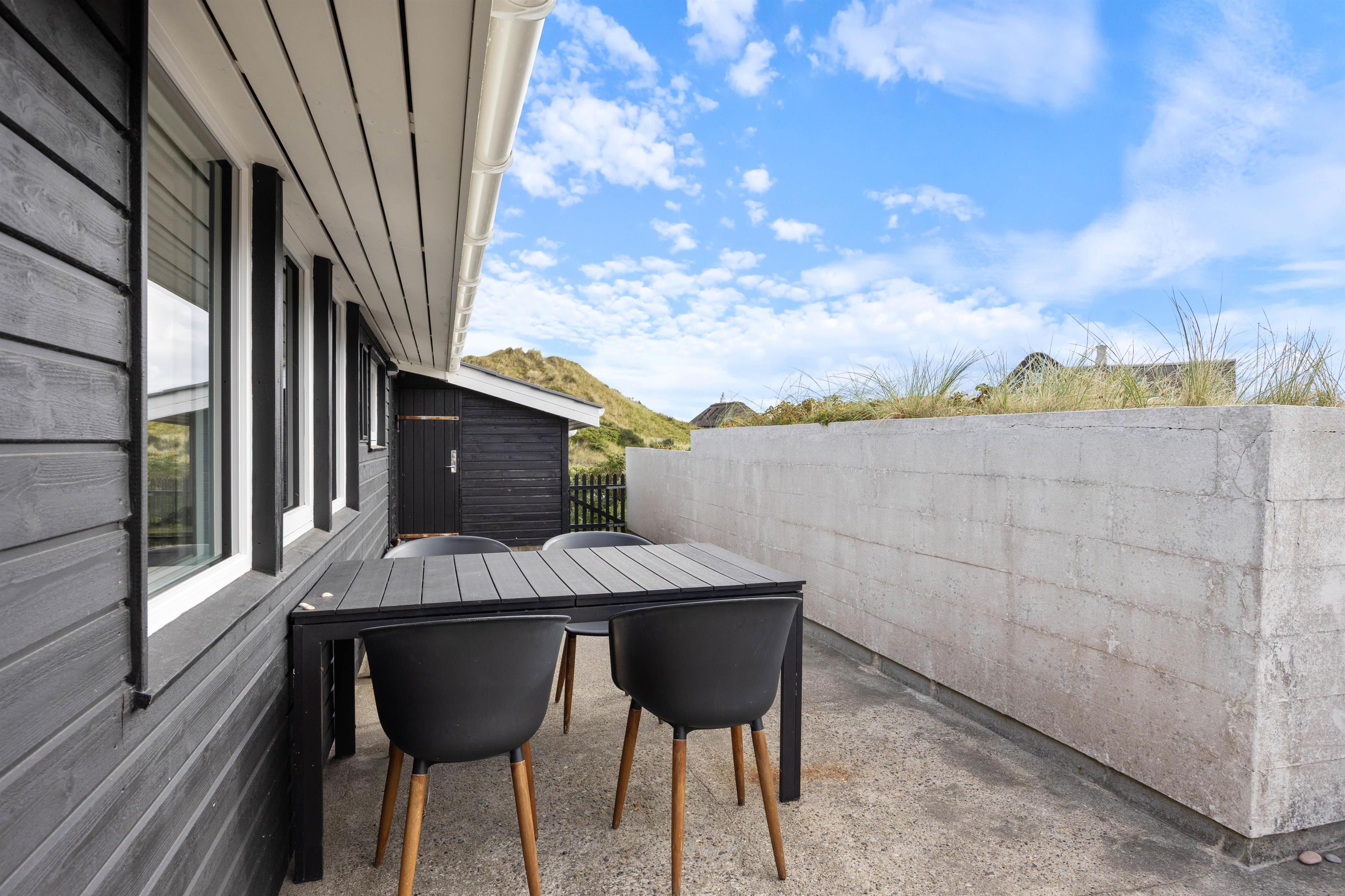 Huset ligger på en fin naturgrund med svejende marehalm og blot 250 meter fra det brusende Vesterhav. Om sommeren kan solen nydes fra den dejlige, lukkede terrasse, som er helt perfekt, hvis hunden er med på ferie. På terrassen finder I naturligvis havemøbler, liggestole og grill. Haven indbyder samtidig også til masser af leg og sjov for både børn og hund. Den indhegnede grund gør det trygt at lade jeres firbenede ven udforske området, og der er både gynge og sandkasse til de mindste.