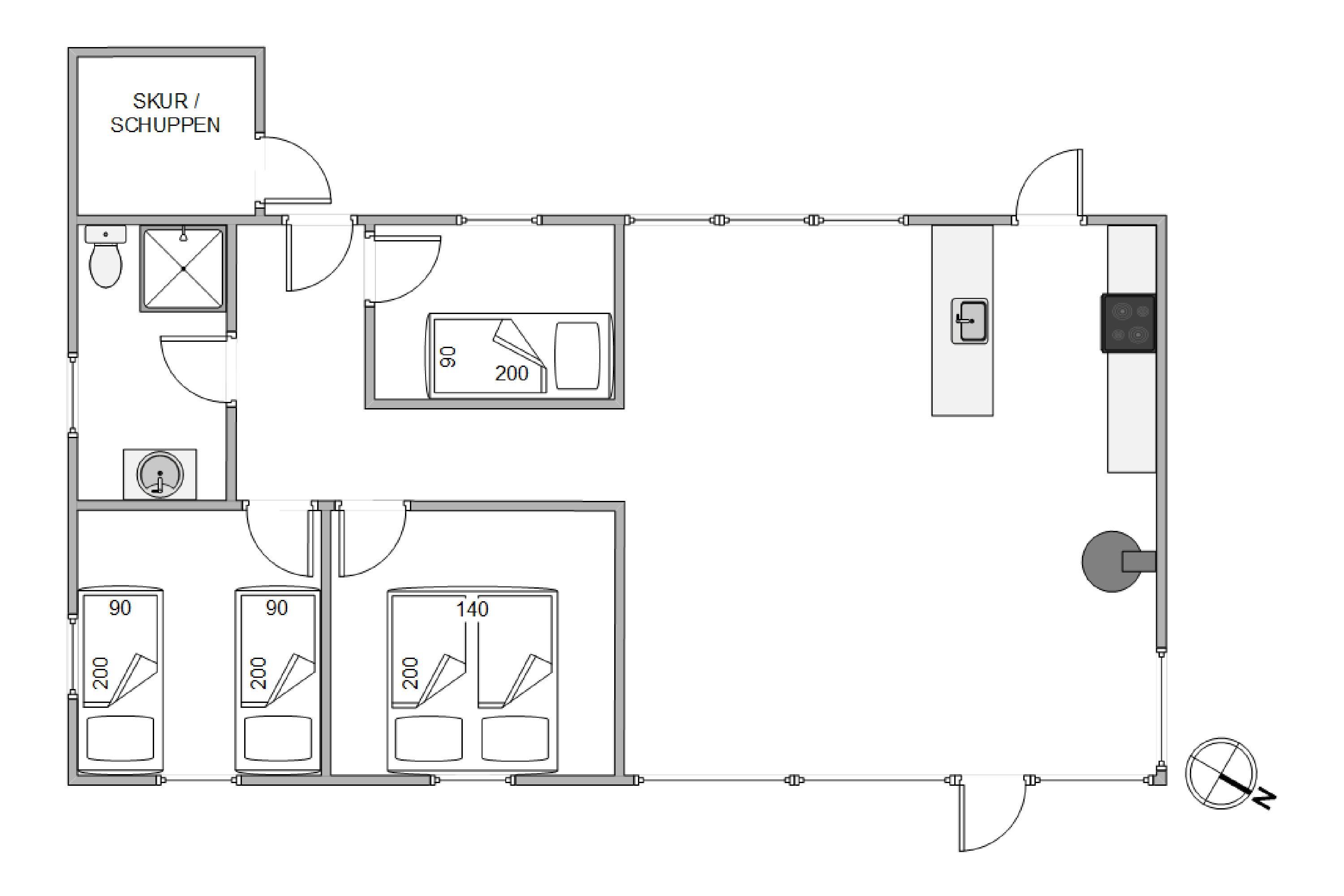 Her er plads til at I kan holde ferie sammen op til 5 personer, og I kan fordele jer i feriehusets 3 soveværelser. Det ene soveværelse er indrettet med en dobbeltseng, et soveværelse er indrettet med to dobbeltsenge og det sidste soveværelse er indrettet med en enkeltseng.