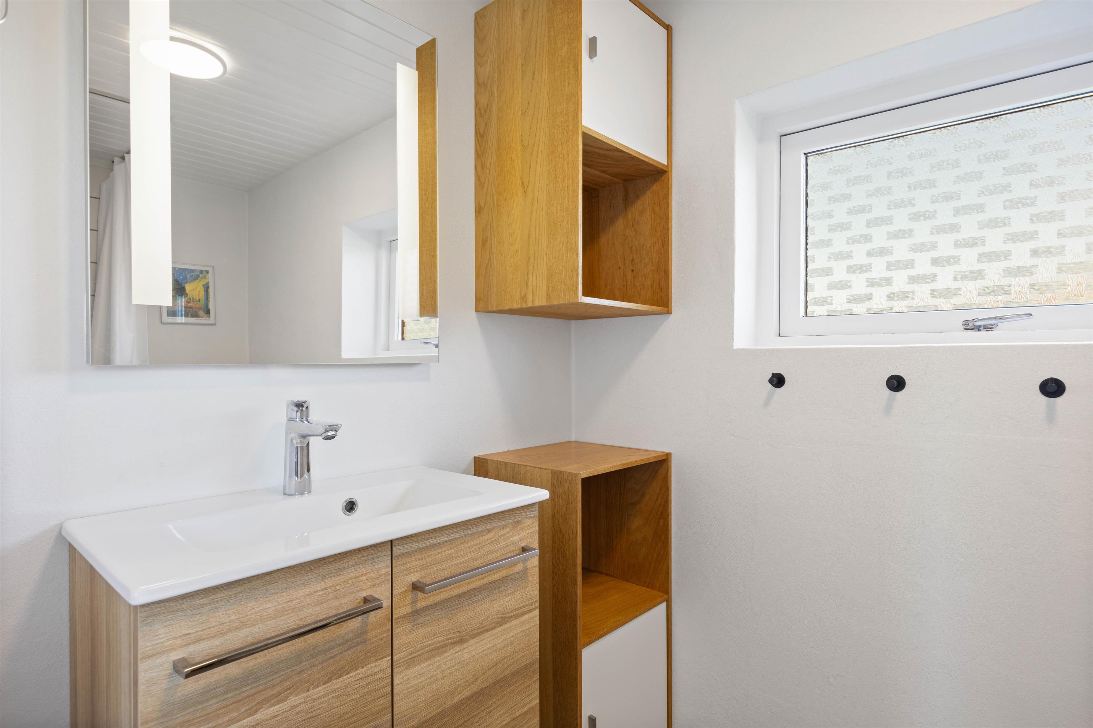 Vægge og lofter i stuen er malet helt hvide, og det giver en god lethed i indretningen, der ellers er personligt indrettet med bløde møbler. Uanset hvornår på sæsonen, du besøger huset, er her plads til afslapning og hygge for hele familien. Fra huset er der både havglimt og fjordglimt. I feriehuset finder I også en energibesparende luft-til-luft varmepumpe, som bidrager til et behageligt indeklima hele året rundt, samt gulvvarme på badeværelset der gør morgenerne ekstra behagelige. Husets brændeovnen bidrager også til den hyggelige stemning på de køligere aftener eller morgener.