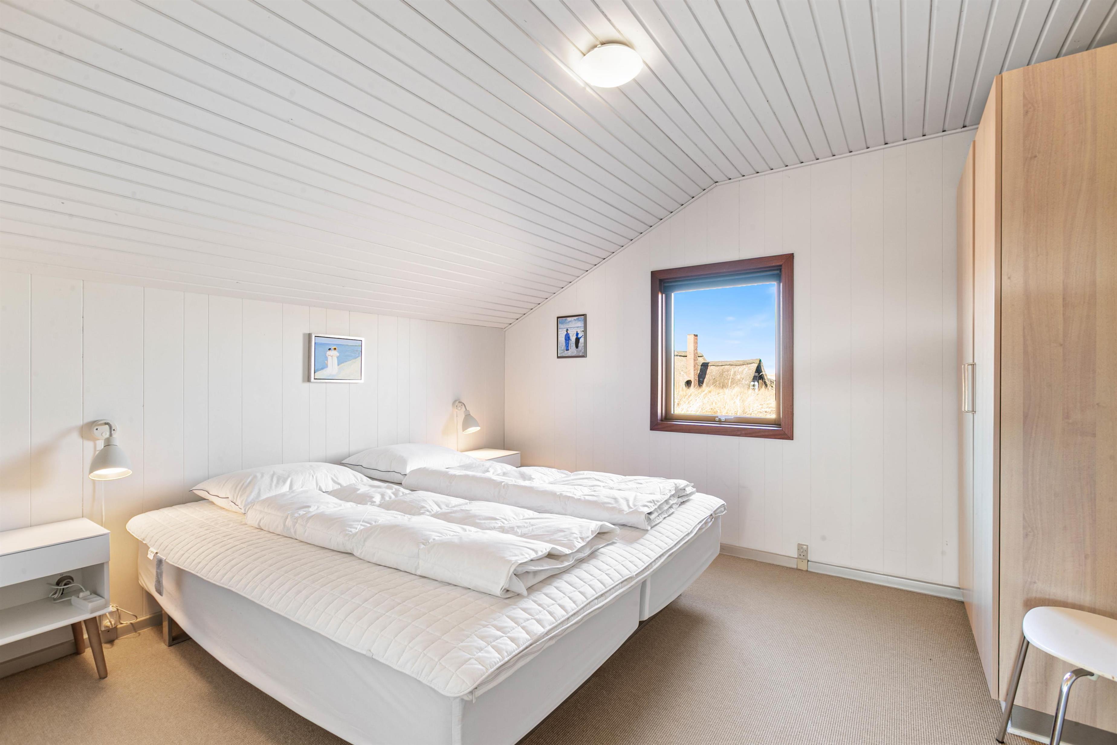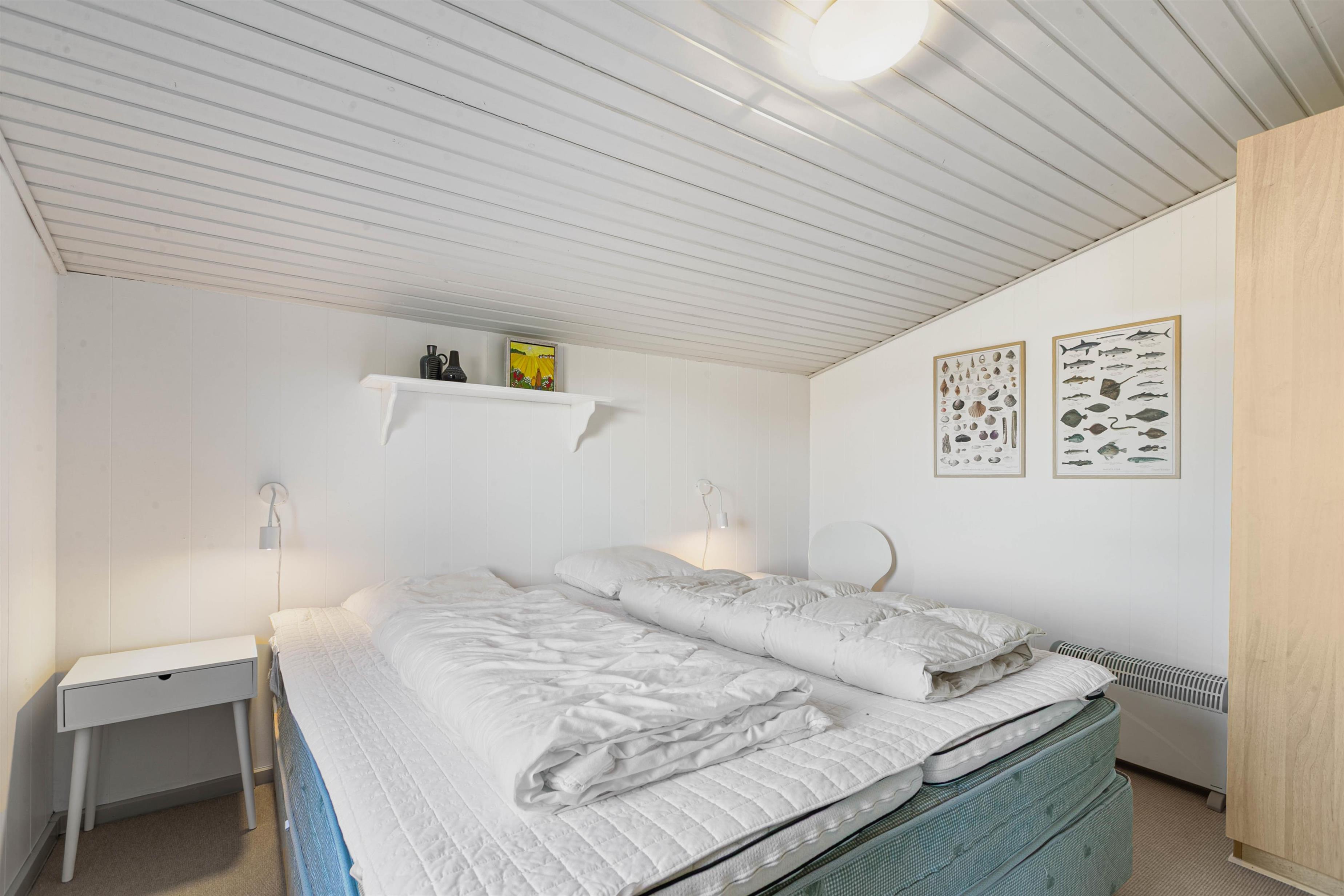 Sommerhuset rummer tre lyse og hyggelige soverum, hvilket giver god plads til op til seks personer. Der er installeret gulvvarme i badeværelset, så I kan nyde komforten af varme fliser under fødderne. En luft-til-luft varmepumpe sikrer, at huset er dejligt tempereret året rundt. Huset er også udstyret med en Chromecast, så I nemt kan streame jeres yndlingsunderholdning.