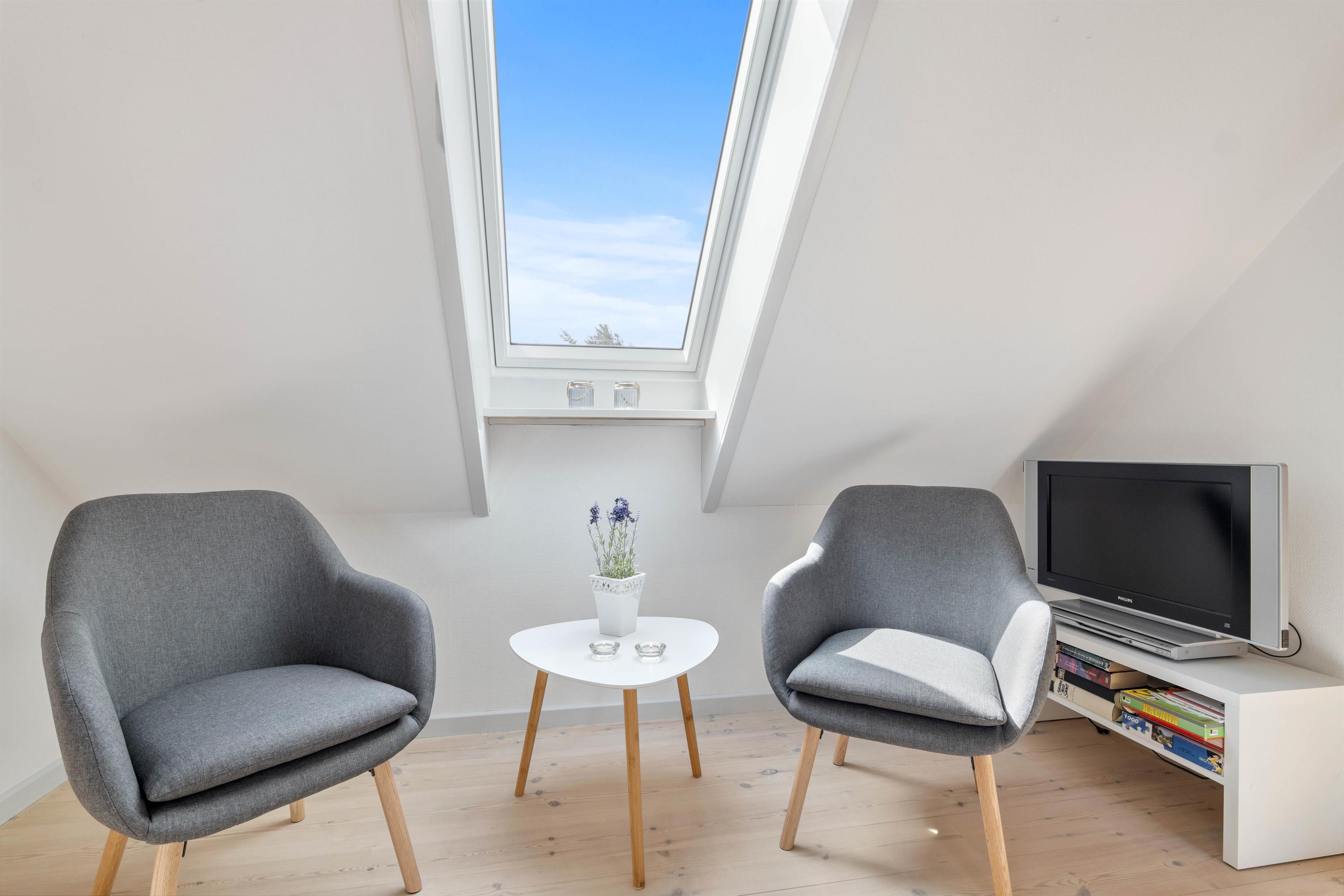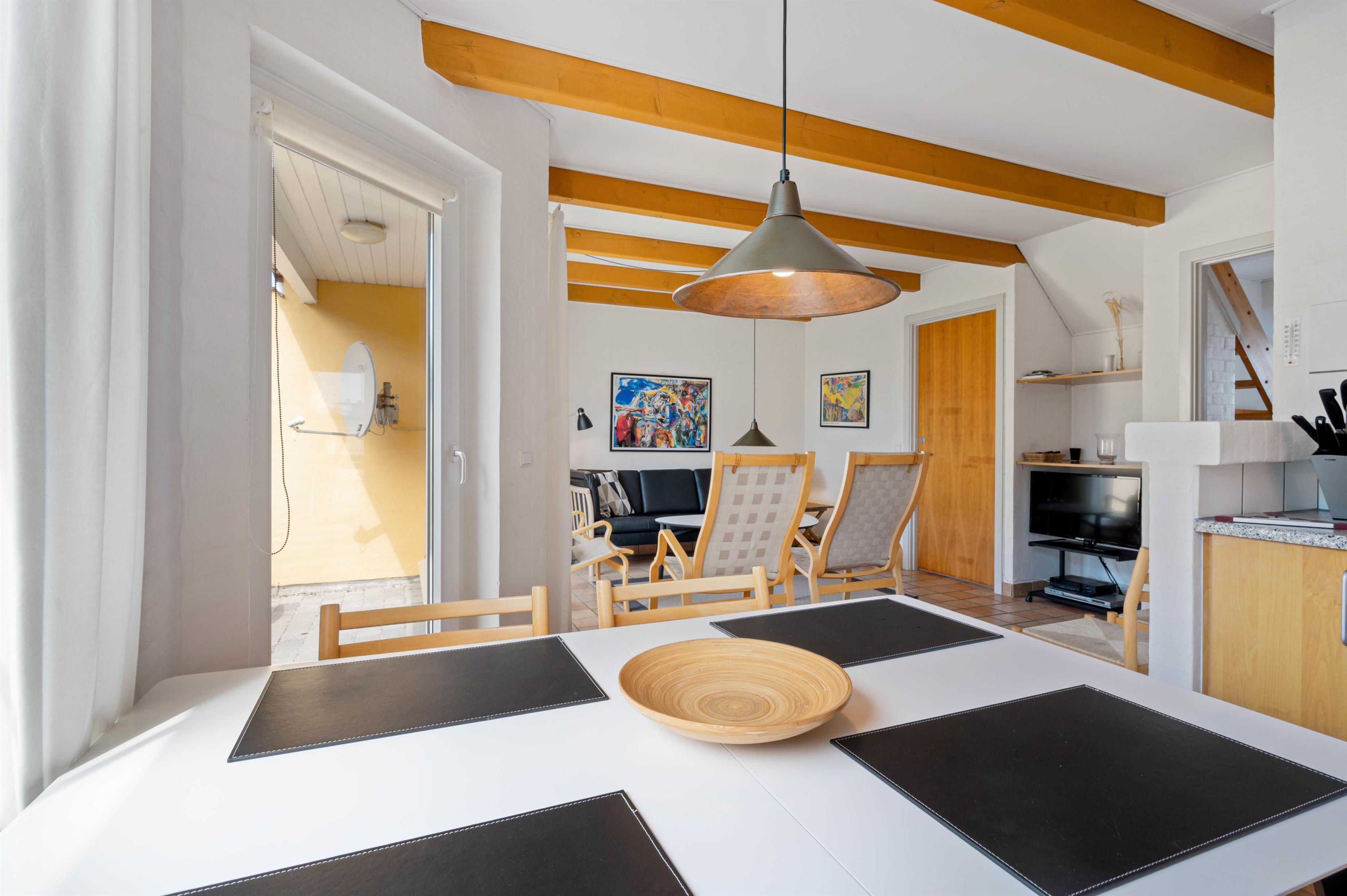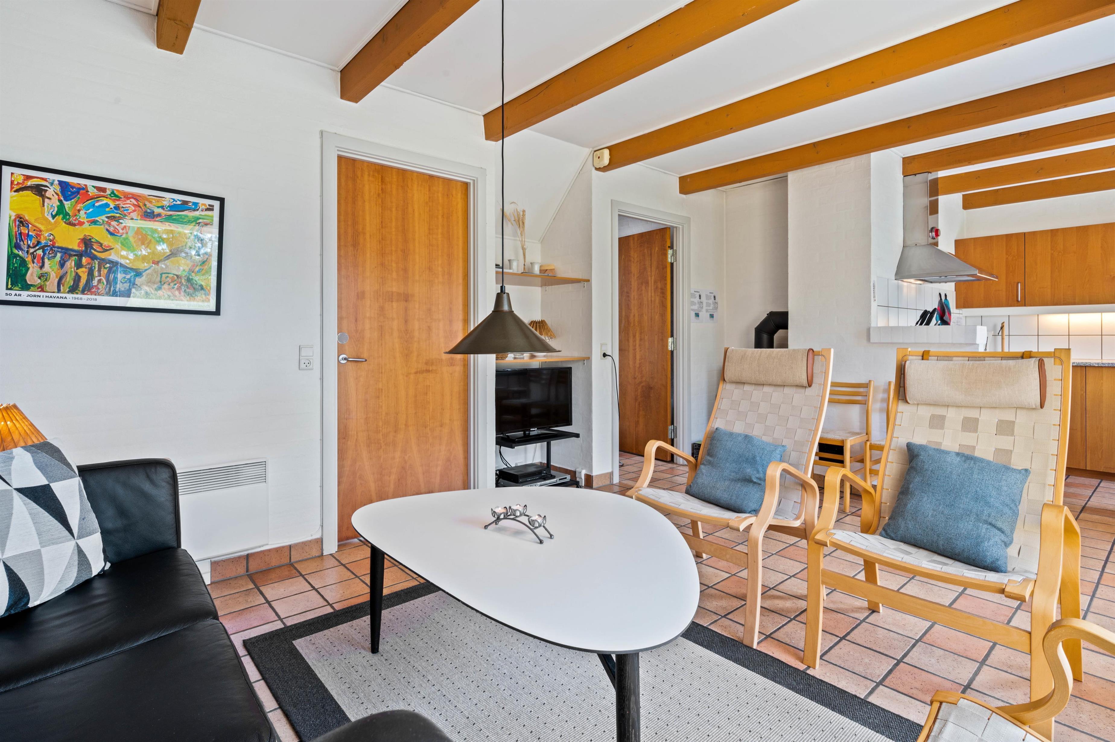 De lyse og hyggelige omgivelser vil straks byde jer velkommen, så snart I træder ind ad døren. De hvide vægge og lofter bidrager til lyse omgivelser, og sammen med brændeovnen, som er placeret i stuen, skabes der den helt rigtige feriestemning. Køkkenet står i åben forbindelse med stuen og udgør på den måde ét stort rum, hvor hele familien kan samles om aftenen til fælles madlavning eller et brætspil.