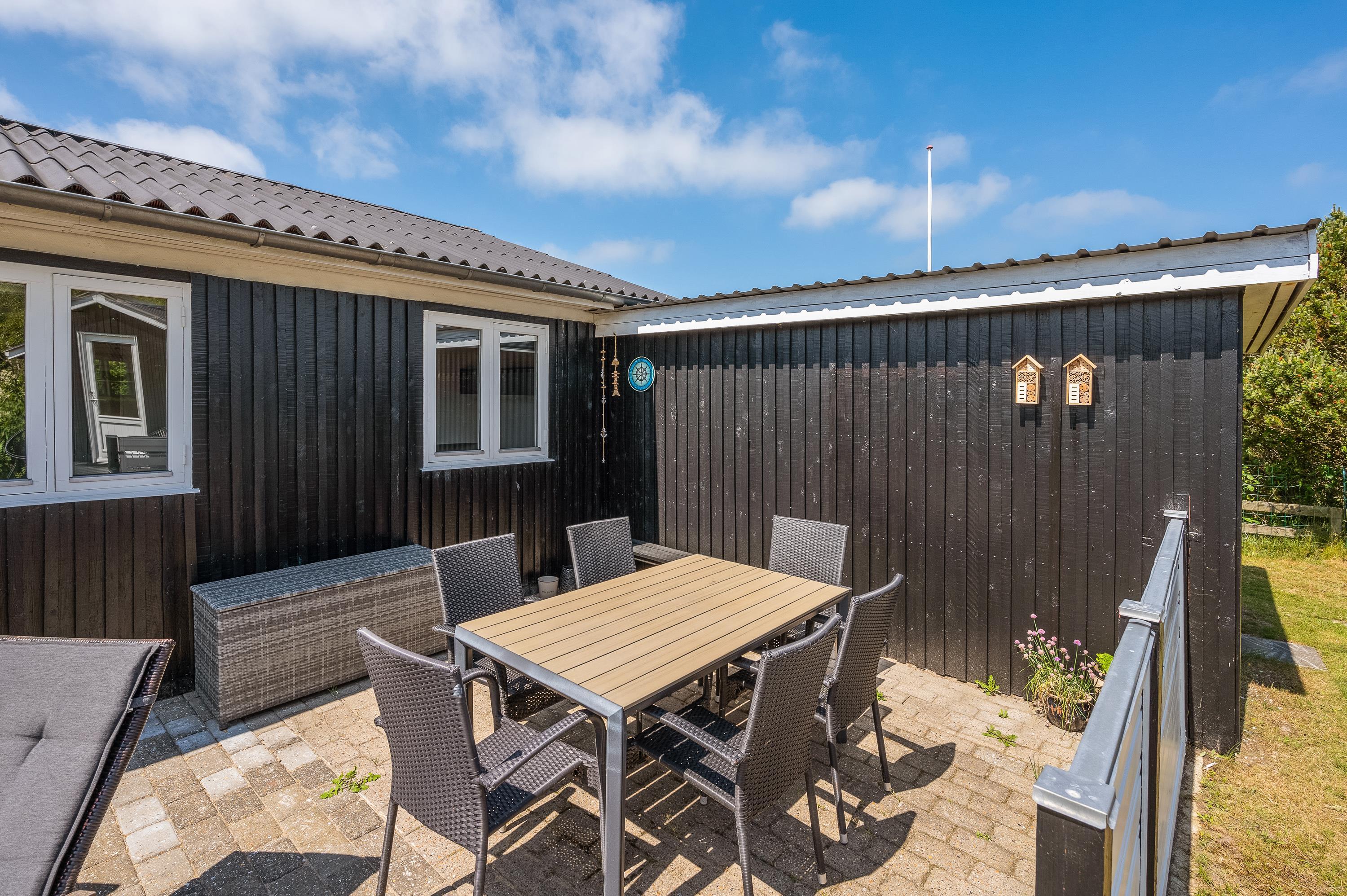 På østsiden af sommerhuset finder I en lille afskærmet terrasse, hvor I kan sætte jer med en god bog og lidt koldt at drikke og suge solens stråler til jer. Om aftenen kan I tænde op i grillen og tilberede en lækker middag på den lille terrasse mod vest i den lune aftensol.