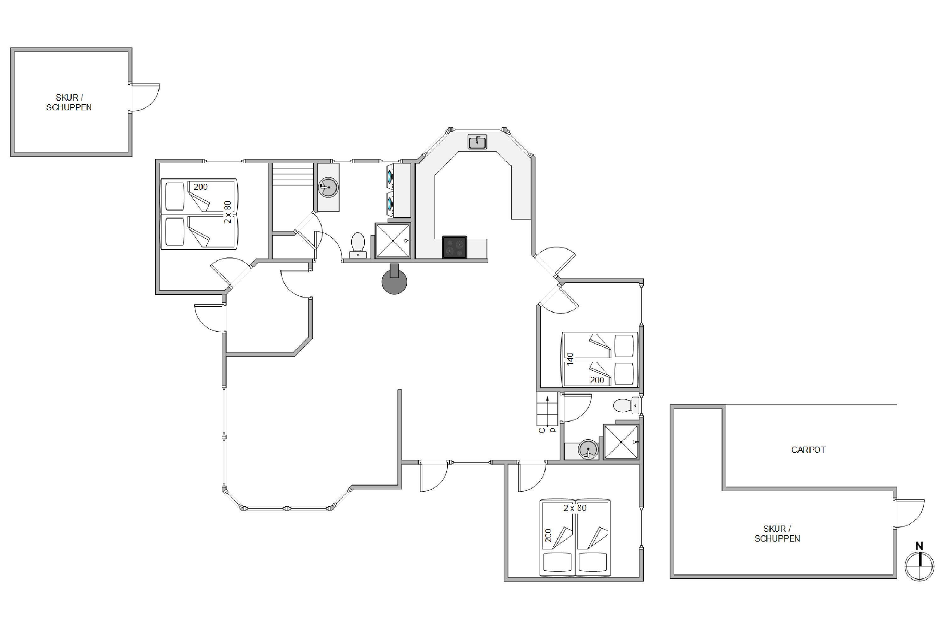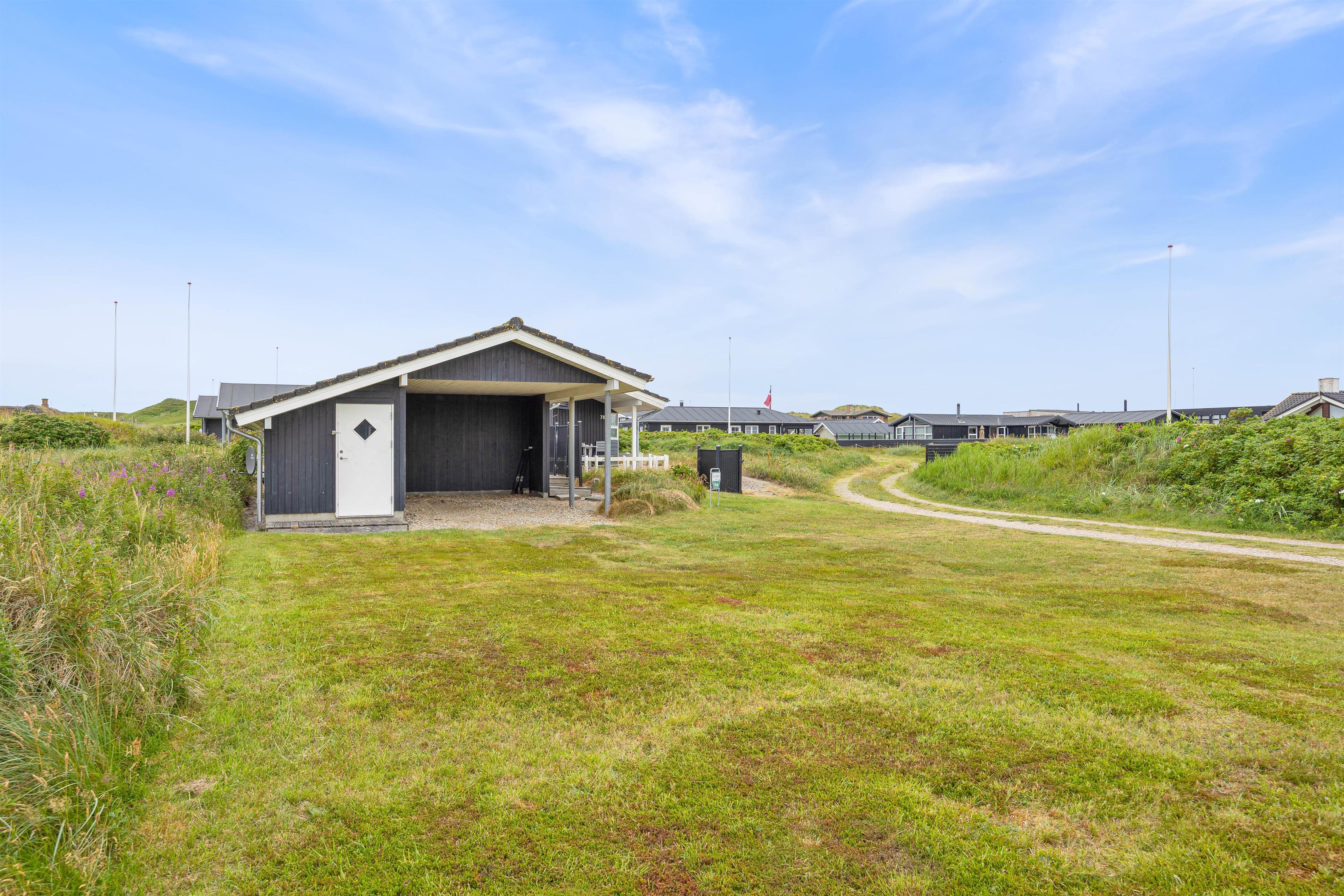 Endnu et plus ved sommerhuset er den fine carport, som I også kan benytte. Her kan jeres bil holde i læ og ly for vestkystens til tider barske vejr. Der er også et stort skur, hvor I eventuelt kan opbevare jeres egne medbragte cykler.