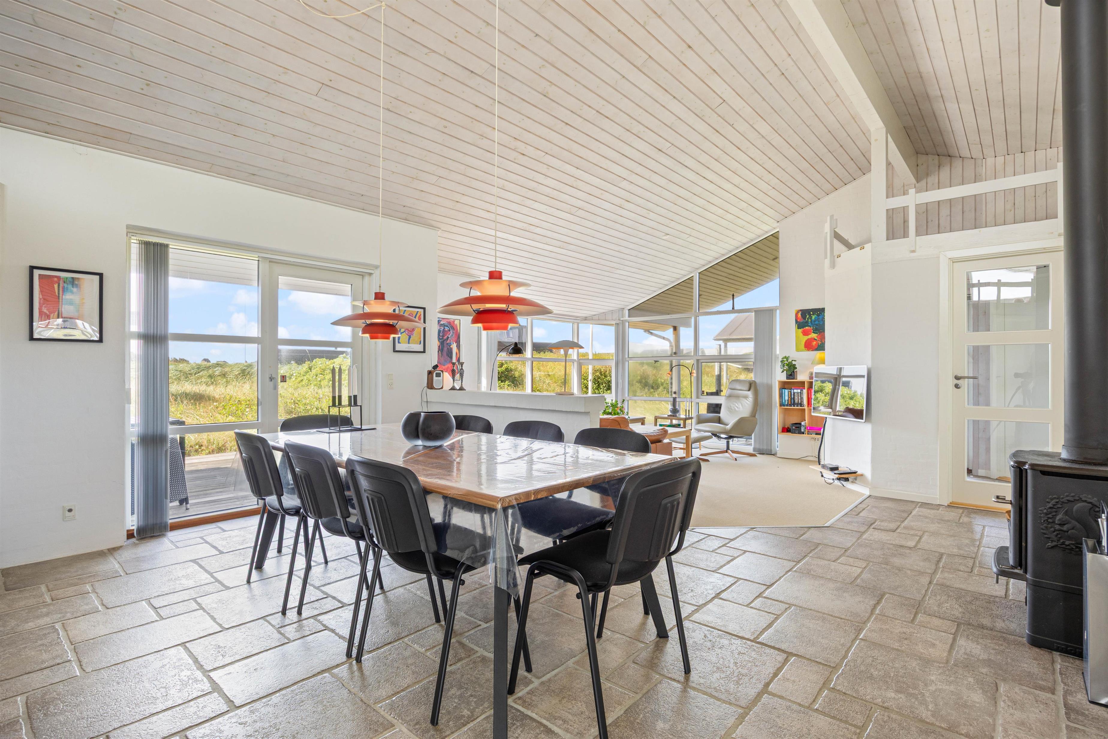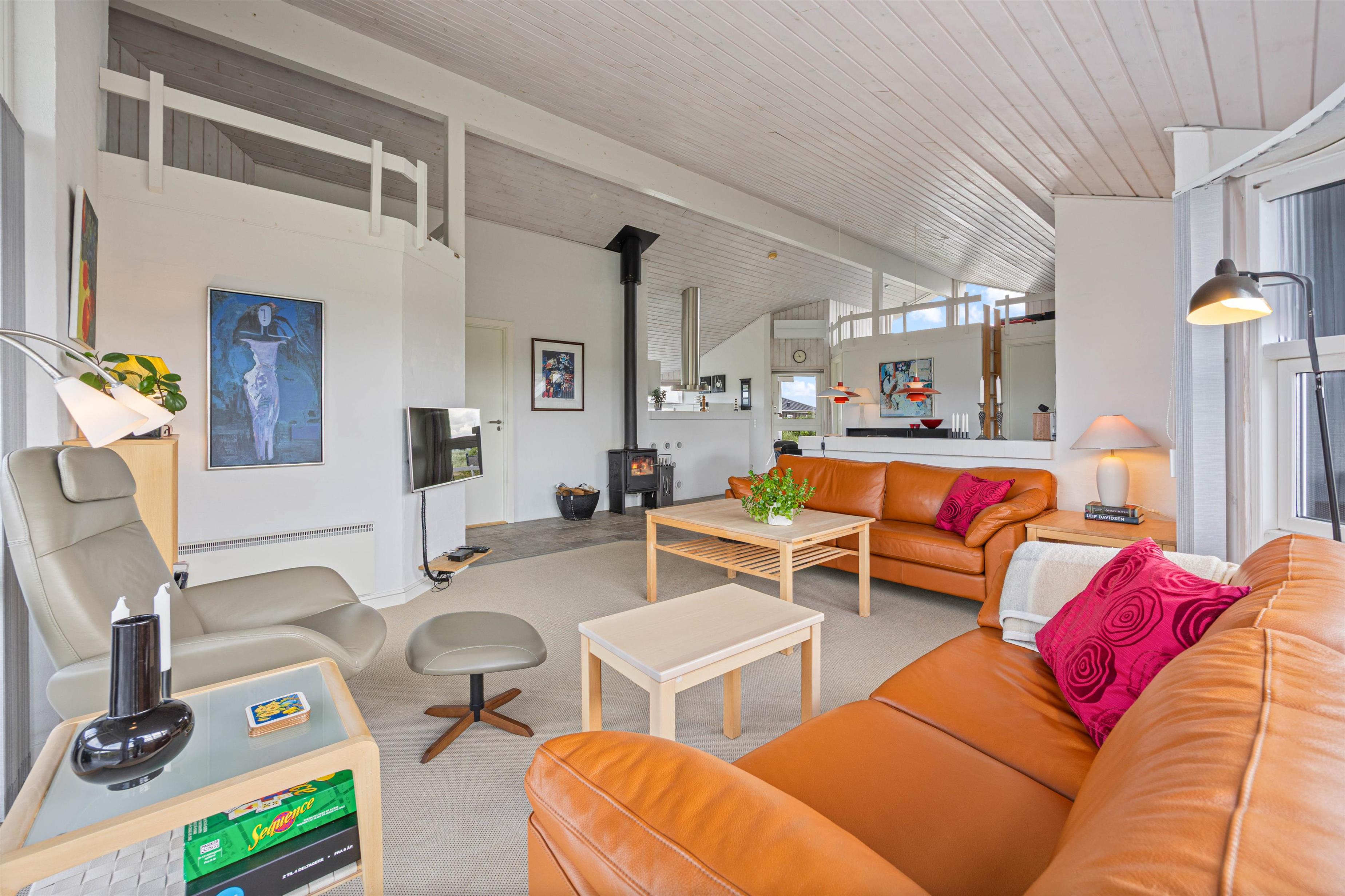 Sommerhuset giver jer gode muligheder for at holde en bekymringsfri og afslappende ferie. Her finder I et dejligt stort og åbent køkken-alrum, der indbyder til mange gode stunder med hele familien. Der er højt til loftet, og den skønne brændeovn kan med sit knitrende flammehav sørge for en hyggelig og varm atmosfære. Sofaafdelingen inviterer til en hyggelig filmaften, og fordi sommerhuset er udstyret med stabilt og hurtigt fibernet samt et fjernsyn med Chromecast, kan I uden problemer nyde netop jeres favoritunderholdning. I har også en varmepumpe til rådighed, som kan bidrage til et behageligt indeklima.