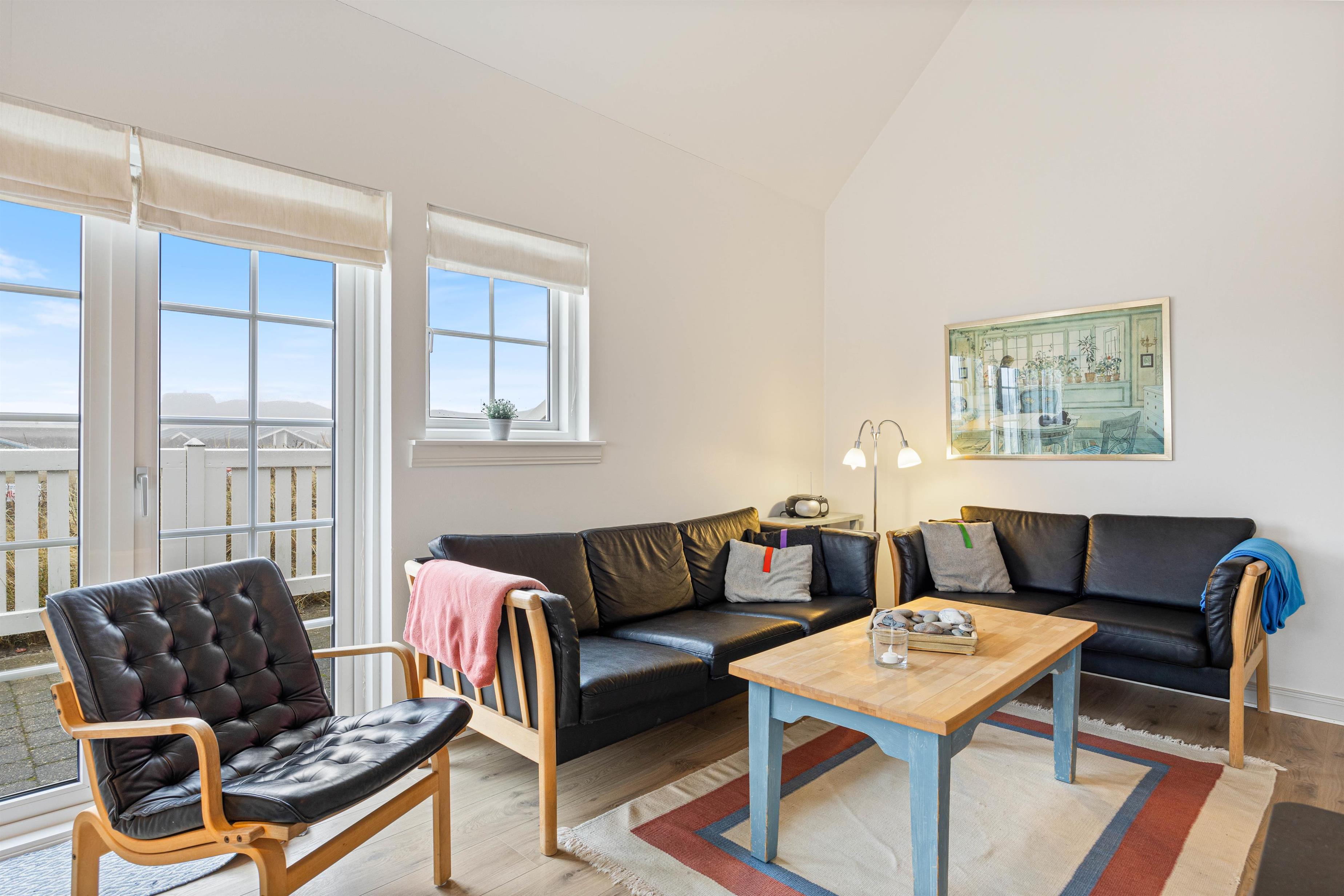 Der er også vaskemaskine og tørretumbler, så I slipper for at bekymre jer om beskidt tøj. Ferielejlighedens samlingspunkt er stuen, hvor der er plads til, at hele familien kan samles og hygge sig. For ekstra feriehygge kan det anbefales at tænde op for brændeovnen på de koldere feriedage. Er brændeovnen ikke i gang, har I mulighed for at benytte elvarme.