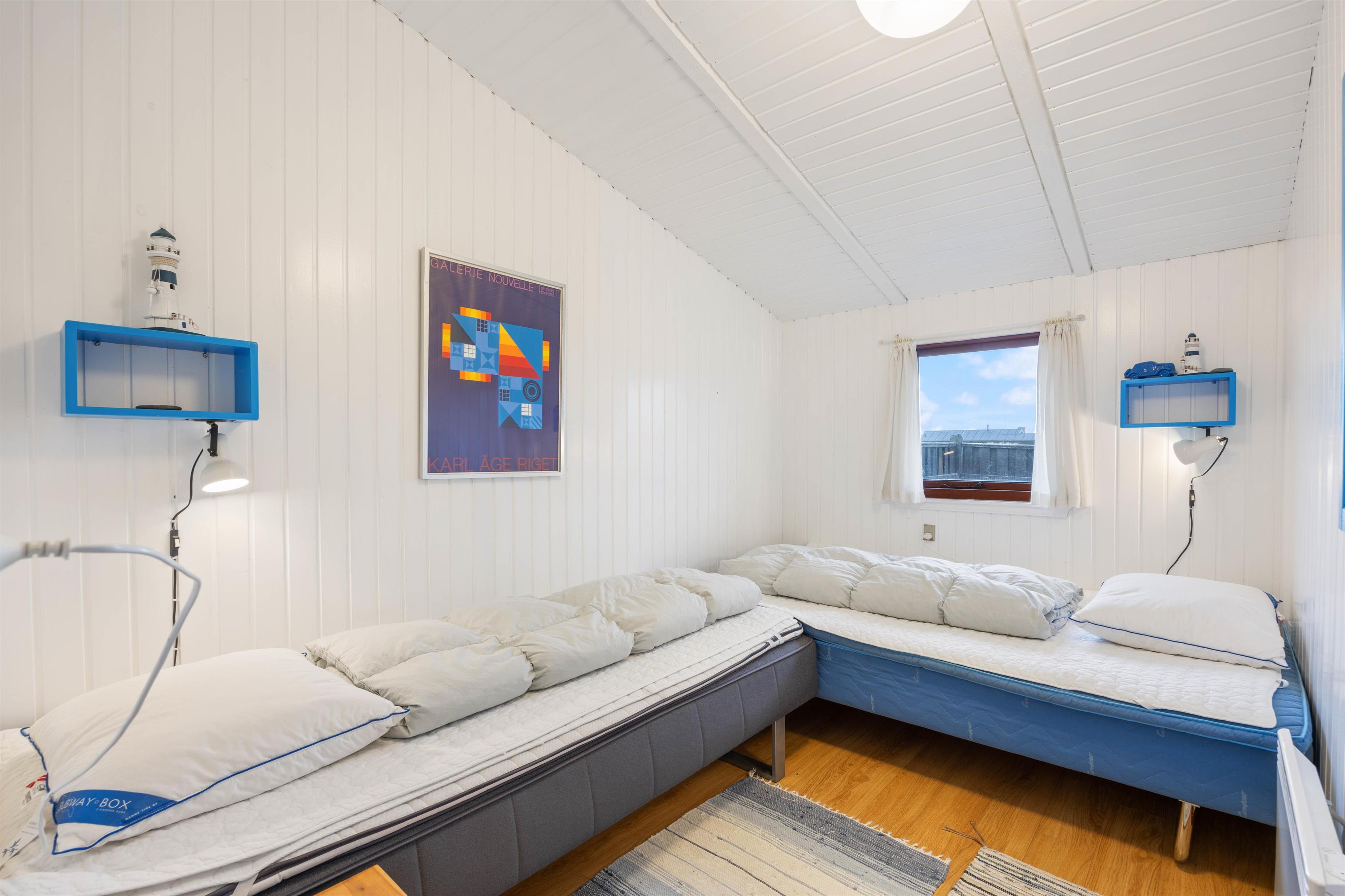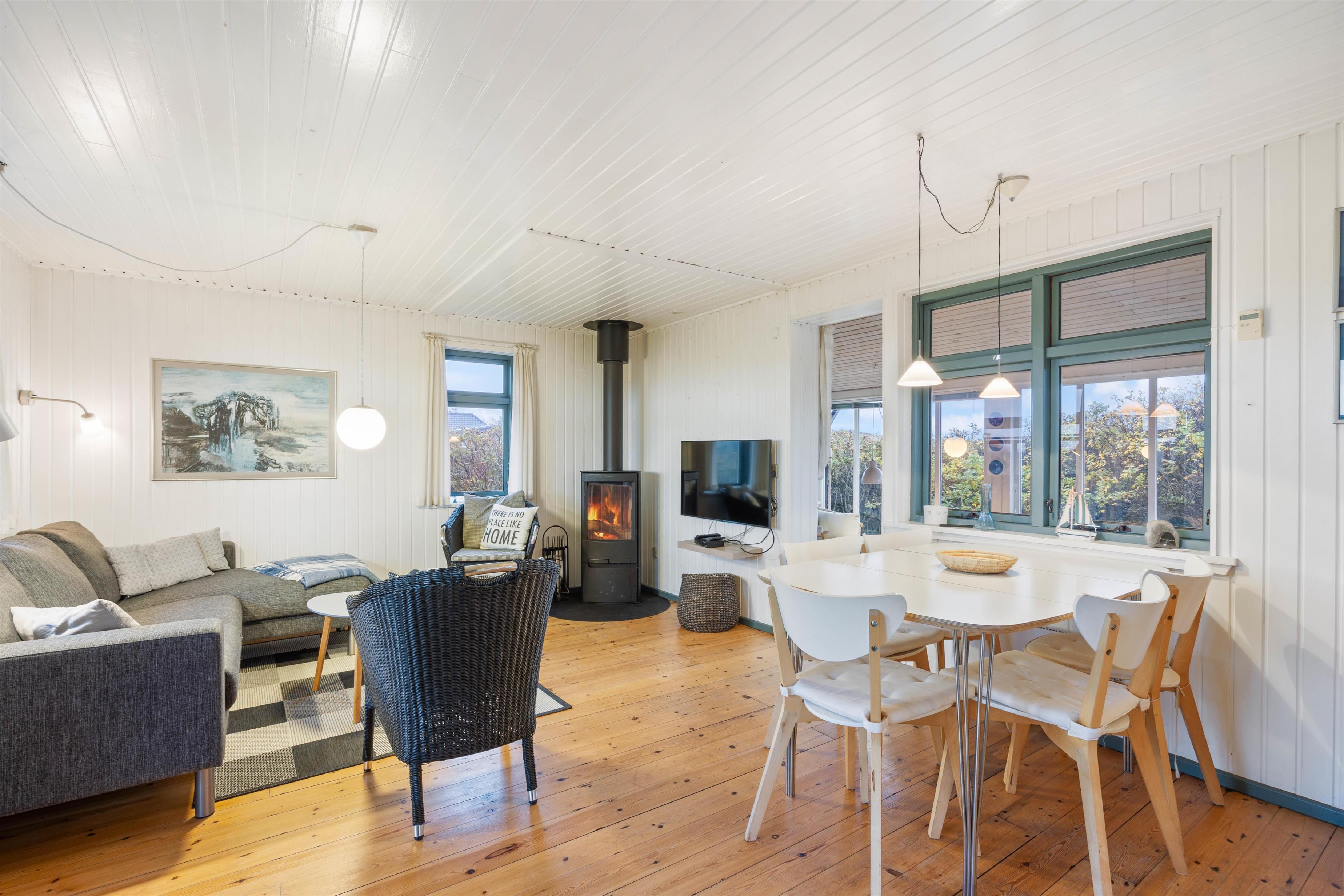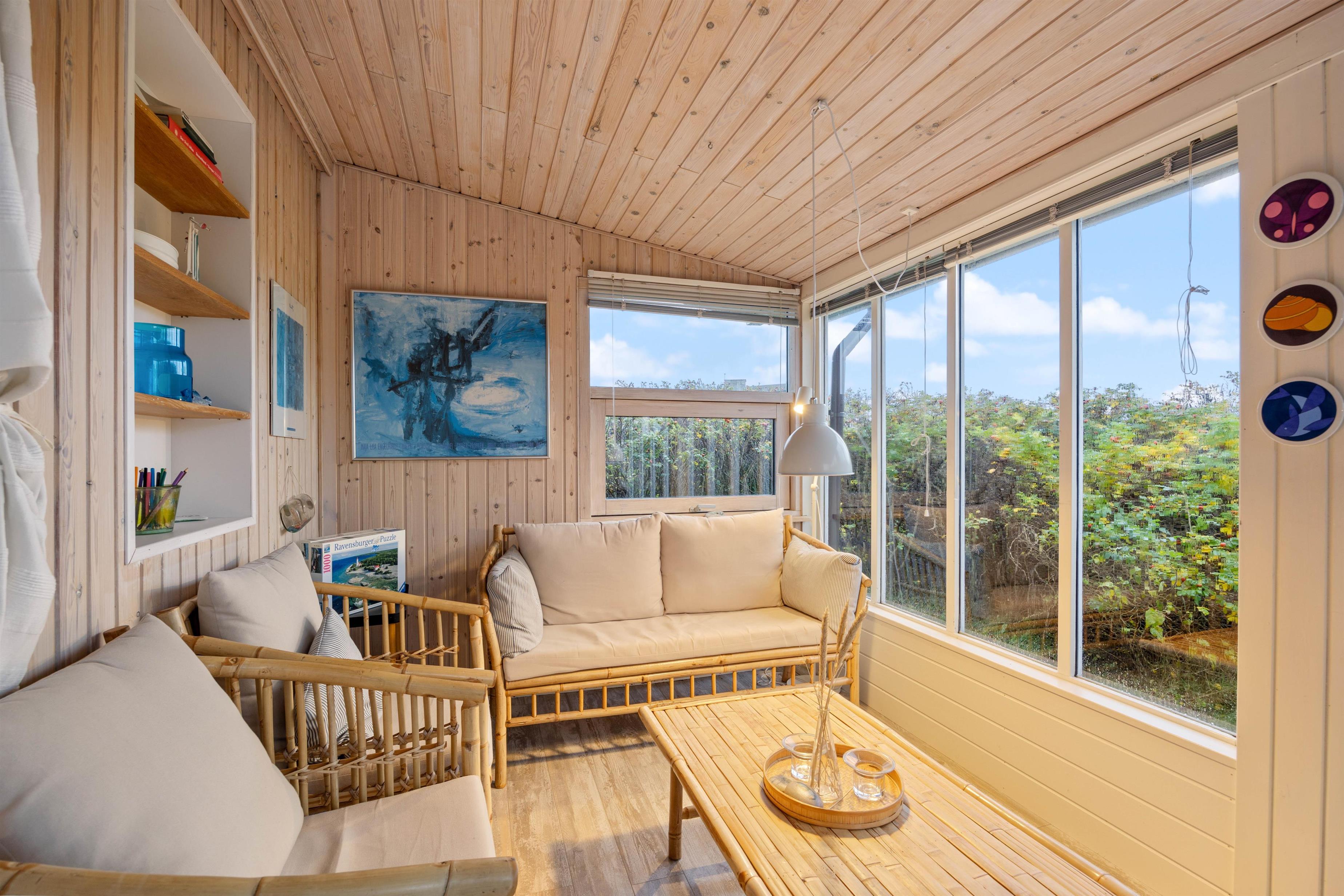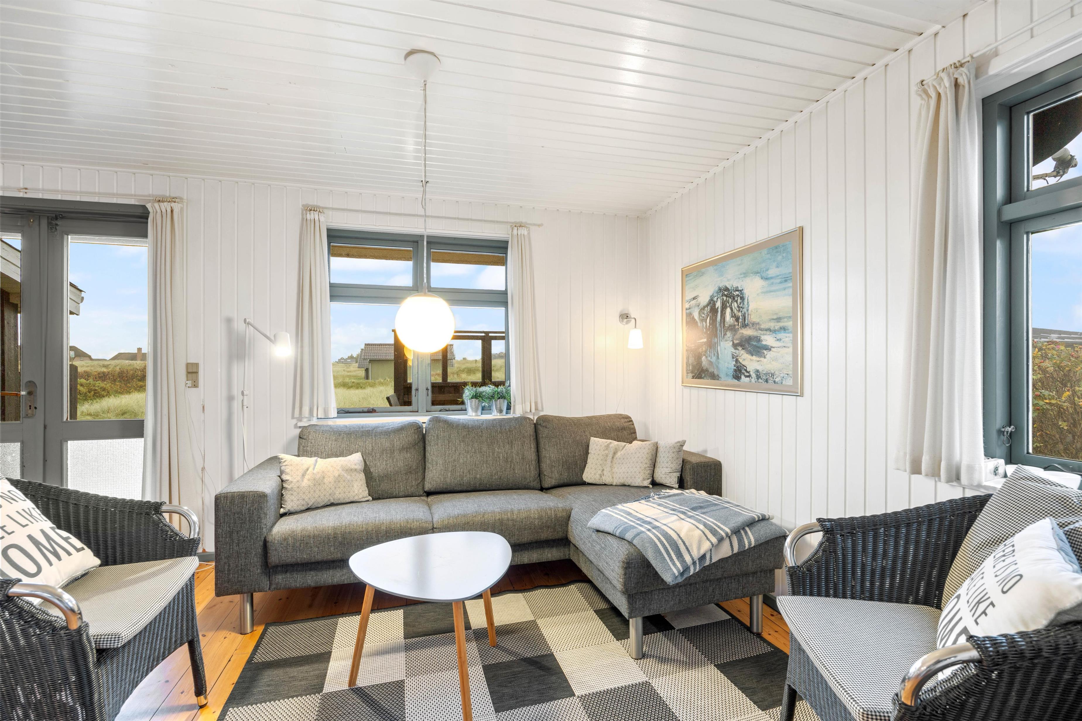 Mod vest er husets udestue placeret og her kan man nyde solnedgangen og det smukke klitlandskab. Huset kan rumme op til fire feriegæster, og der er tre værelser i huset, så man kan nemt fordele sig som lige ønsket. Huset er lyst indrettet og fremstår mere moderne end husets faktiske alder.