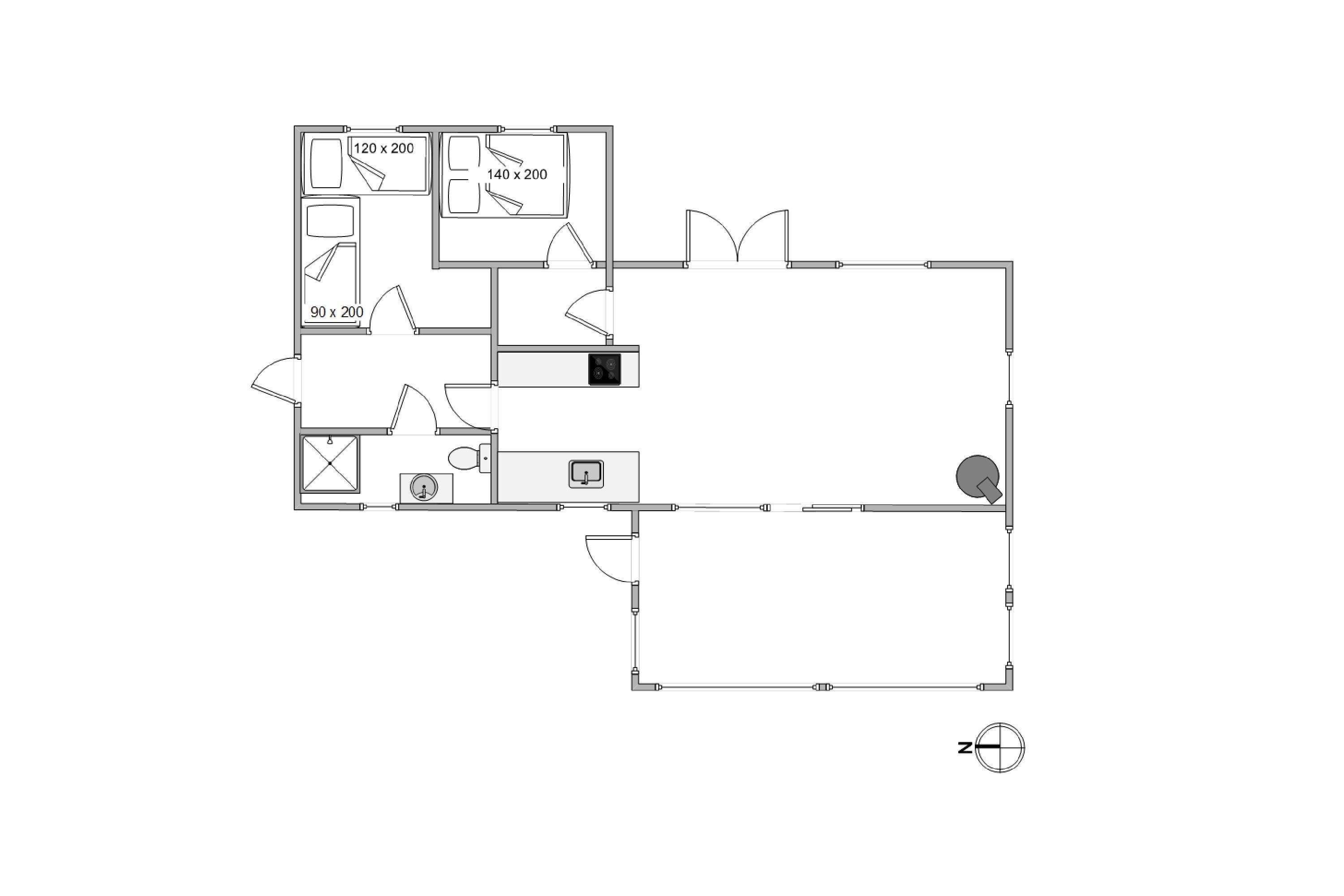 Udendørs råder huset over flere forskellige hyggekroge og terrasser. Den åbne terrasse mod øst, er det perfekte sted at nyde morgenkaffen. Den mere private og afskærmet terrasse mod vest er perfekt til en lækker middag tilberedt på grillen. Fælles for begge terrasser er, at de er af træ, og I vil kunne høre lyden af vesterhavet i baggrunden. Havemøblerne indbyder til afslapning, mens børnene kan lege i sandkassen eller udforske den store naturgrund.