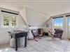 Det fine renoverede køkken og stue er samlet i et stort rum, og derfor fungerer disse som husets hjerte, rummet bliver opvarmet med en energibesparende luft-til-luft varmepumpe. Dette rum samler hele familien til hyggelige stunder omkring brændeovnen - og får man lyst, kan man også udfordre hinanden i en omgang bordfodbold. Ferieboligen kan rumme op til ti personer, hvor fire ud af sommerhuset fem værelser er med dobbeltseng. Det sidste værelse er udstyret med to enkeltsenge