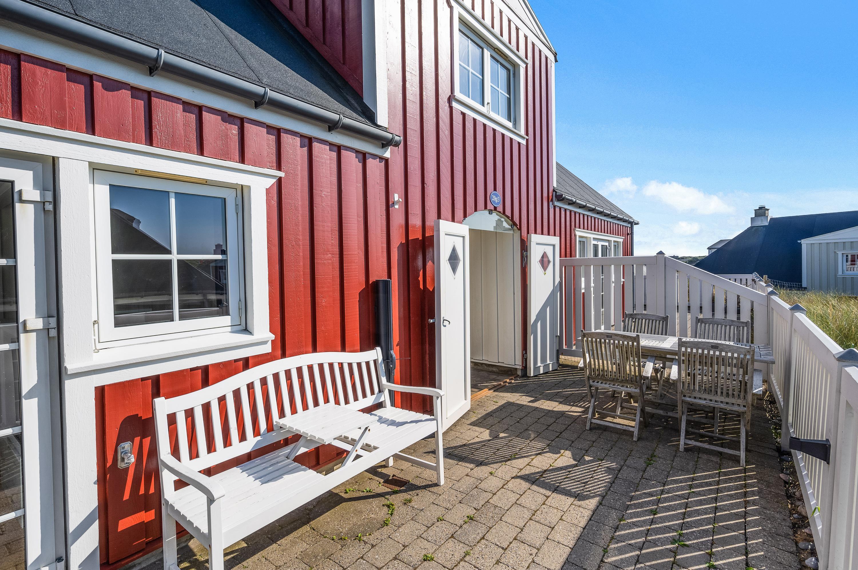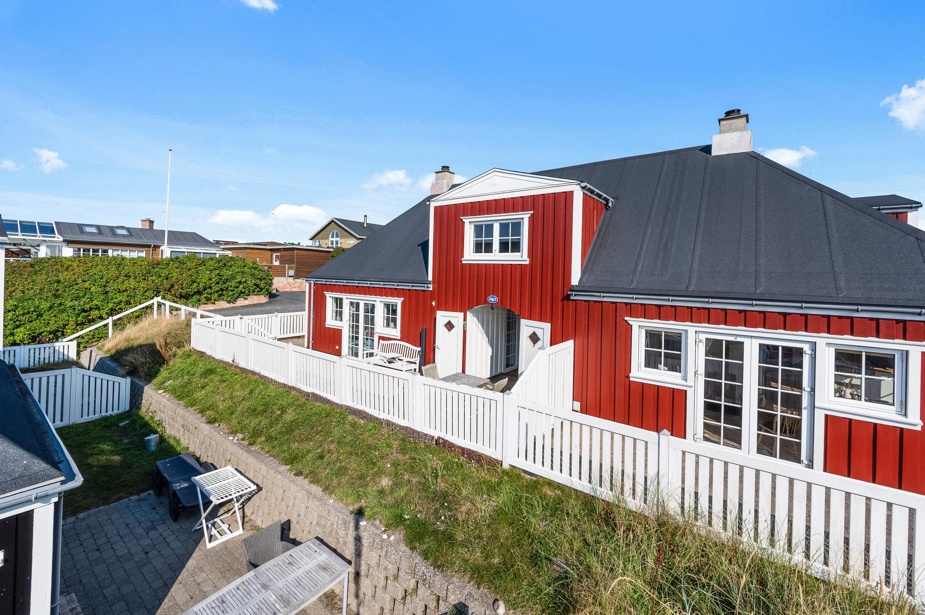 Lukket terrasse med havemøbler og grill – 150 meter til strand og 250 meter til centrum