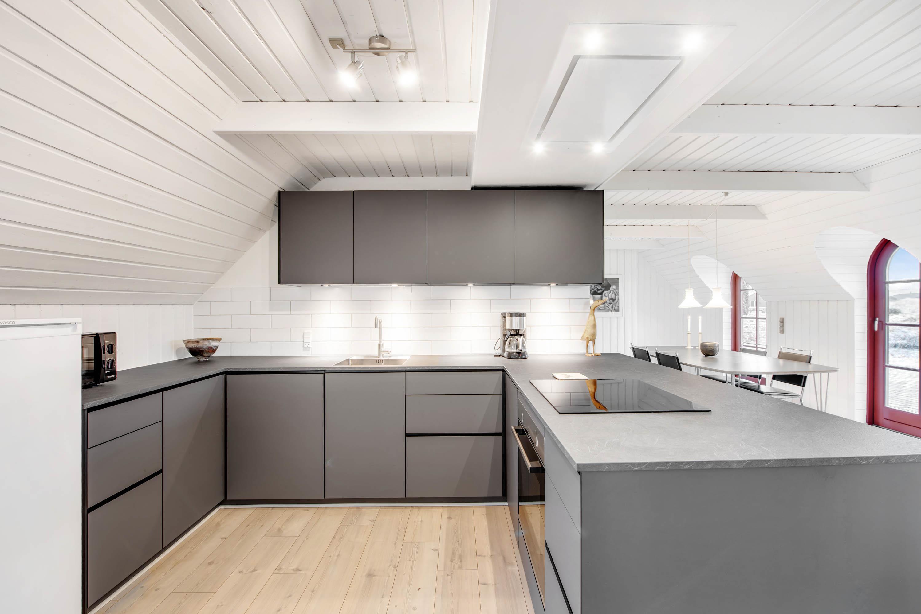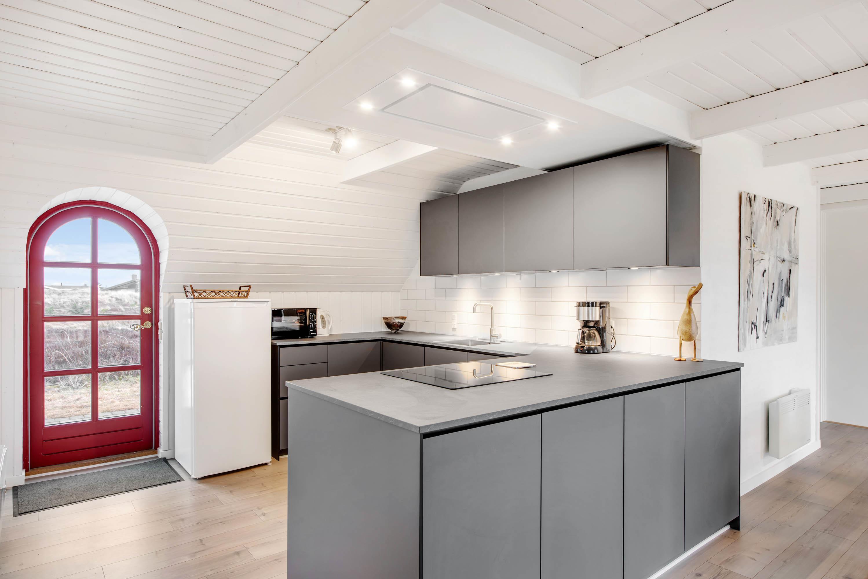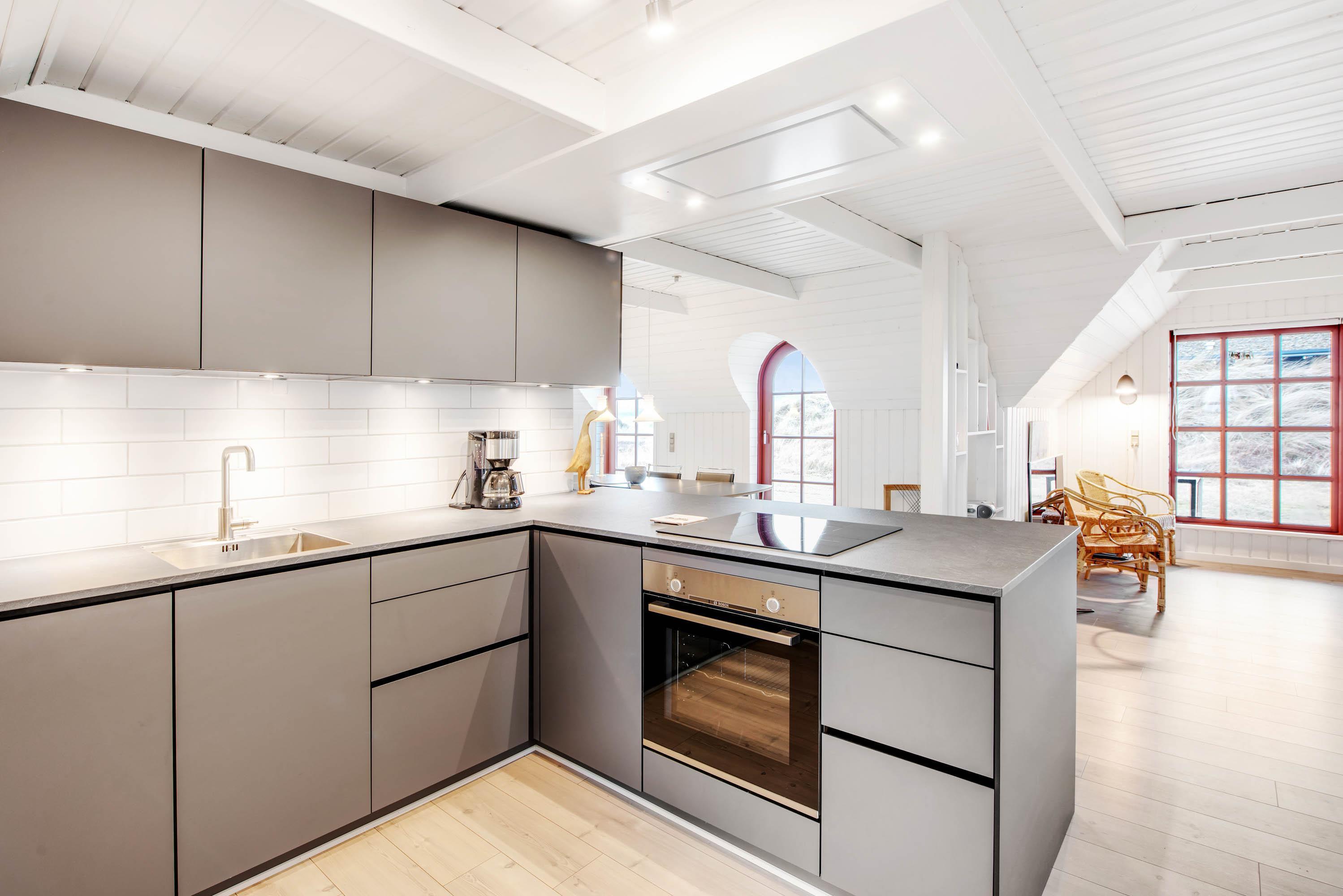 I 2021 har sommerhusets køkken og badeværelset gennemgået en renovering. I det moderne køkken vil enhver feriegæst elske at give sig i kast med madlavningen – og opvasken slipper I for; den klarer opvaskemaskinen selvfølgelig for jer.