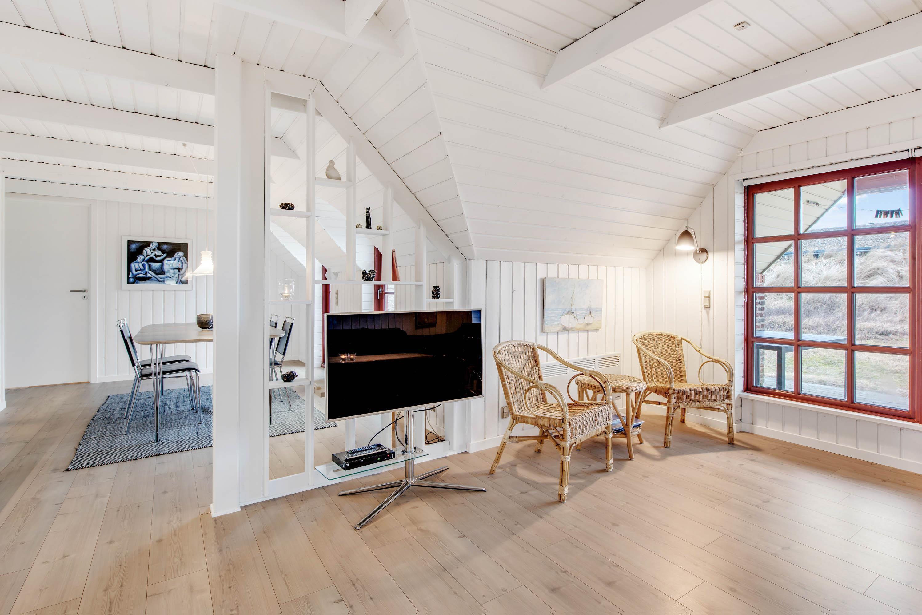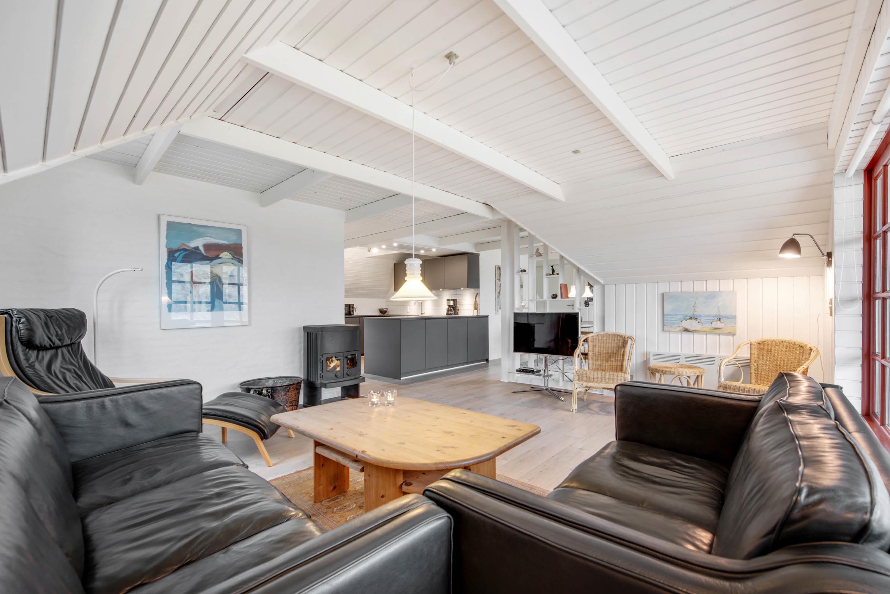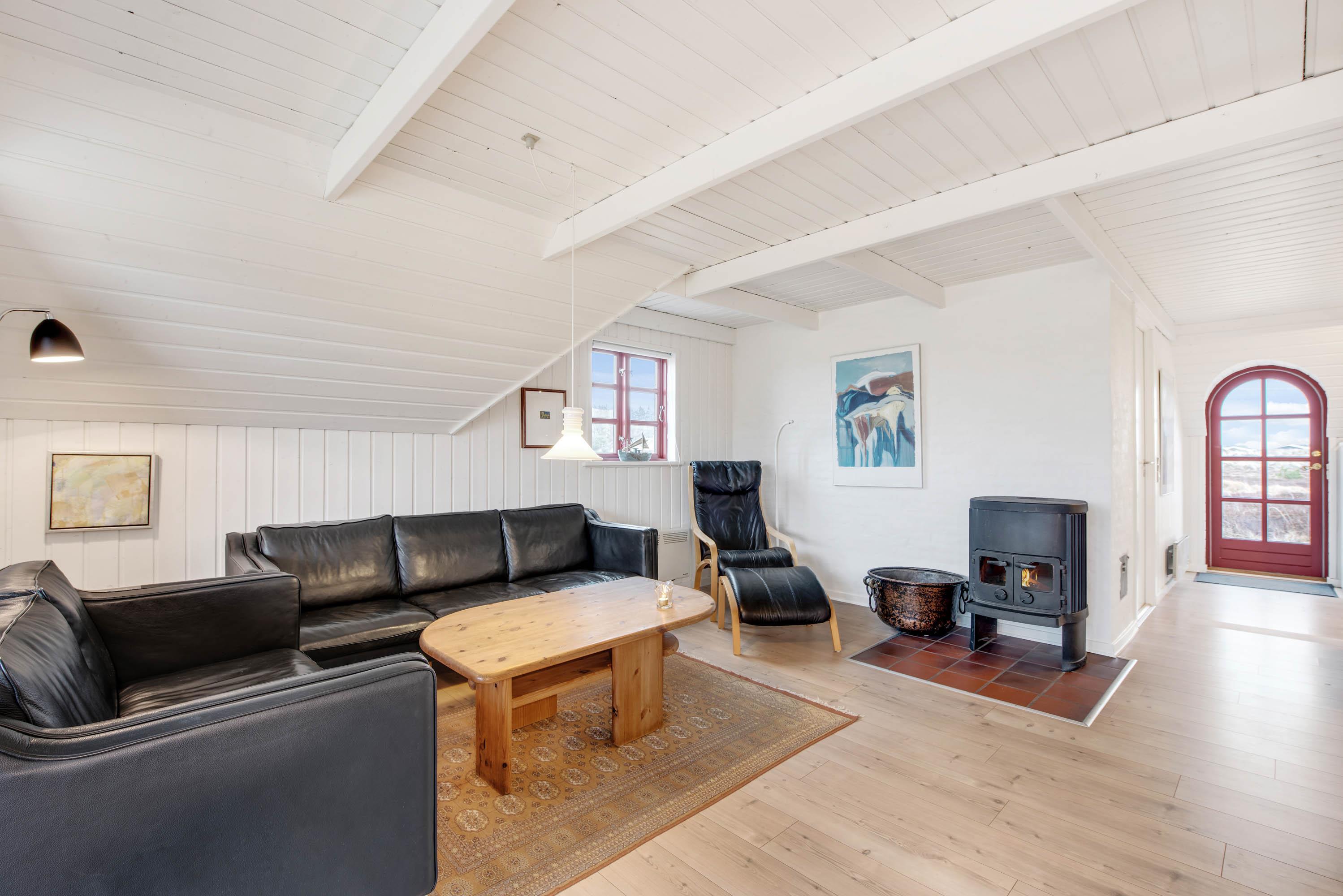 I den store opholdsstue vil I uden tvivl komme til at tilbringe mange gode timer sammen. Det lyse og indbydende rum har en skøn atmosfære, hvor I kan finde jer godt tilpas, mens I laver mad, spiller spil eller ser film. På ægte sommerhusmanér er der selvfølgelig en brændeovn i stuen, der både sørger for god stemning og varme. Huset har også en energibesparende varmepumpe som sørger for et behageligt indeklima.
