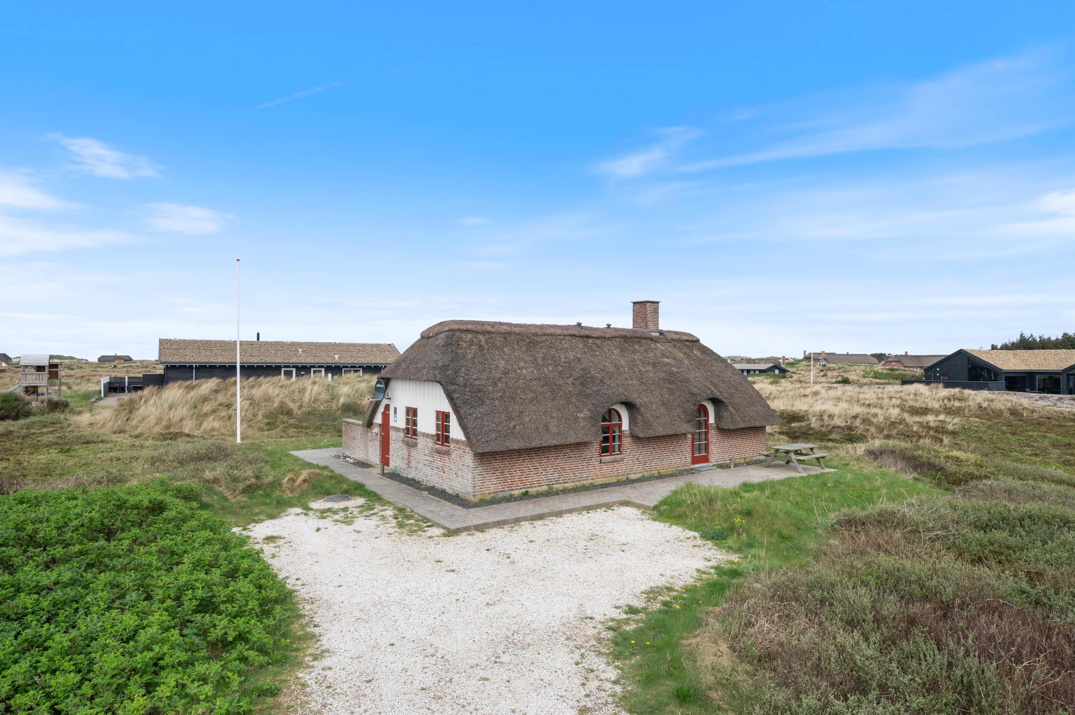 På en skøn naturgrund i Søndervig ligger dette nyrenoverede (2021) stråtækte sommerhus på Frans Julius Vej 39. Med plads til seks personer i feriehuset er det den perfekte feriematrikel for den store familie eller vennegruppen, der vil på ferie tæt på Vesterhavet.