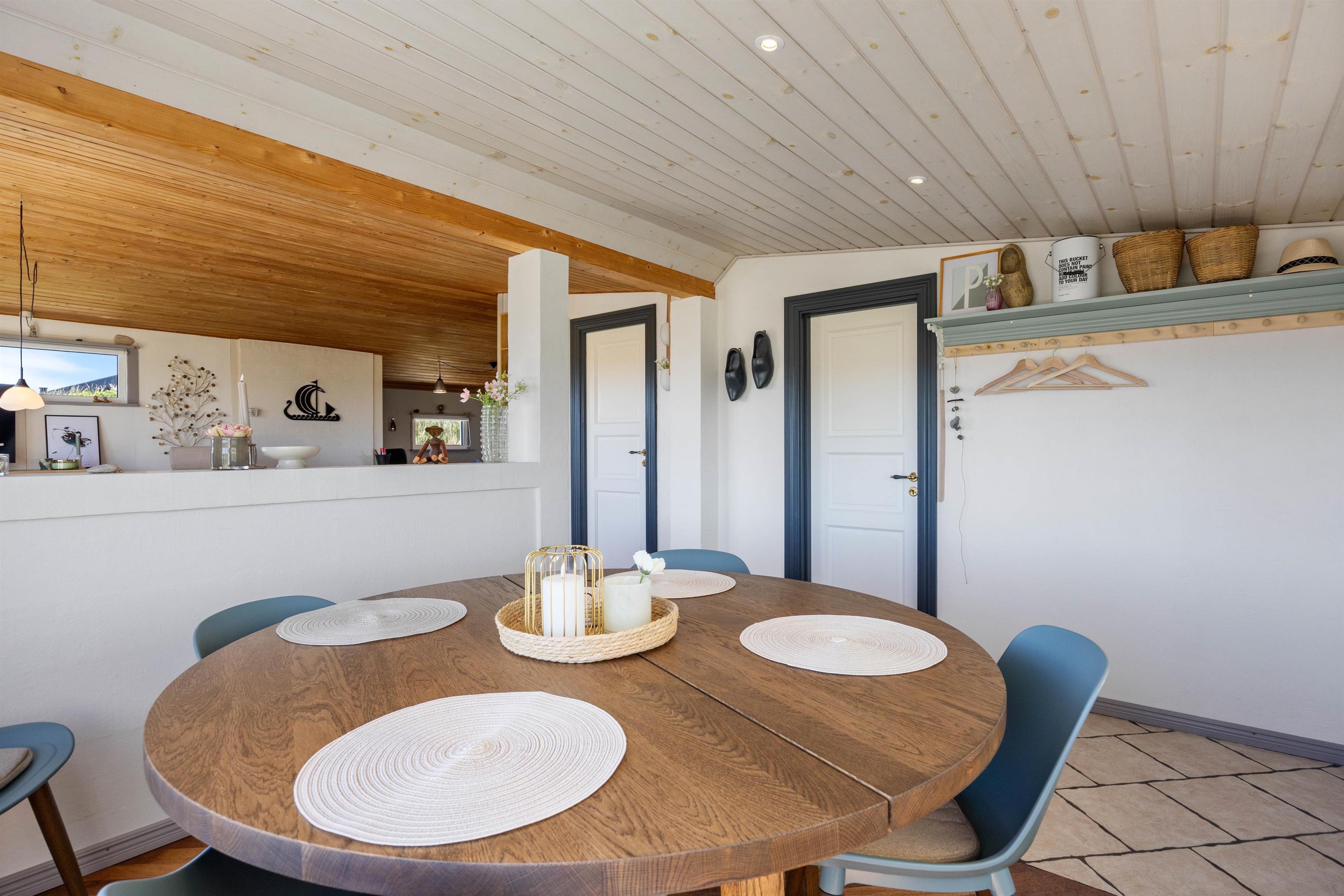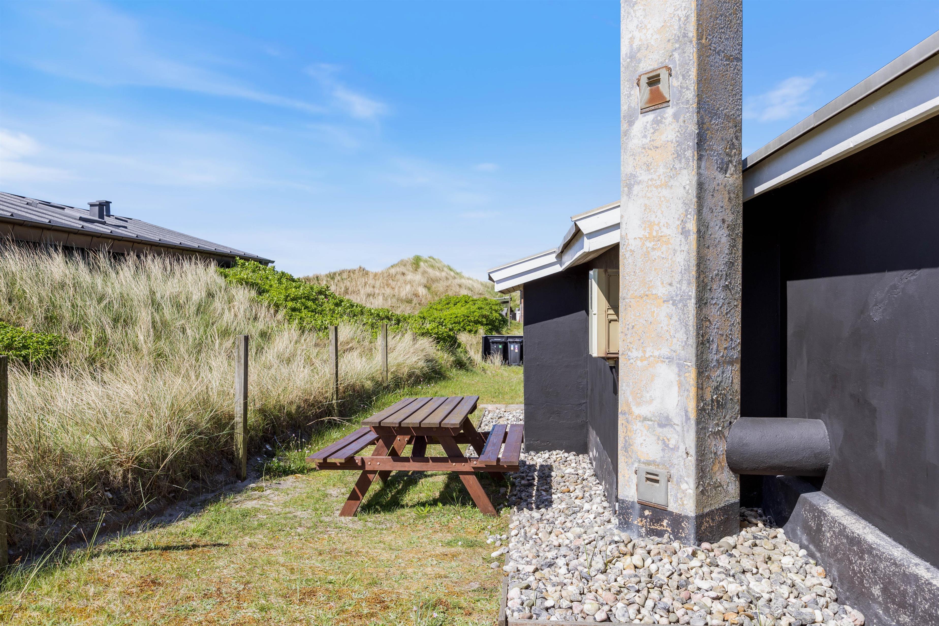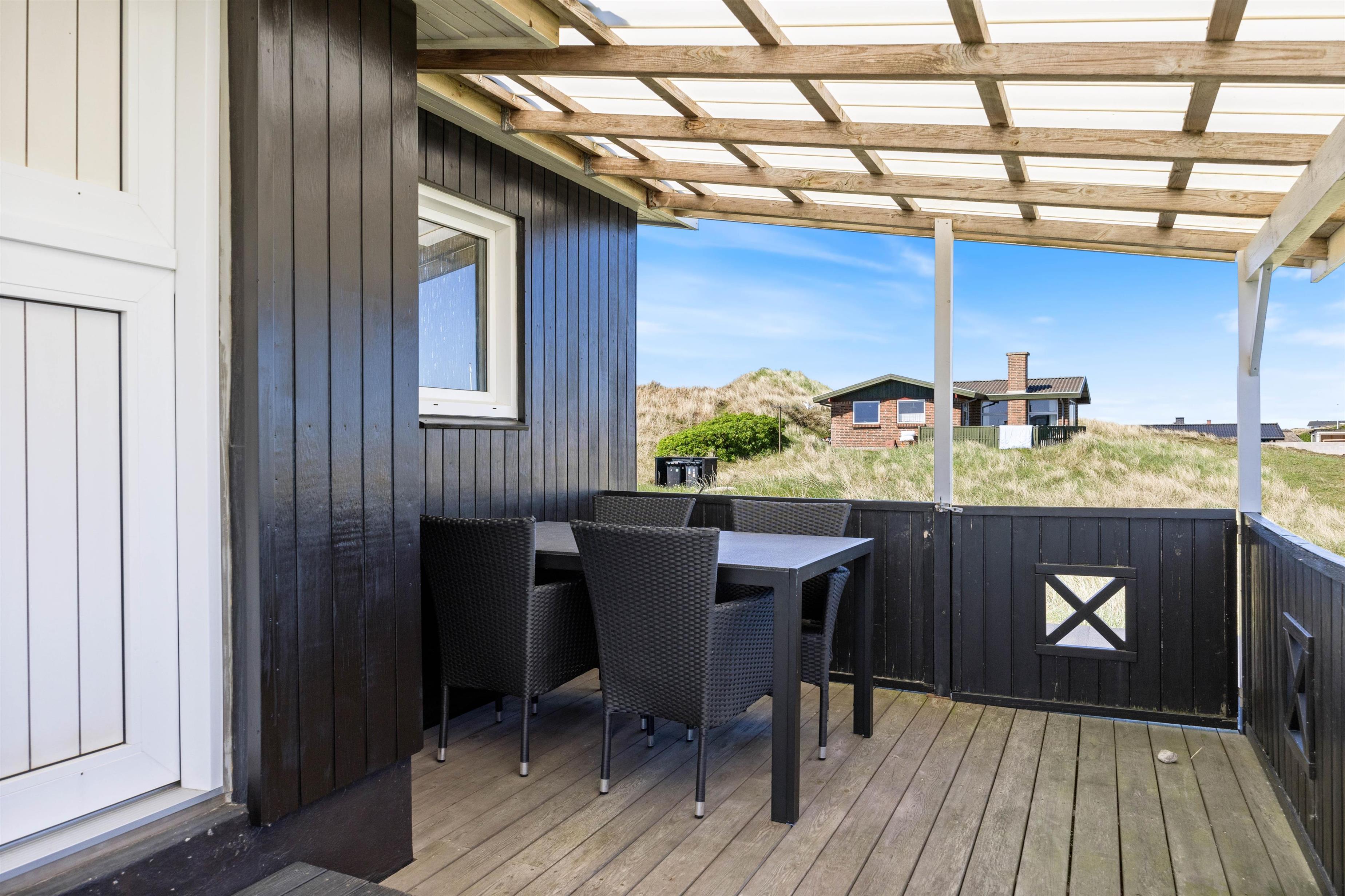 Fra den 423 m2 store klitgrund, har I en fantastisk udsigt ud over det omkringliggende område. Selv hvis vejret ikke spiller med, giver den afskærmet og overdækket terrasse masser af læ, så intet står i vejen for at I kan have en hyggelig grillaften.