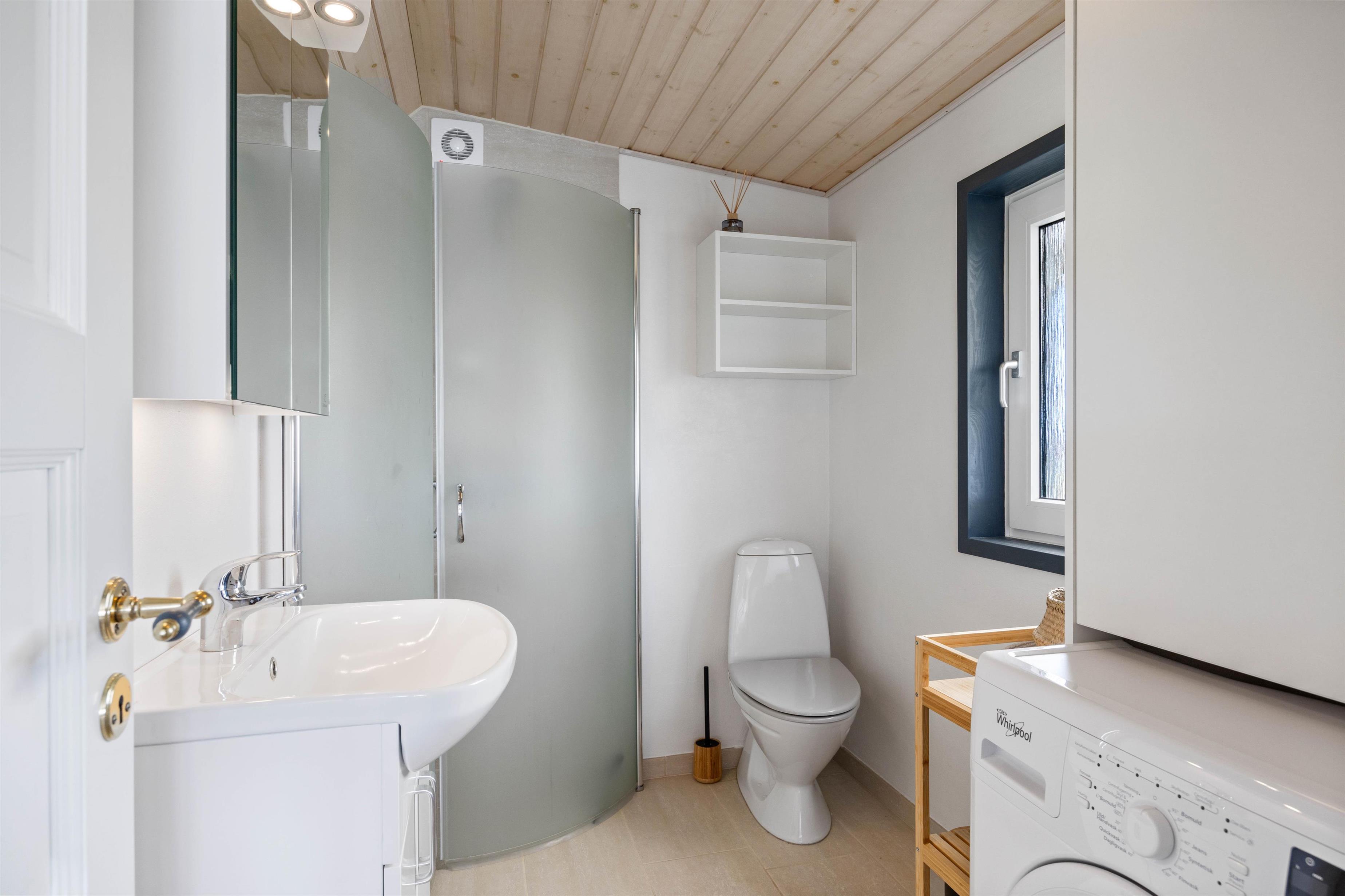 Sommerhusets energibesparende varmepumpe sørger for en behagelig opvarmning, i hele det hyggelige sommerhus. I feriehusets badeværelse er der gulvvarme, som sikrer at I ikke får kolde fødder om morgenen. Hvis I holder af ægte dansk sommerhushygge, så er brændeovnen også helt perfekt for jer. Tænd op I den, og læn jer tilbage mens I nyder flammernes knitren og mærker varmen sprede sig.