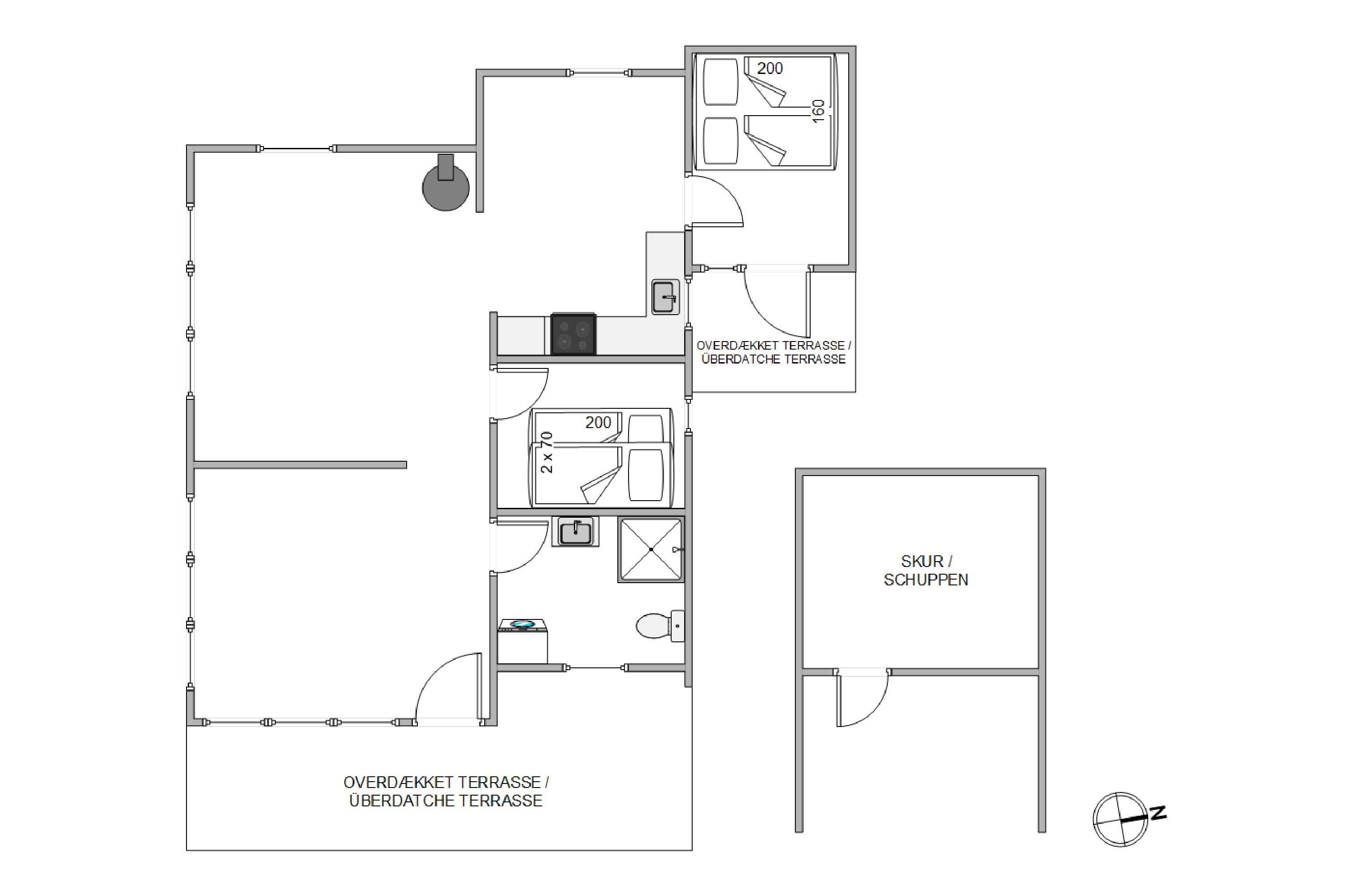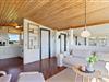 De 54 m2 i dette hyggelige sommerhus er fordelt på den åbne opholds- og spiseafdeling, et åbent køkken, et badeværelse og to hyggelige soveværelser. Det ene af soveværelserne er indrettet med en dobbeltseng og det andet med en køjeseng, som helt sikkert vil glæde jeres børn.